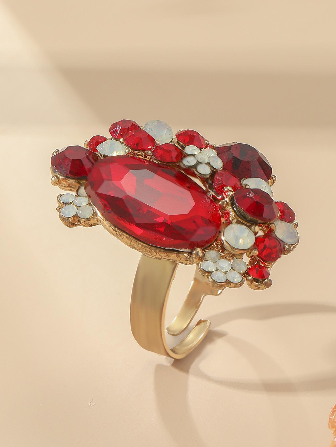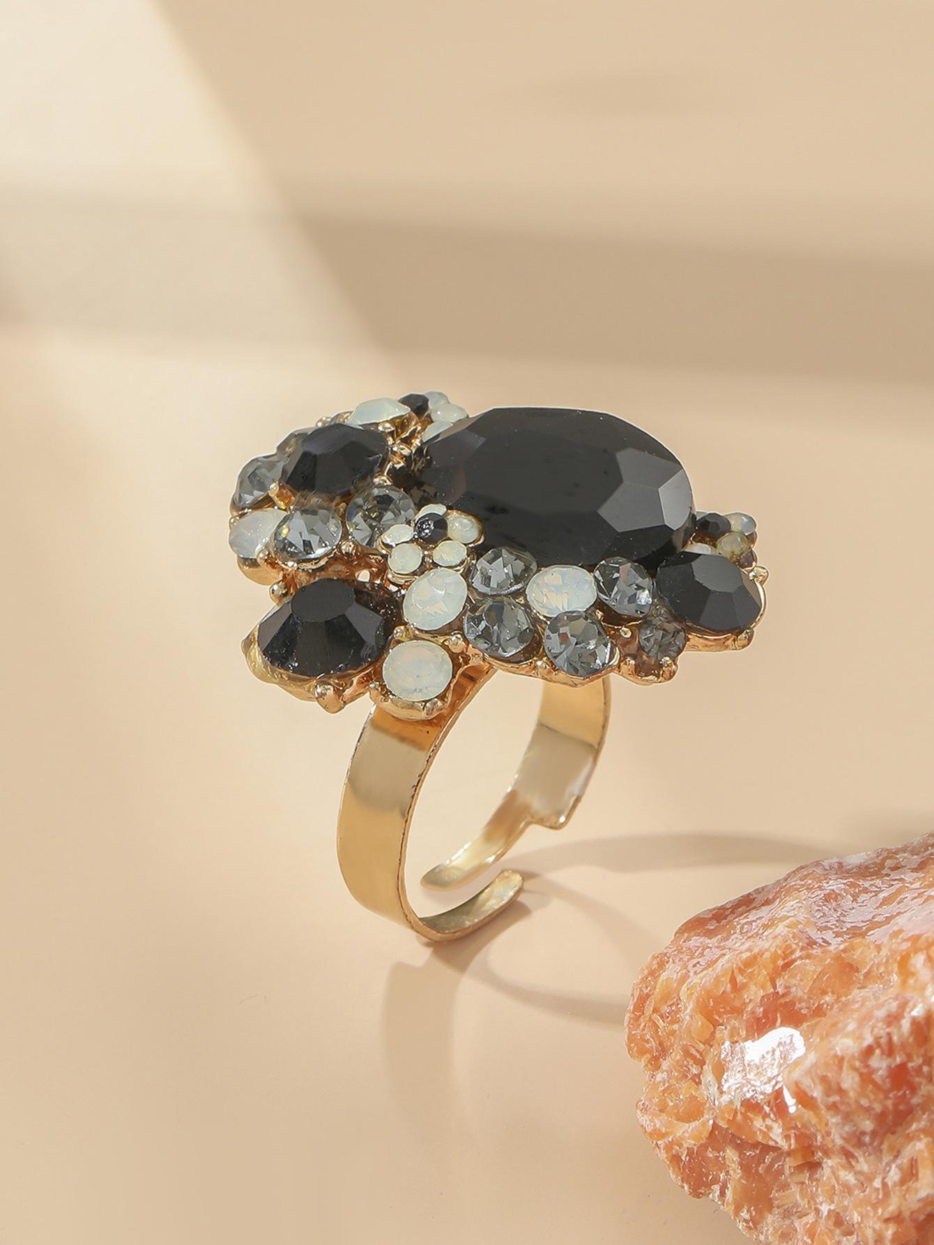 Anillo Abierto de Moda Simple Elegante con Diamante de Cristal y Flor