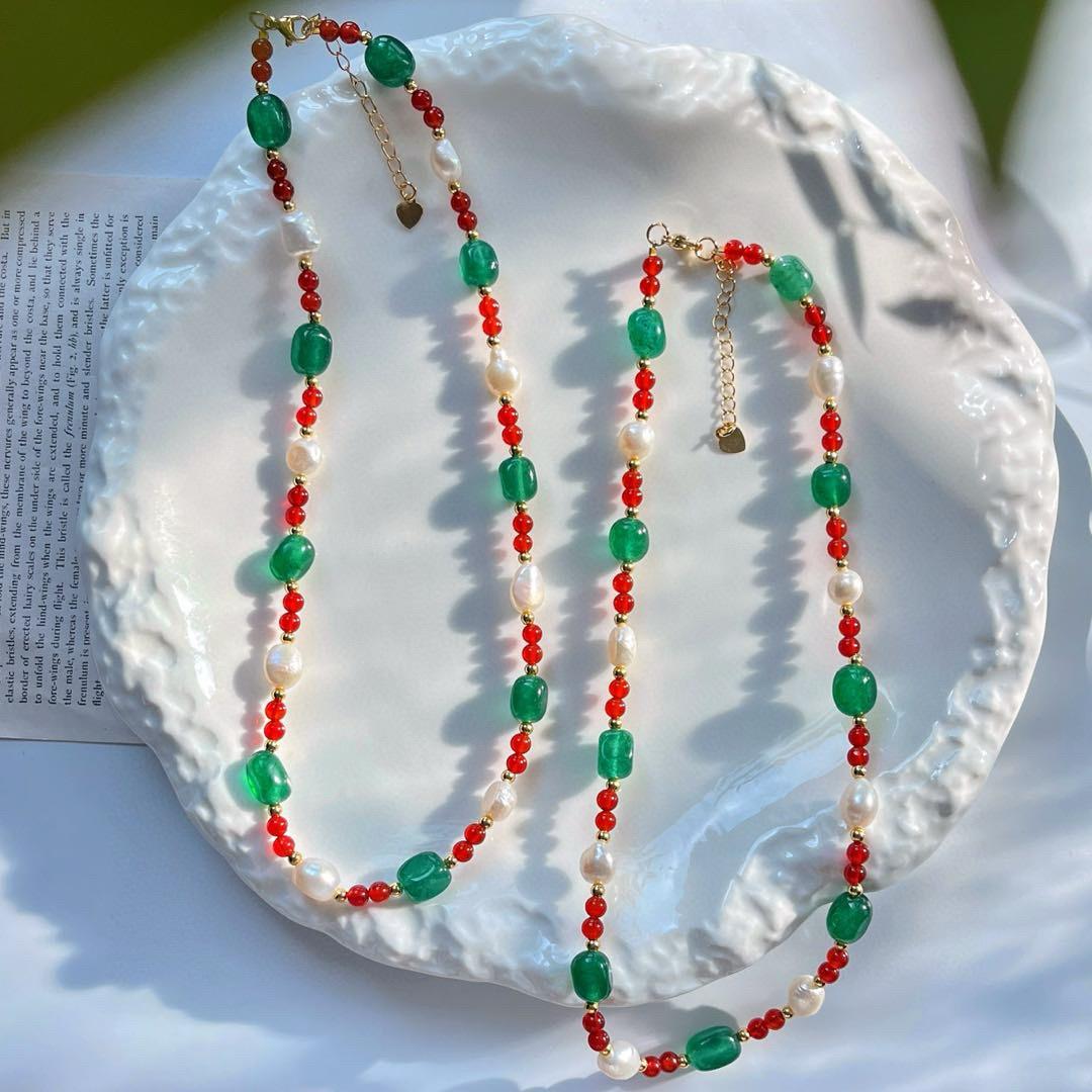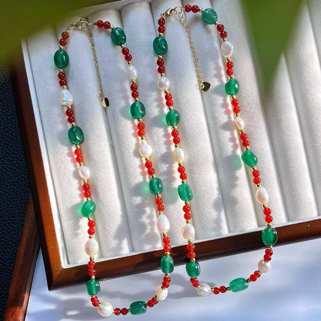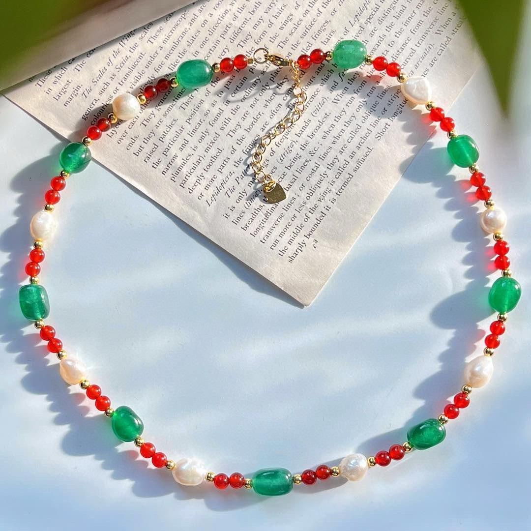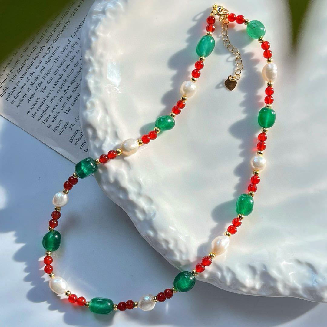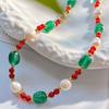 Collar de Cadena Clavicular de Calcedonia Roja Sangre de Paloma de Alta Calidad Retro Estilo Chino con Perla Barroca de Agua Dulce