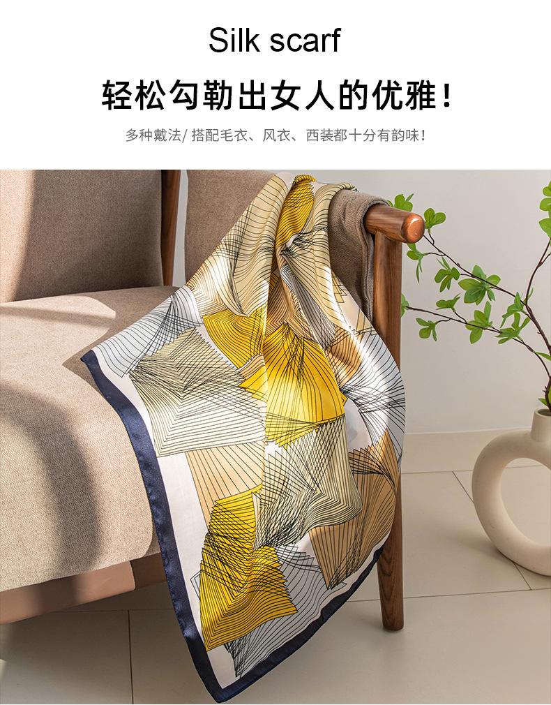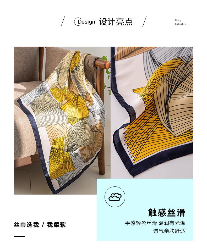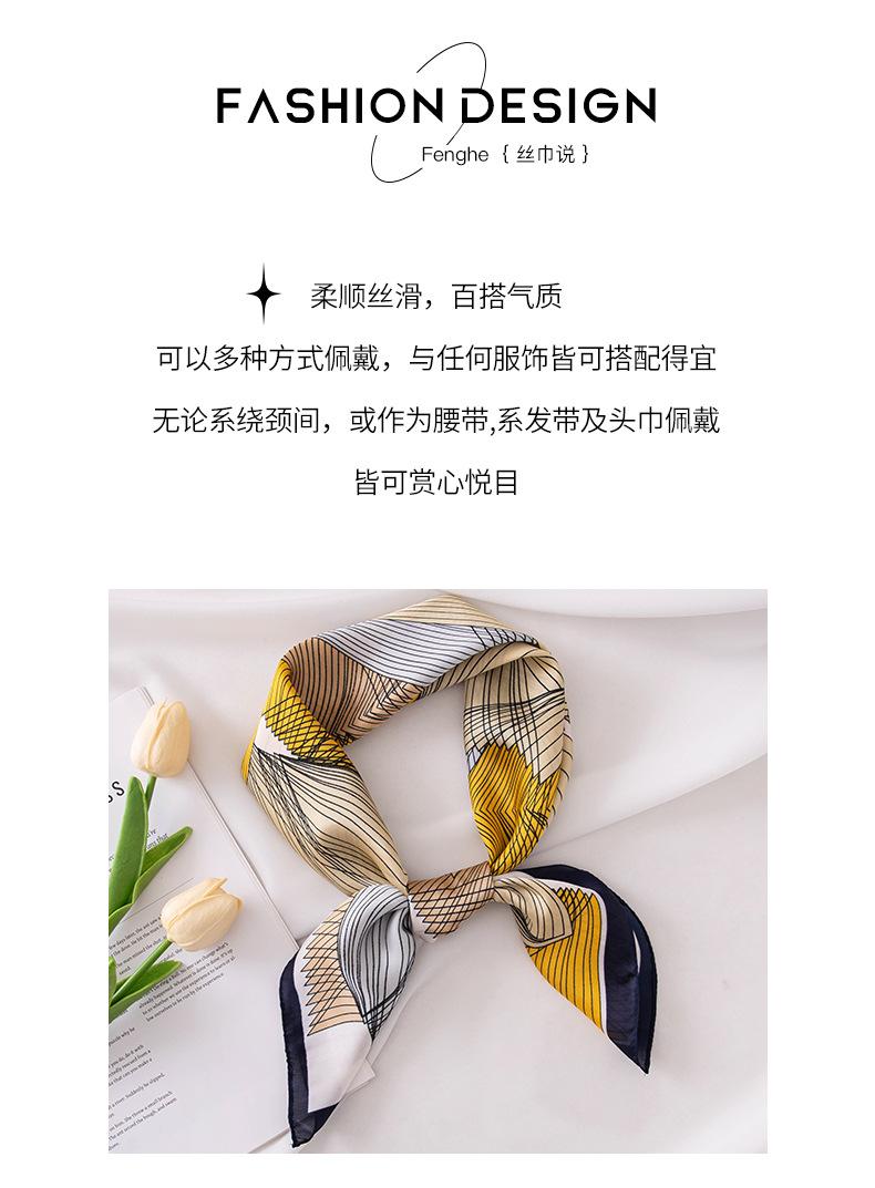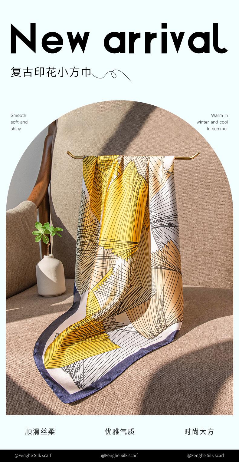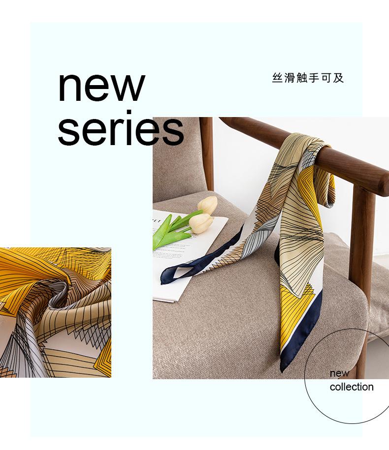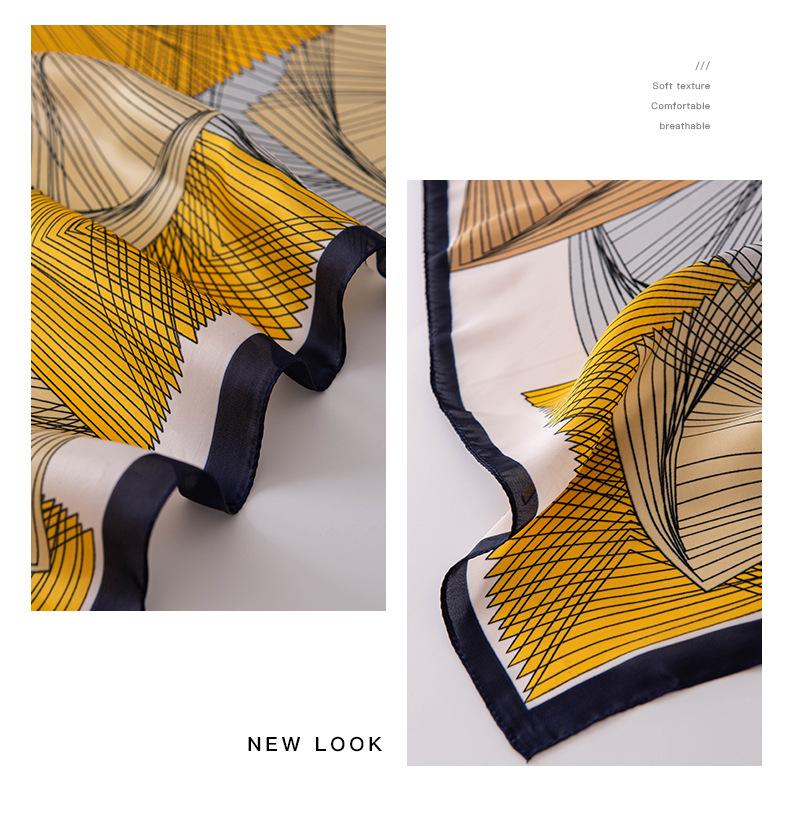 Bufanda de seda con temperamento para mujer, pequeña bufanda cuadrada de 70 x 70 cm, bufanda geométrica sencilla de Europa y América, bufanda Joker para atar el cabello, venta al por mayor
