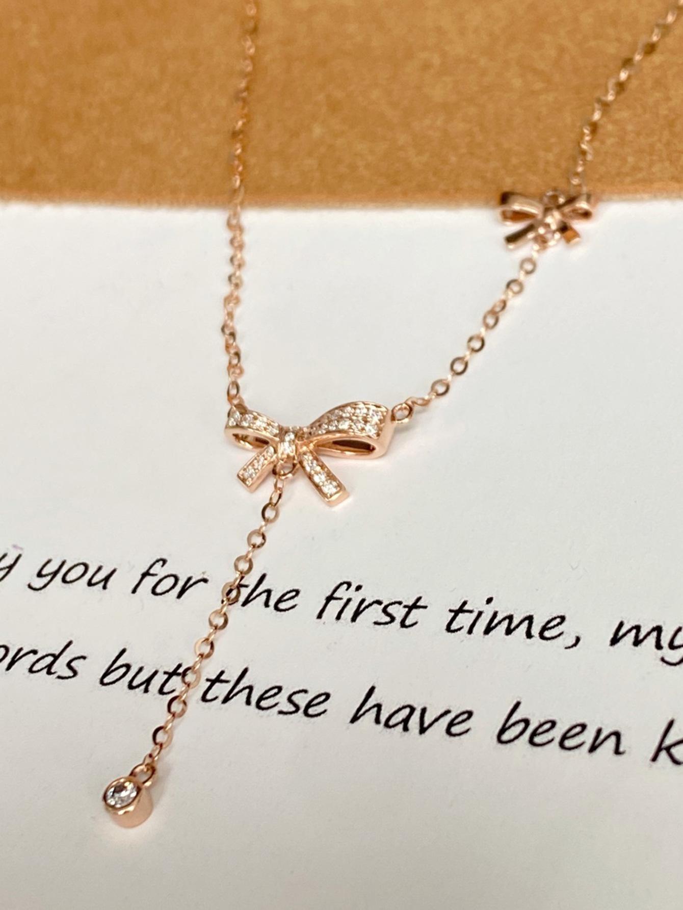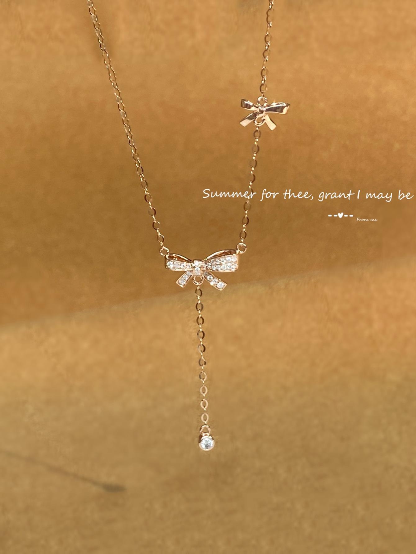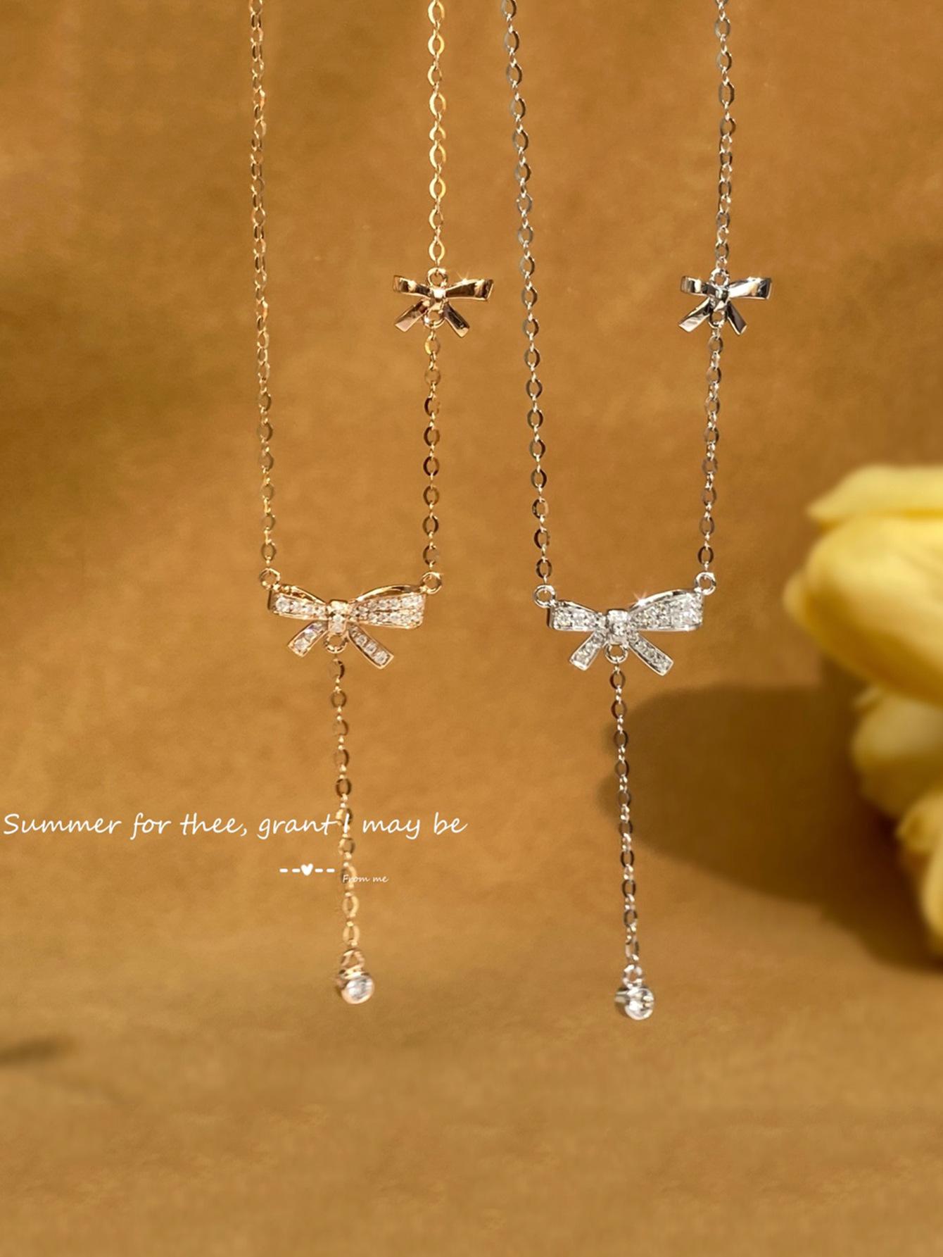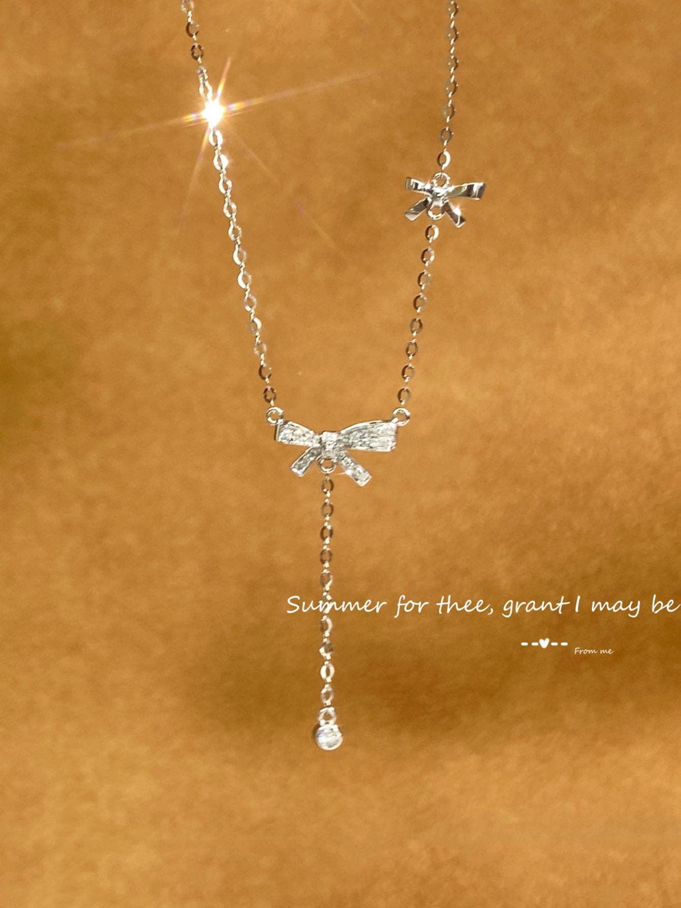Collar con colgante de lazo de plata de ley S925 de alce rojo para mujer, ligero, de lujo, combinable, francés, antiguo, moderno y sencillo.