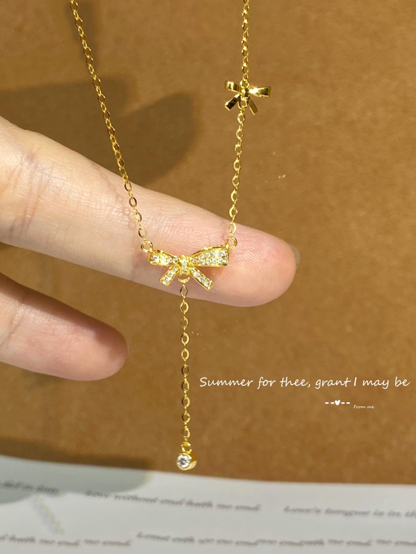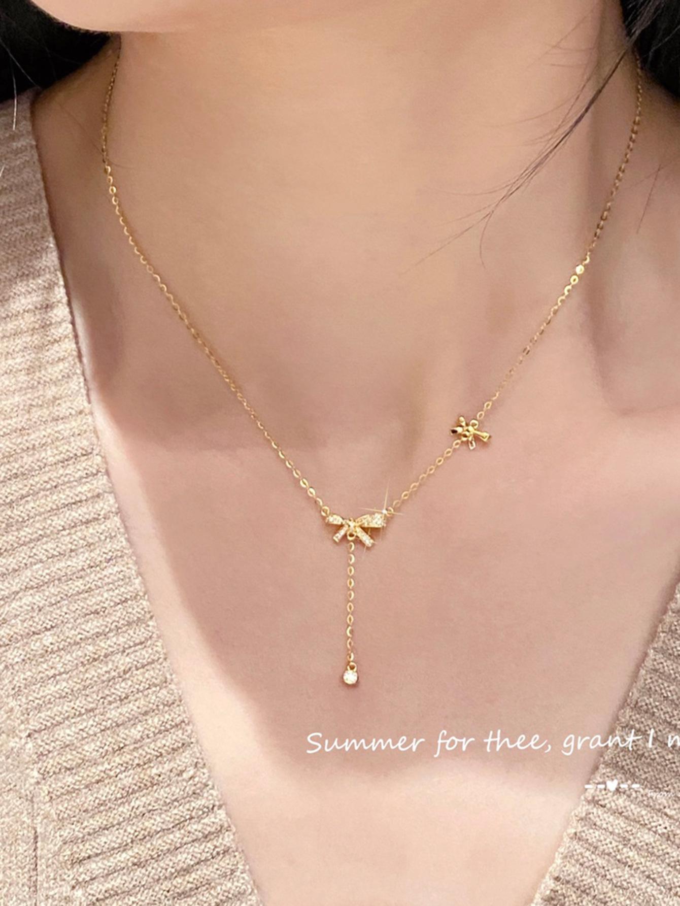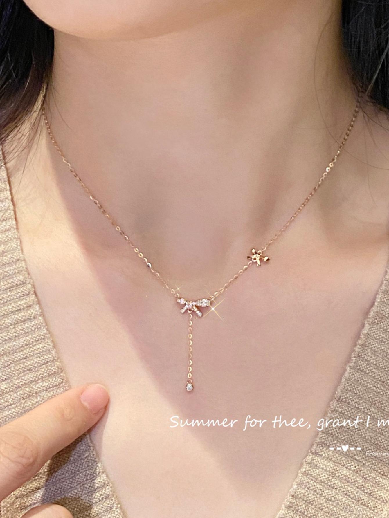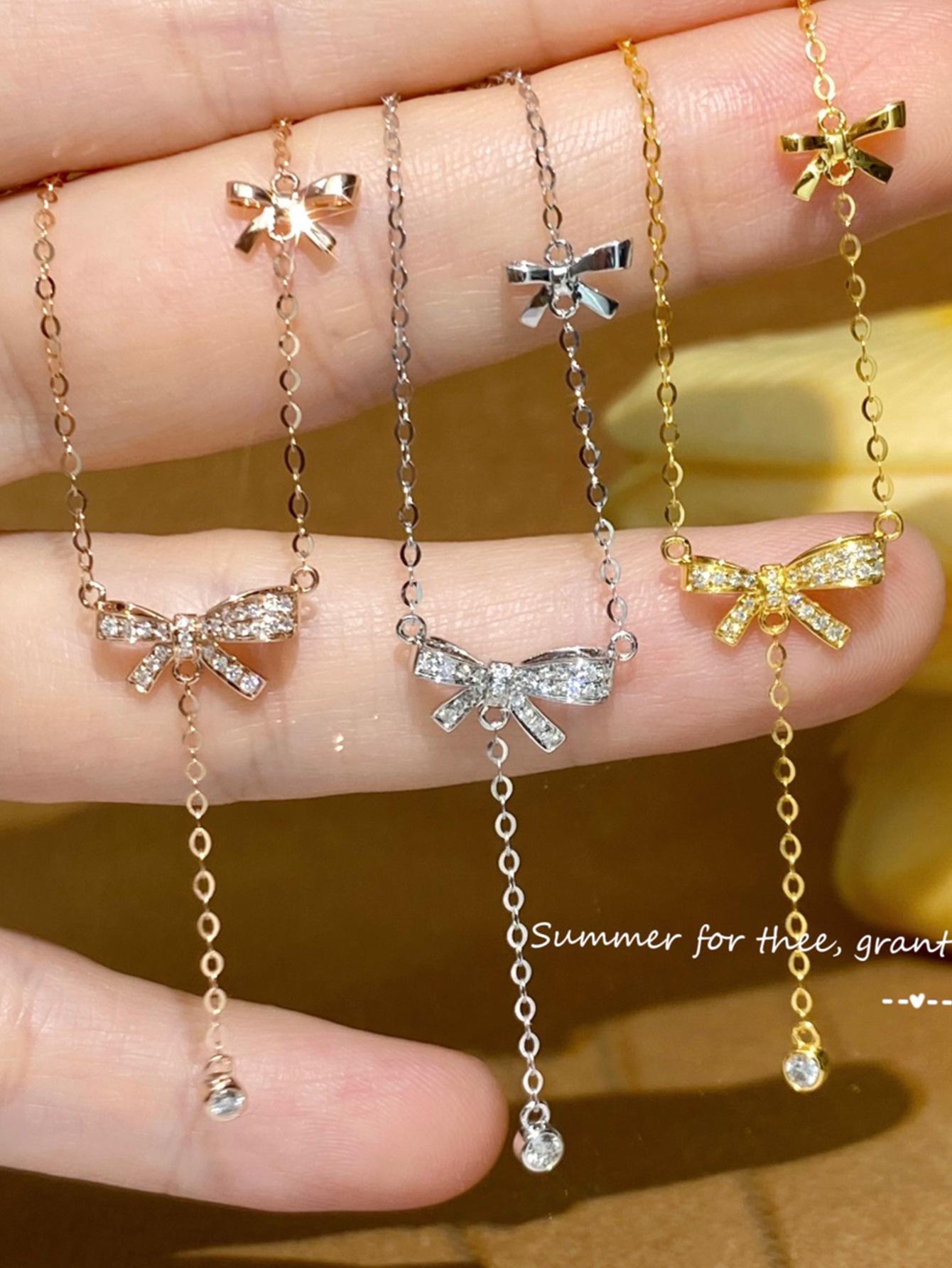 Collar con colgante de lazo de plata de ley S925 de alce rojo para mujer, ligero, de lujo, combinable, francés, antiguo, moderno y sencillo.