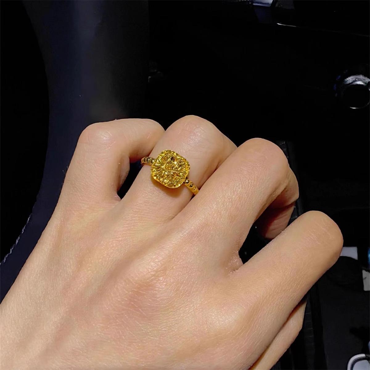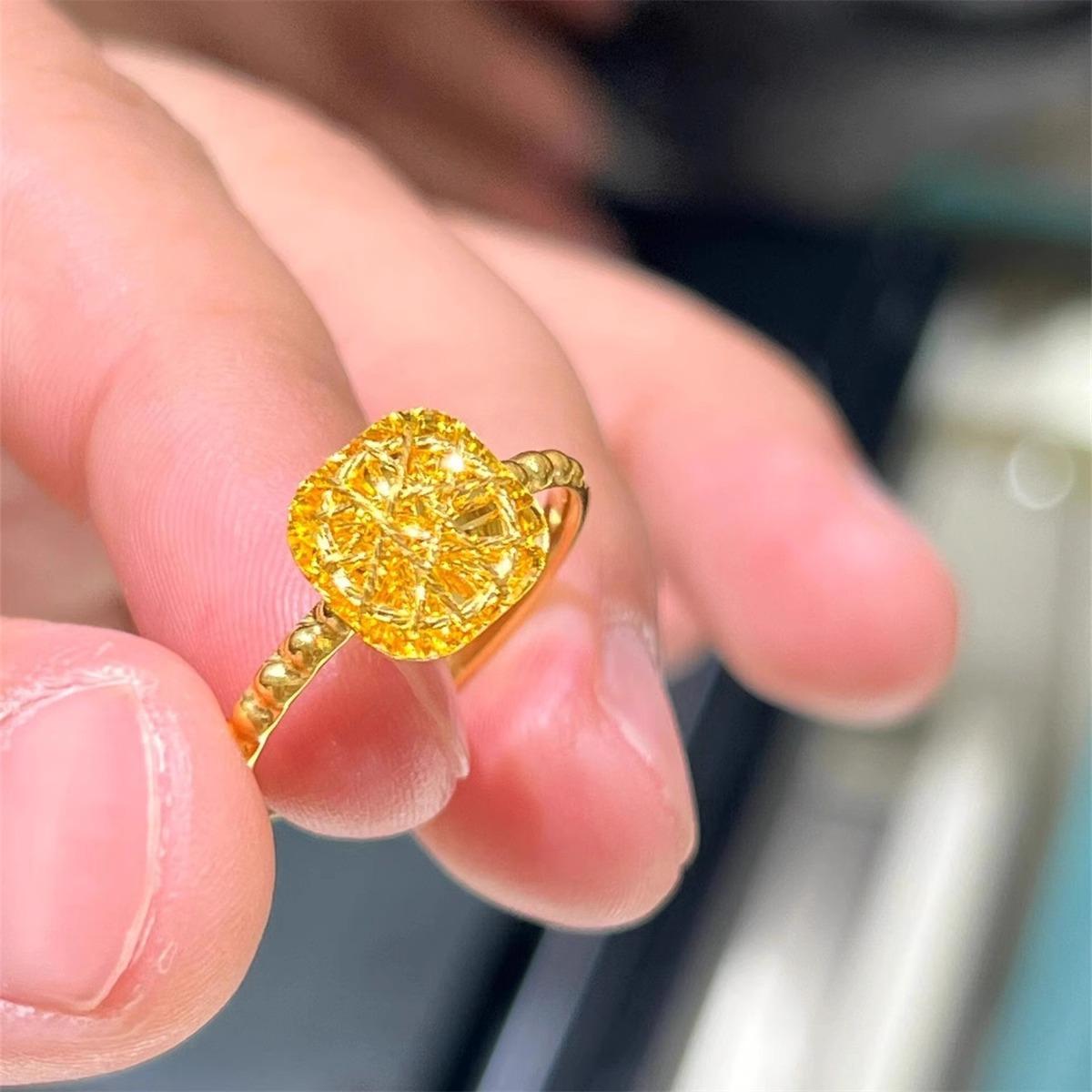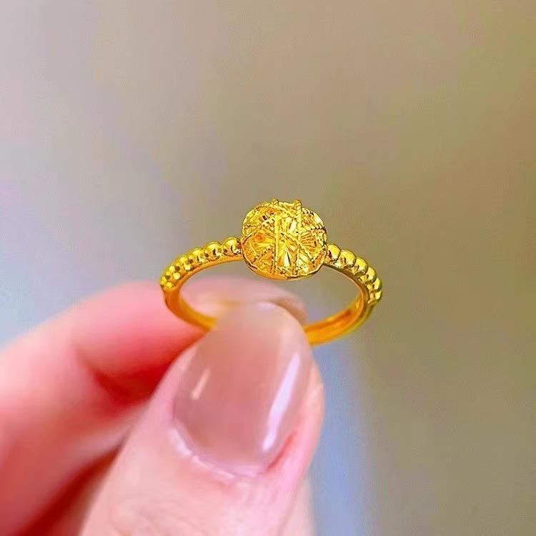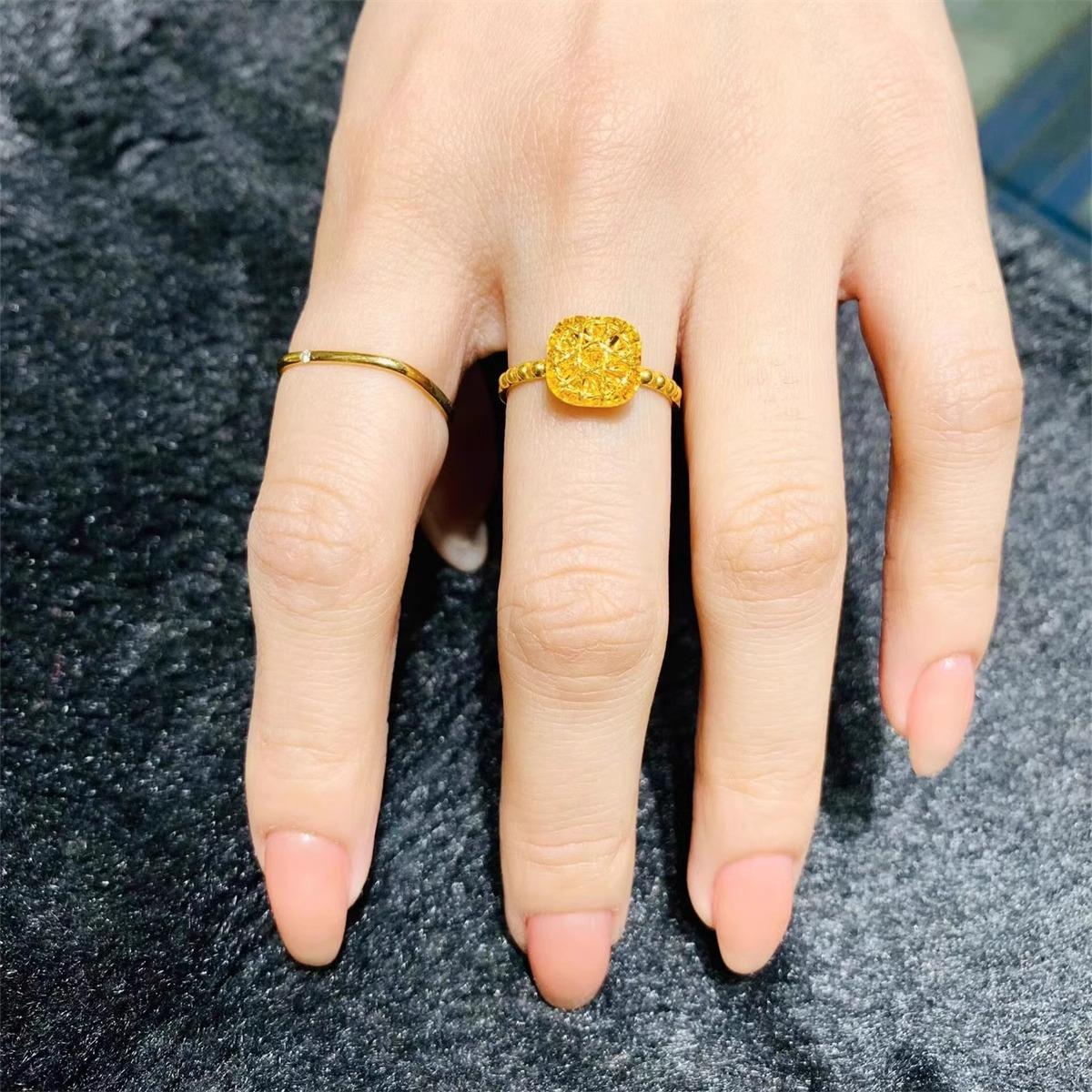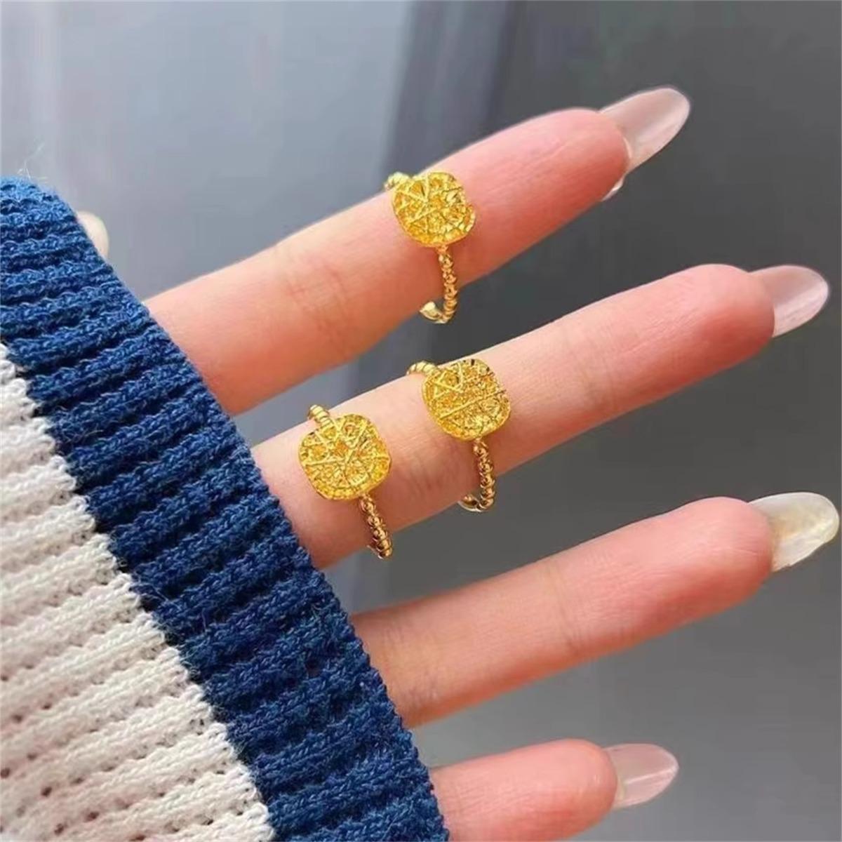 Nuevo anillo cuadrado pequeño de azúcar en oro arena para mujer, anillo con apertura de cobre chapado en oro cepillado, joyería de mano de alta calidad para novia