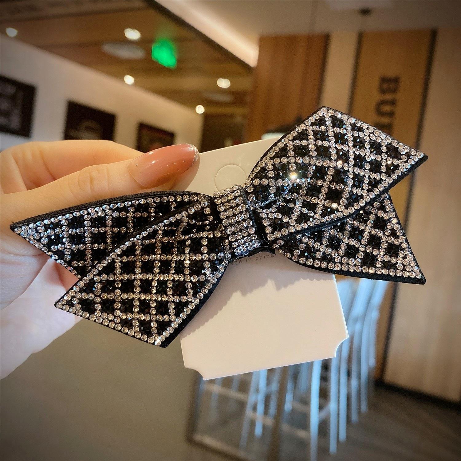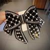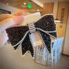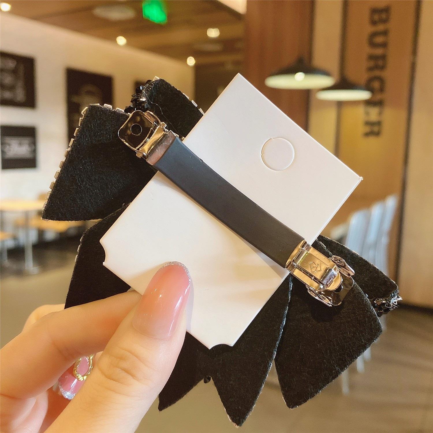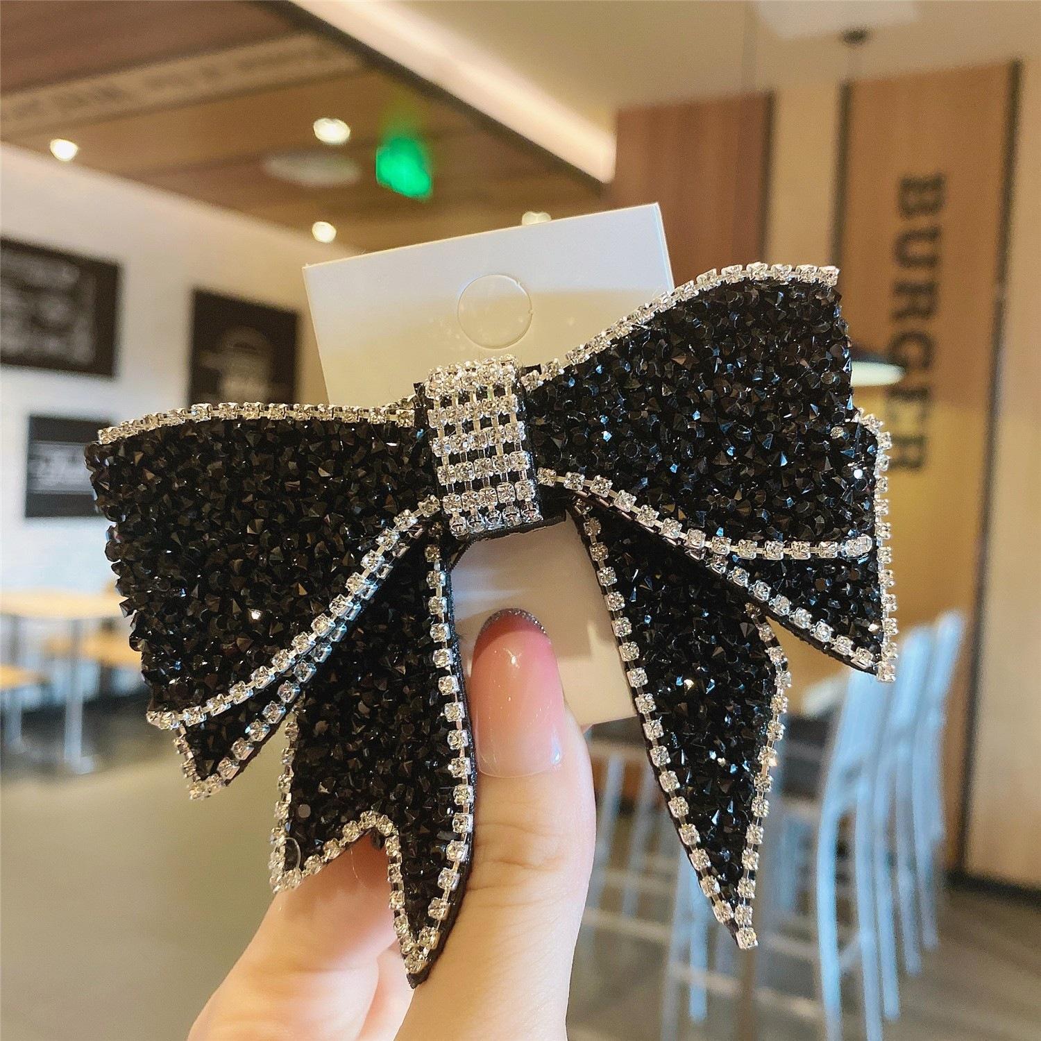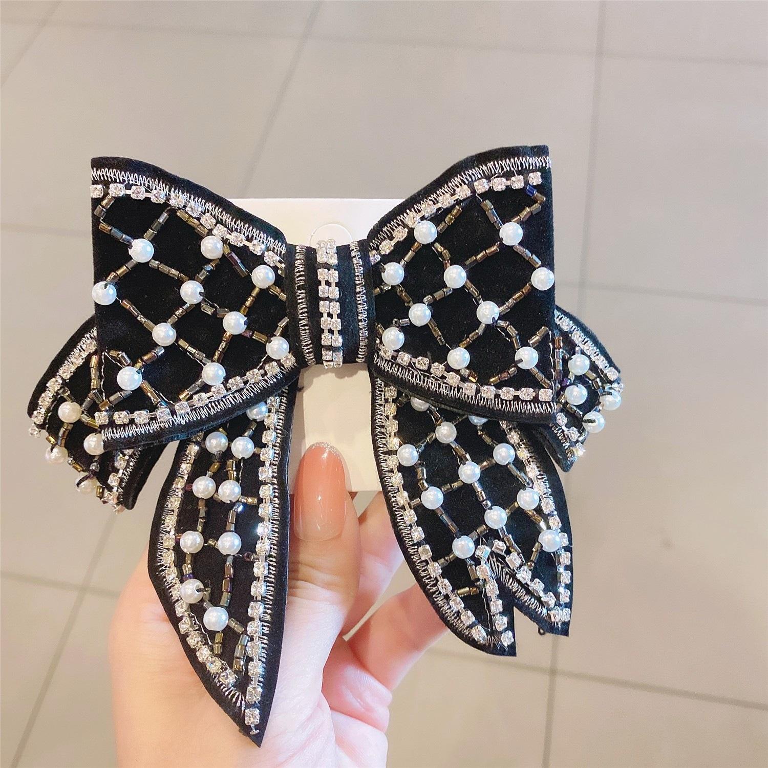 Lazo estilo coreano con accesorios de cabeza de diamante, accesorios para el cabello con perlas, clip lateral, horquilla con cuentas negra hecha a mano, lazo con clip superior