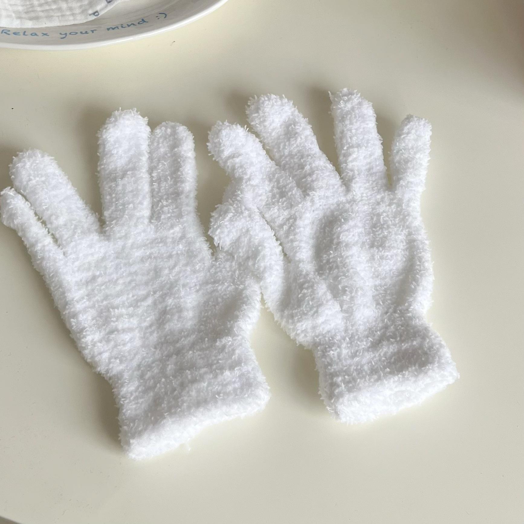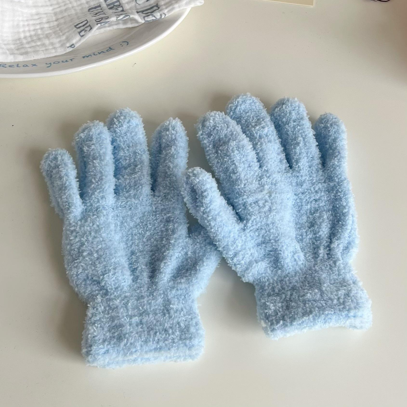 Guantes sencillos de forro polar coral color caramelo para adulto, guantes de cinco dedos de color sólido en stock, venta al por mayor, estilo invierno que combina con todo