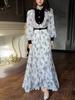Vestido con estampado de moda retro y costura en la cintura, primavera 2025, comercio exterior transfronterizo de Amazon, Europa y América