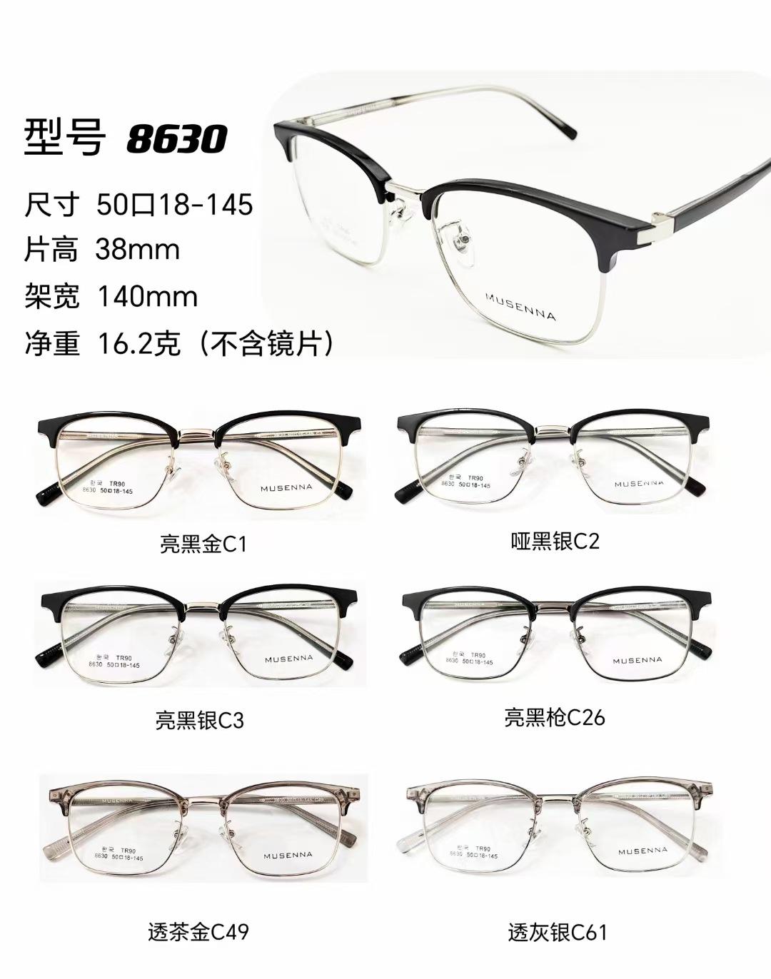 Bright black gold c1, Matt black silver c2, Bright black silver c3, Bright black gun c26, Transparent tea gold...