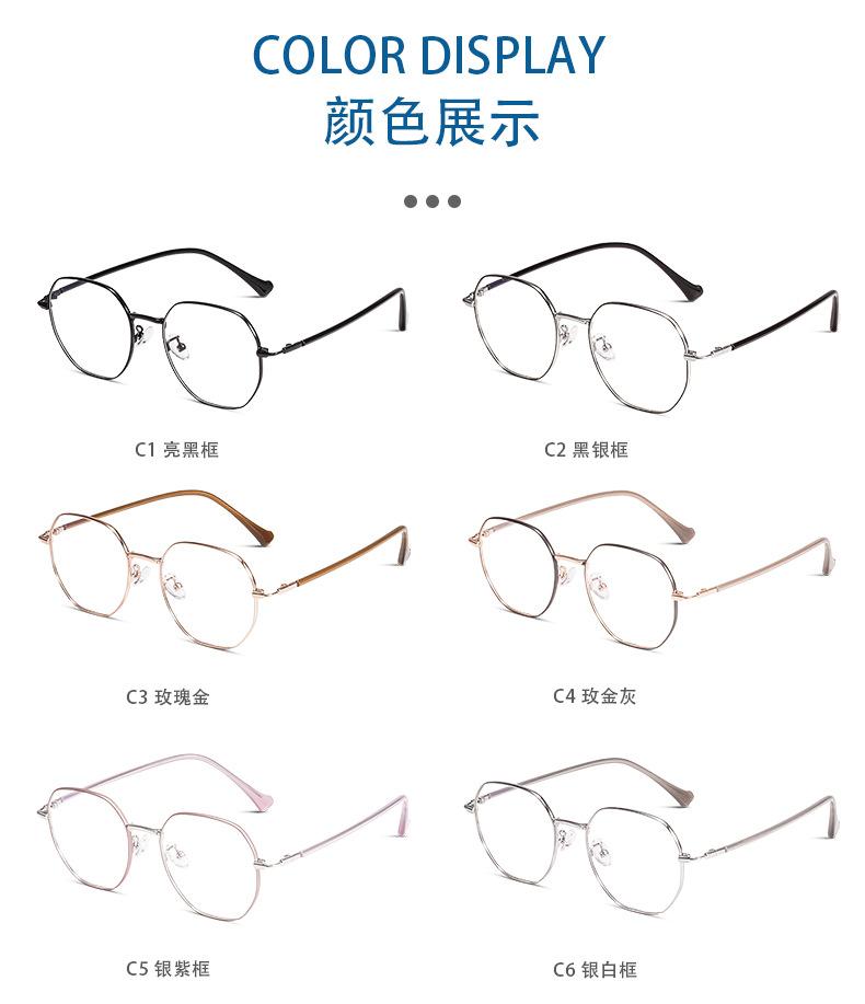 C1 bright black frame, C2 black silver frame, C3 rose gold, C4 rose gold gray, C5 silver purple frame, C6 silver white frame
