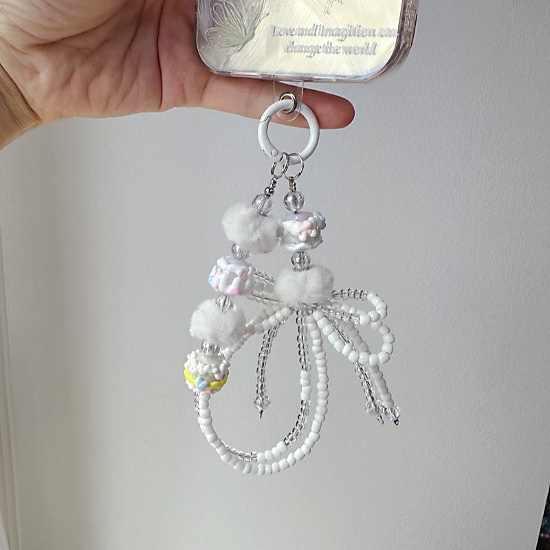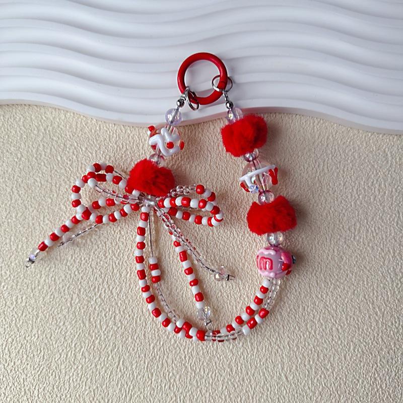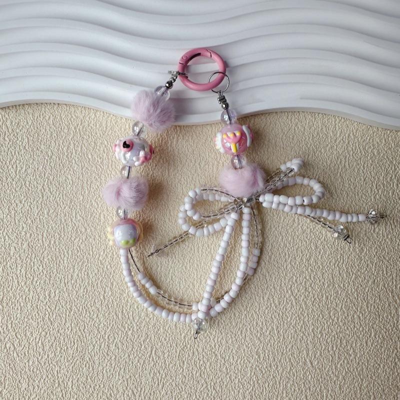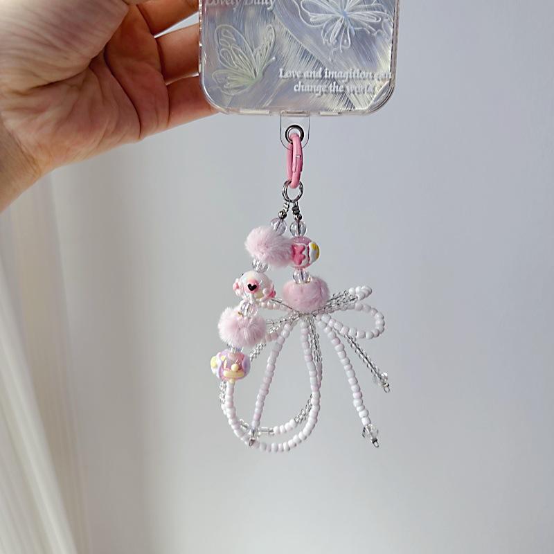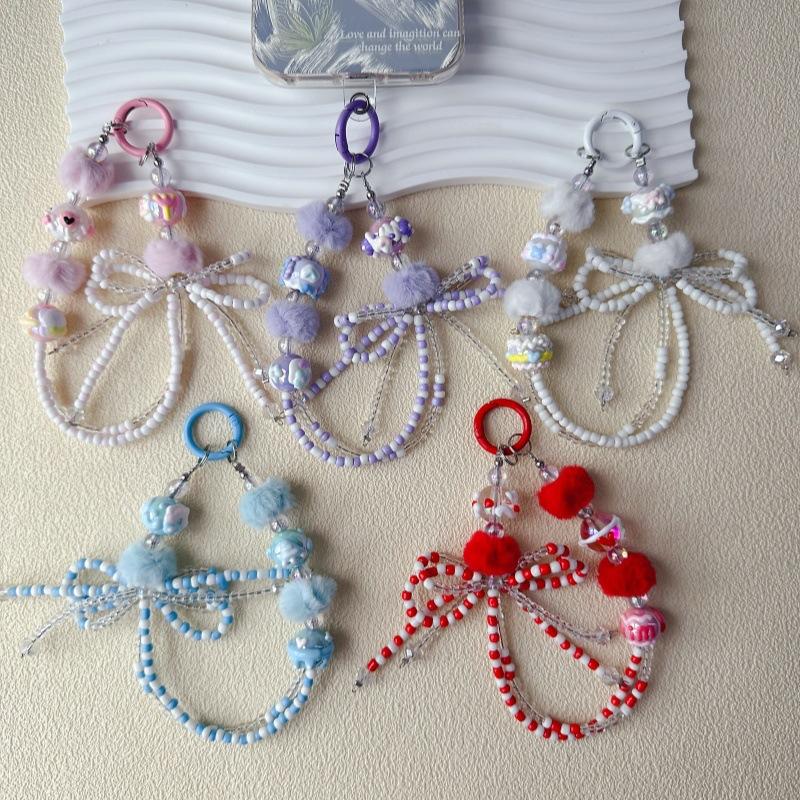 Cadena para teléfono móvil de otoño e invierno, nueva, con cuentas de arroz pintadas a mano, llavero con lazo, colgante para bolso, decoración, cadena de cuentas, accesorios.