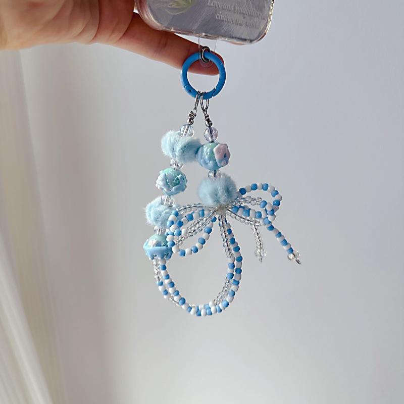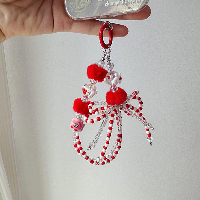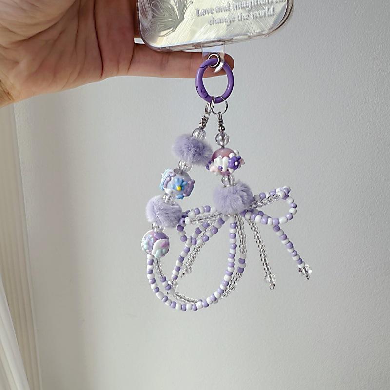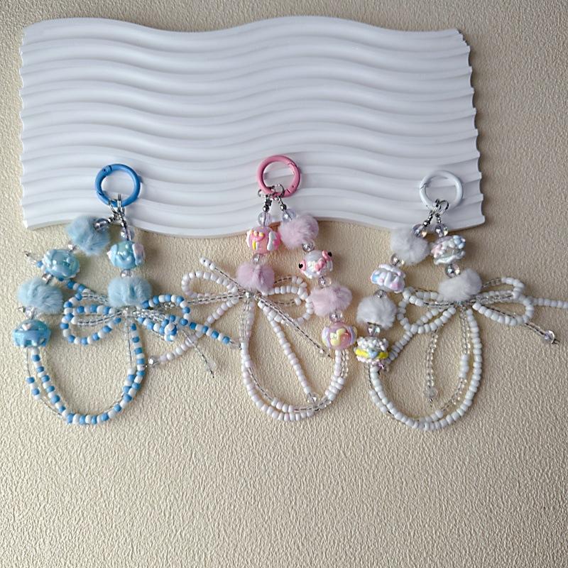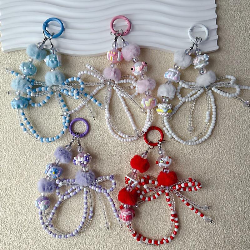 Cadena para teléfono móvil de otoño e invierno, nueva, con cuentas de arroz pintadas a mano, llavero con lazo, colgante para bolso, decoración, cadena de cuentas, accesorios.