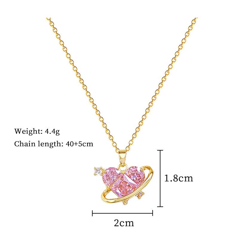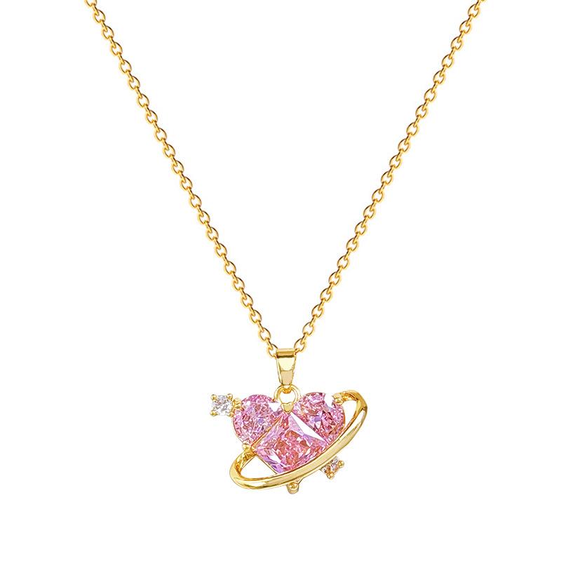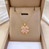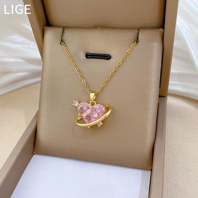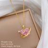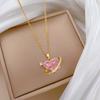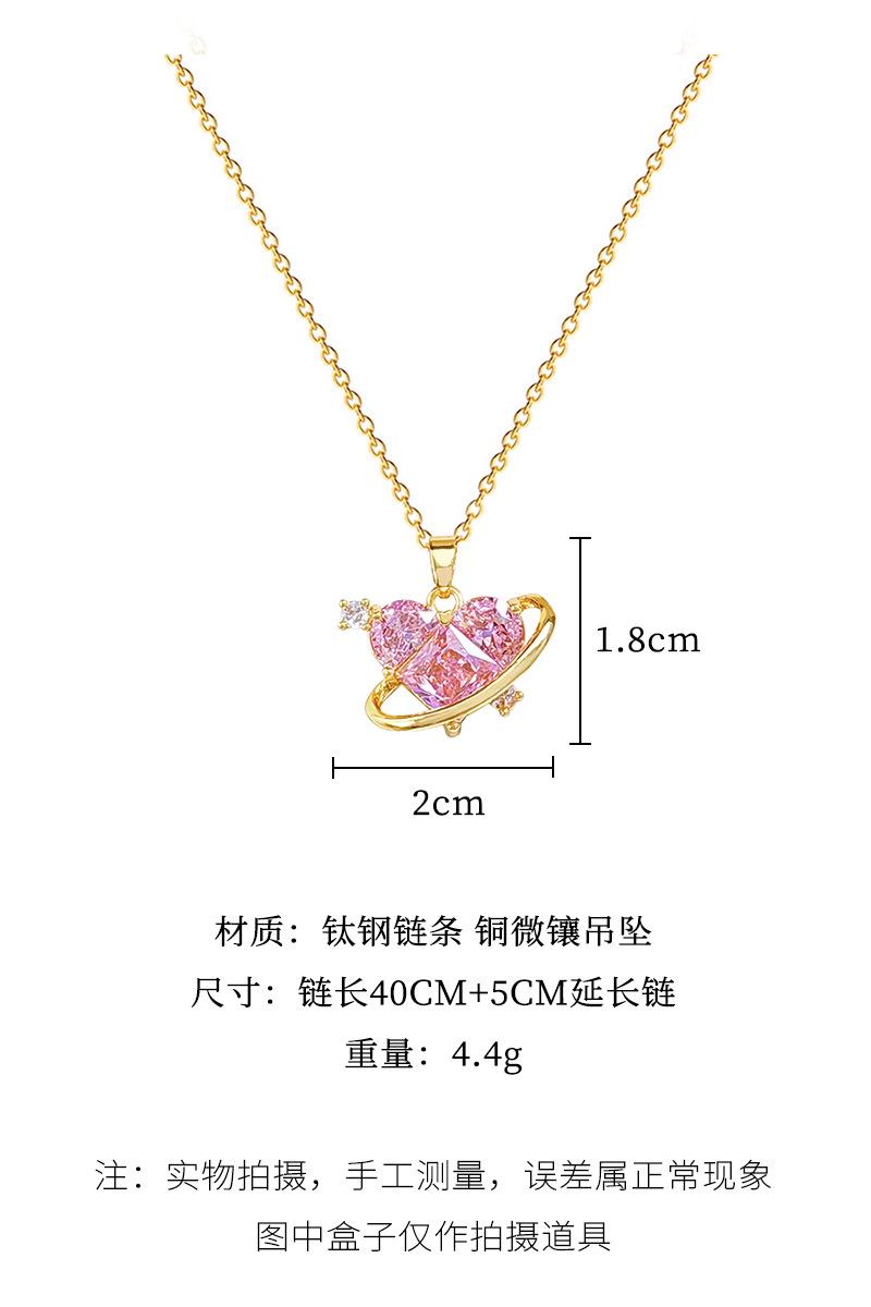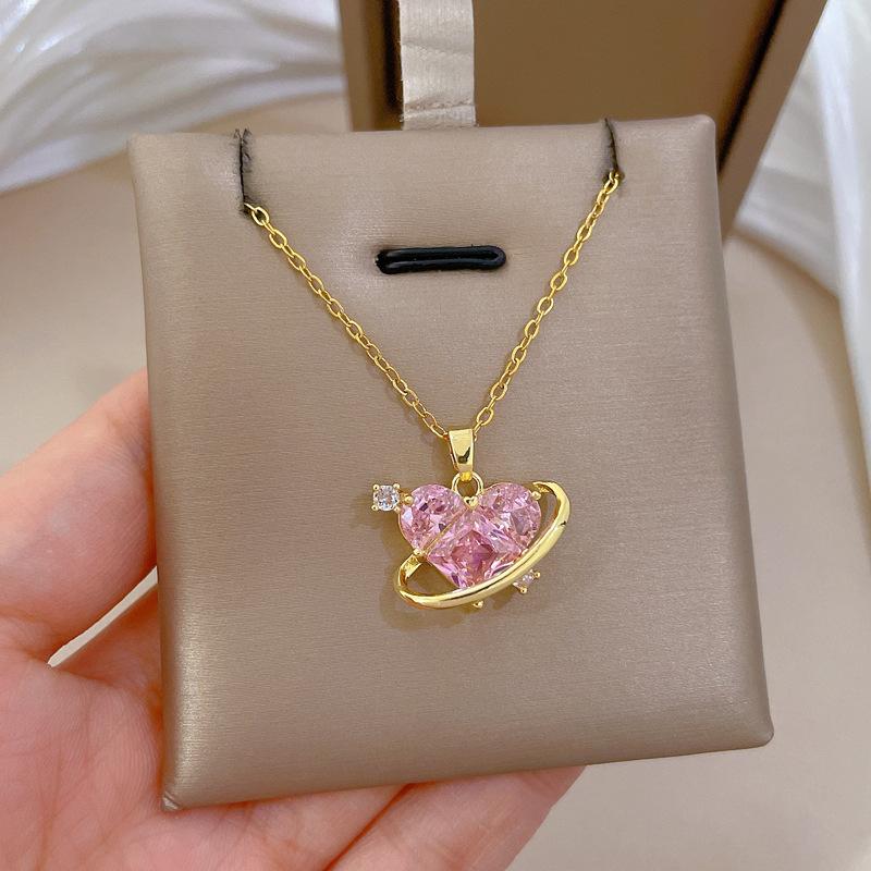 [Acero de titanio] Collar elegante y lujoso con diamantes de imitación rosas, cadena de clavícula a juego para mujer, acero de titanio.