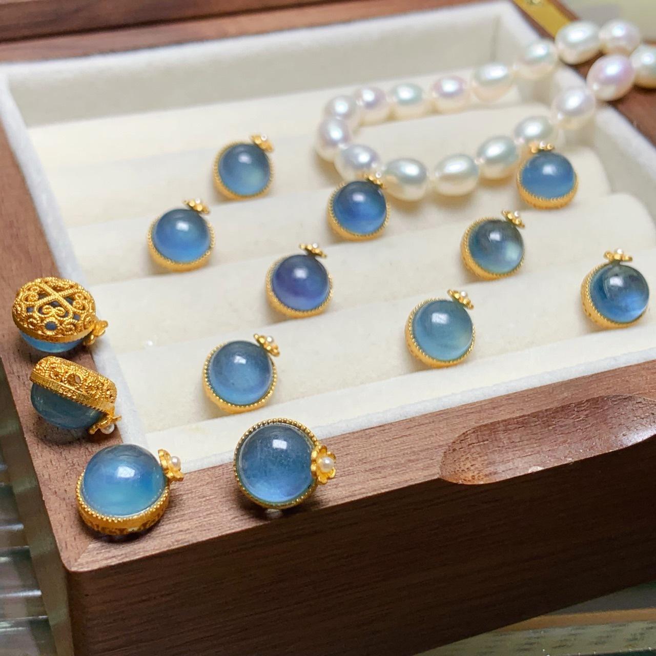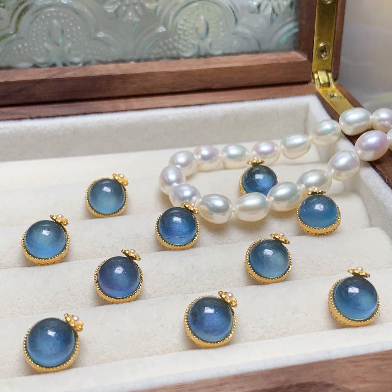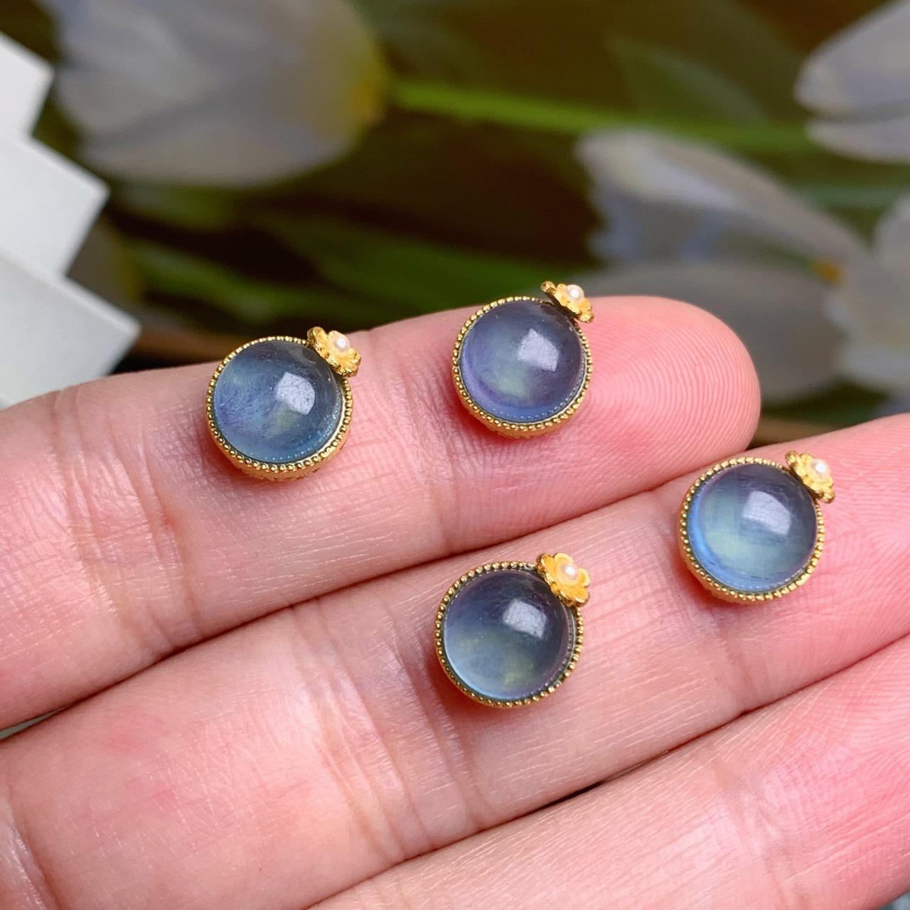 Natural aquamarine round small flower S925 silver ancient gold pearl accessories