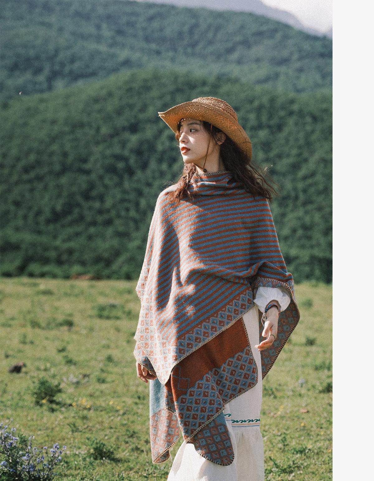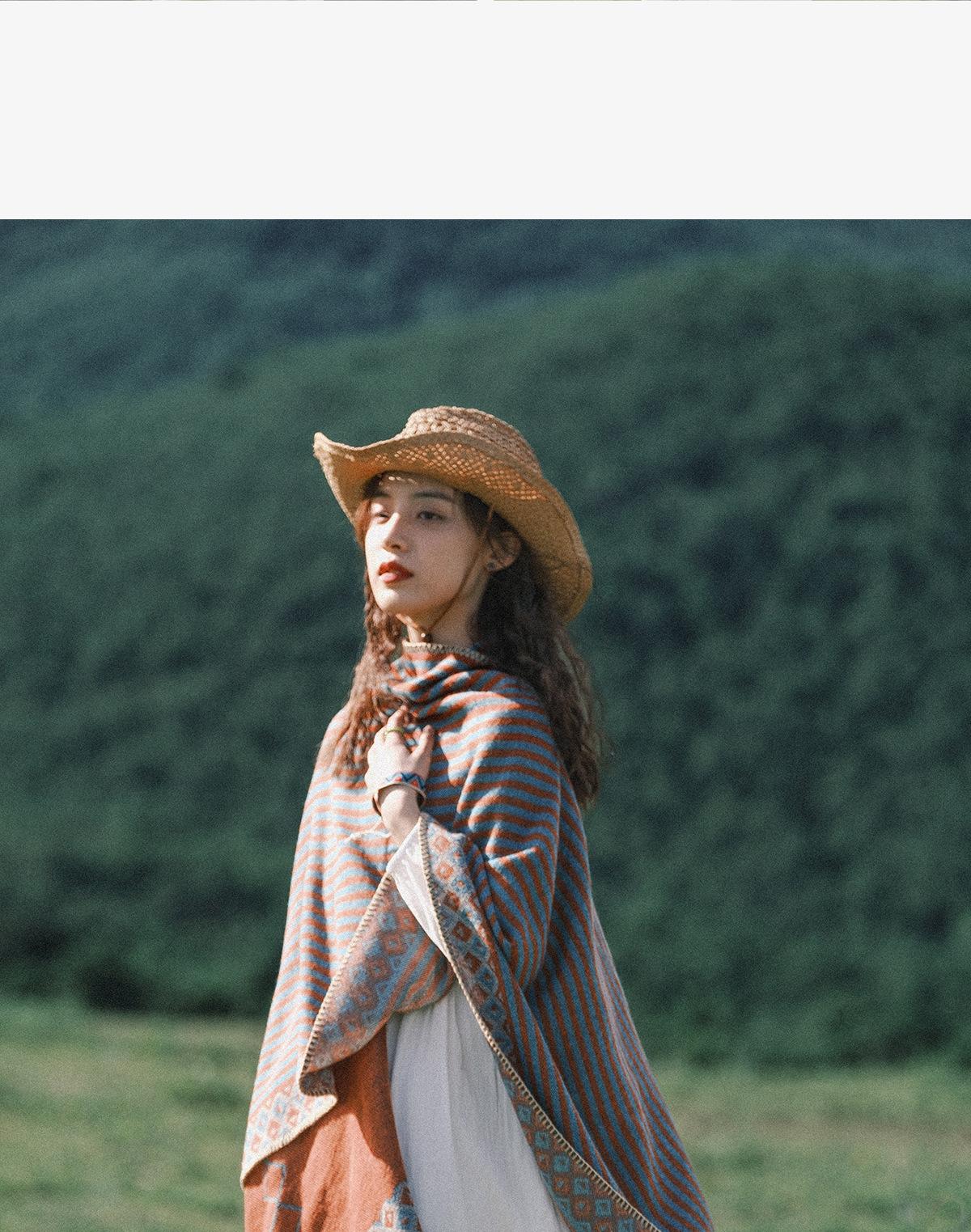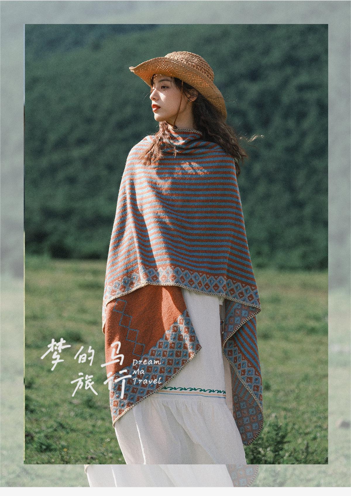Capa de viaje de Xinjiang para mujer, estilo retro, con borlas, cálida, estilo Yunnan