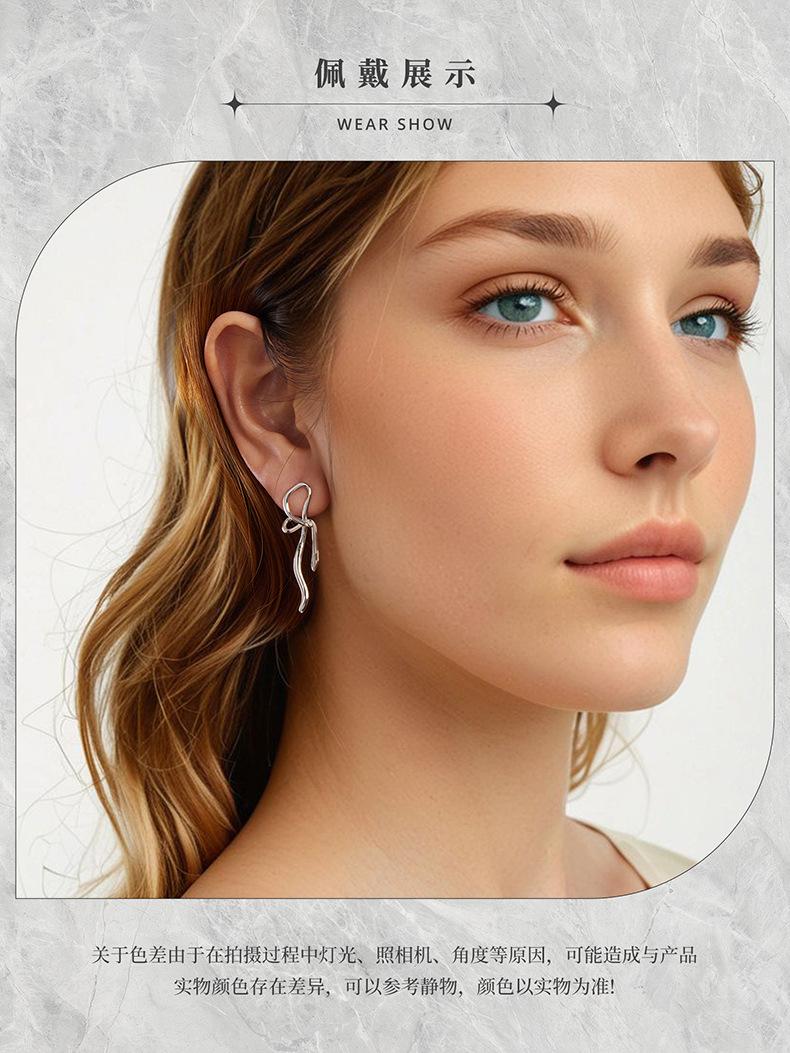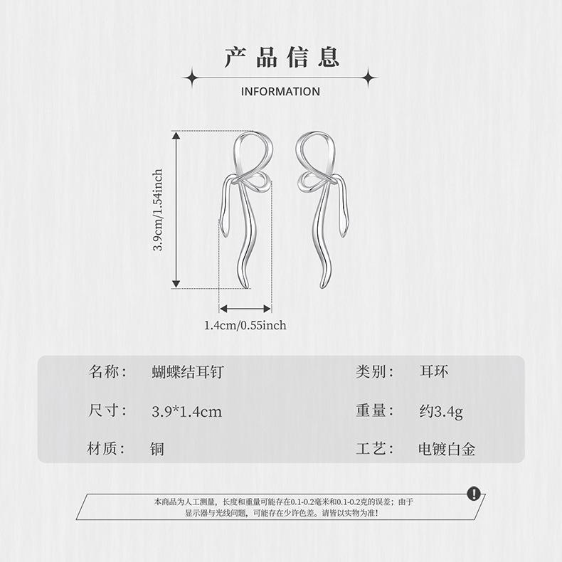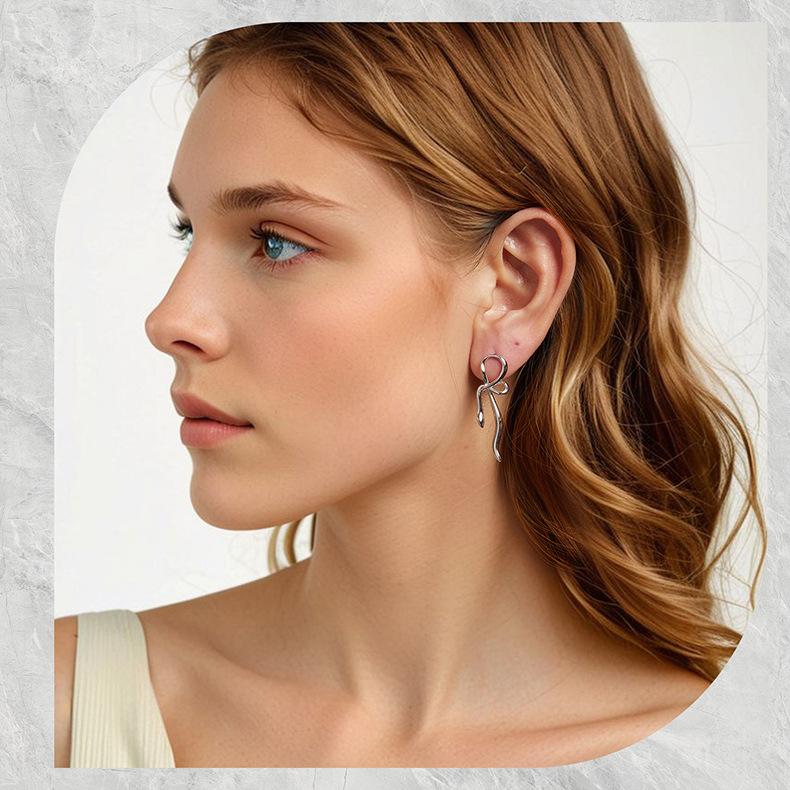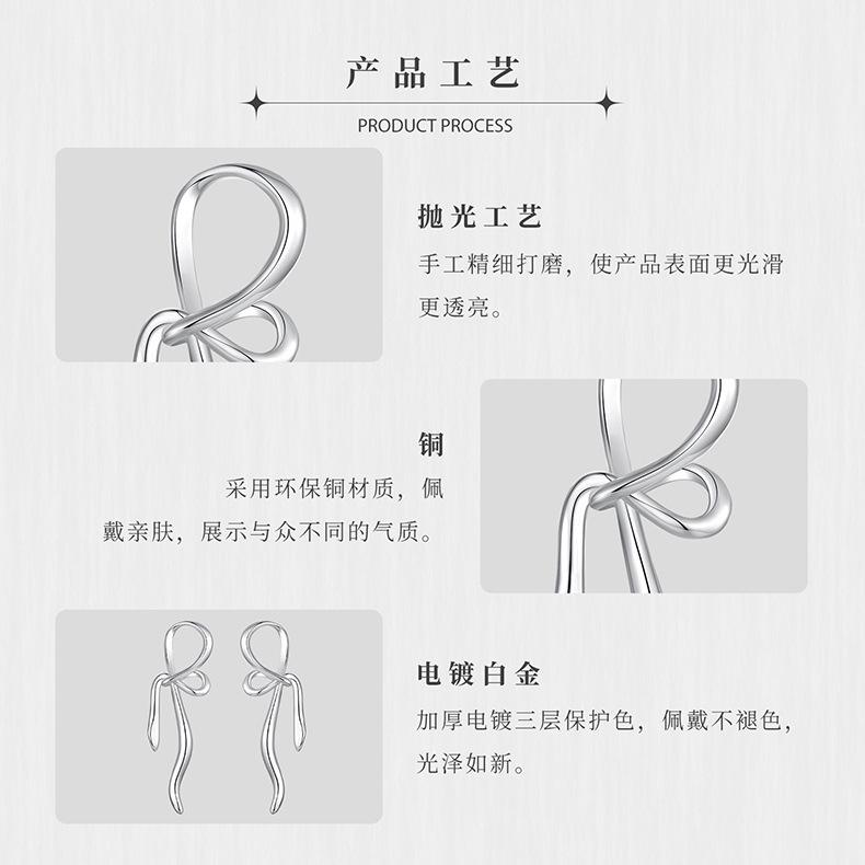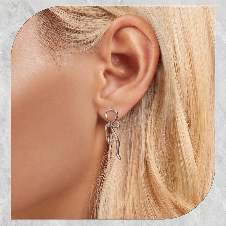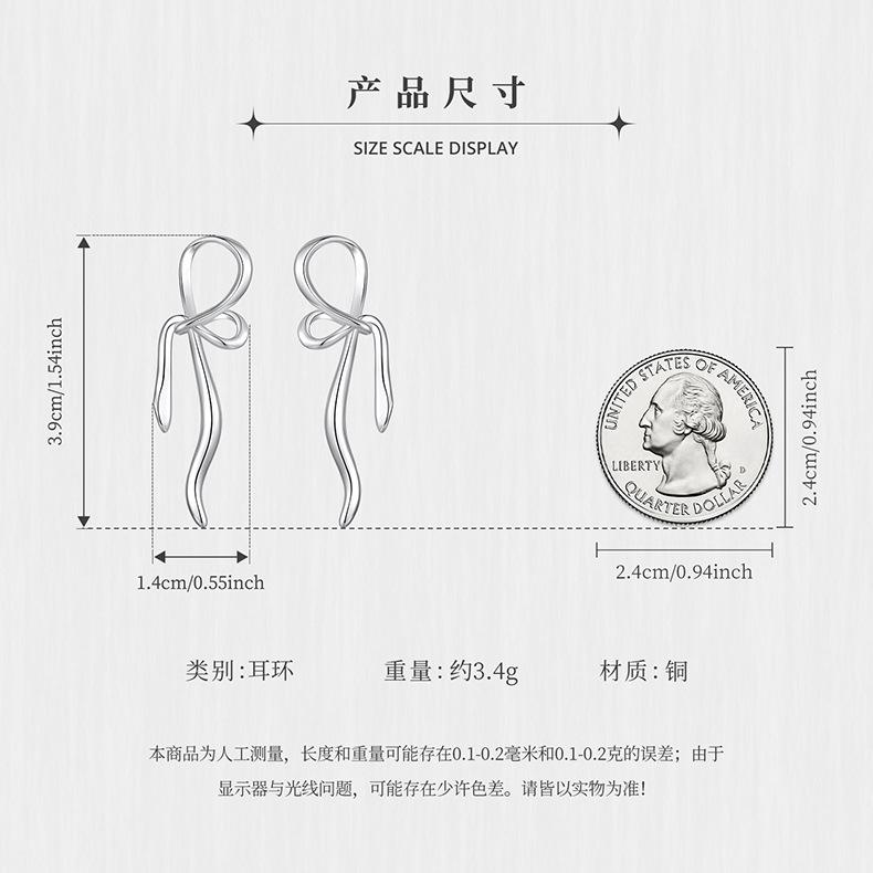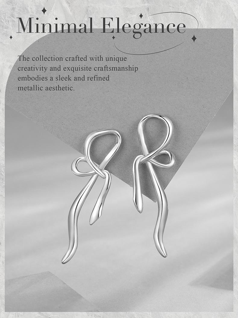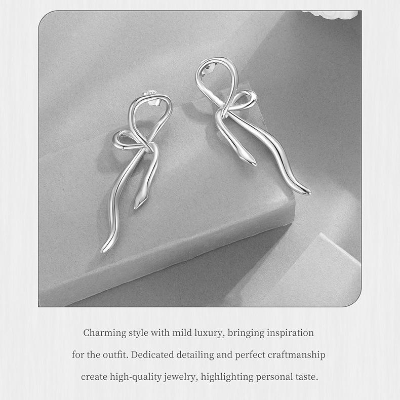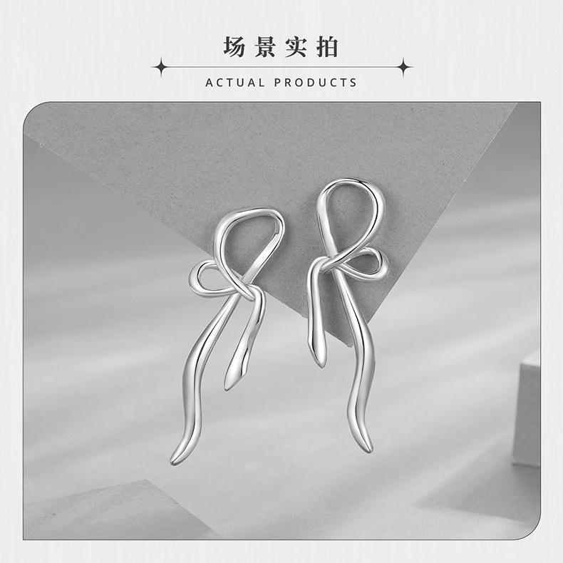 Pendientes de plata con elegante lazo cruzado con dije de plata, pendientes de plata platino chapados en cobre con personalidad exquisita para mujer, venta al por mayor