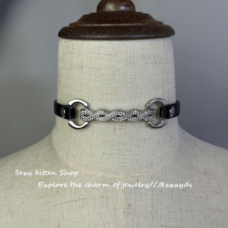 Collar de Cadena Metálico de Alta Gama con Costuras Torcidas Dulce Oscuro Frío Chica Picante Europeo y Americano Cuero Cibernético Celebrante Combinable Collar Mujeres