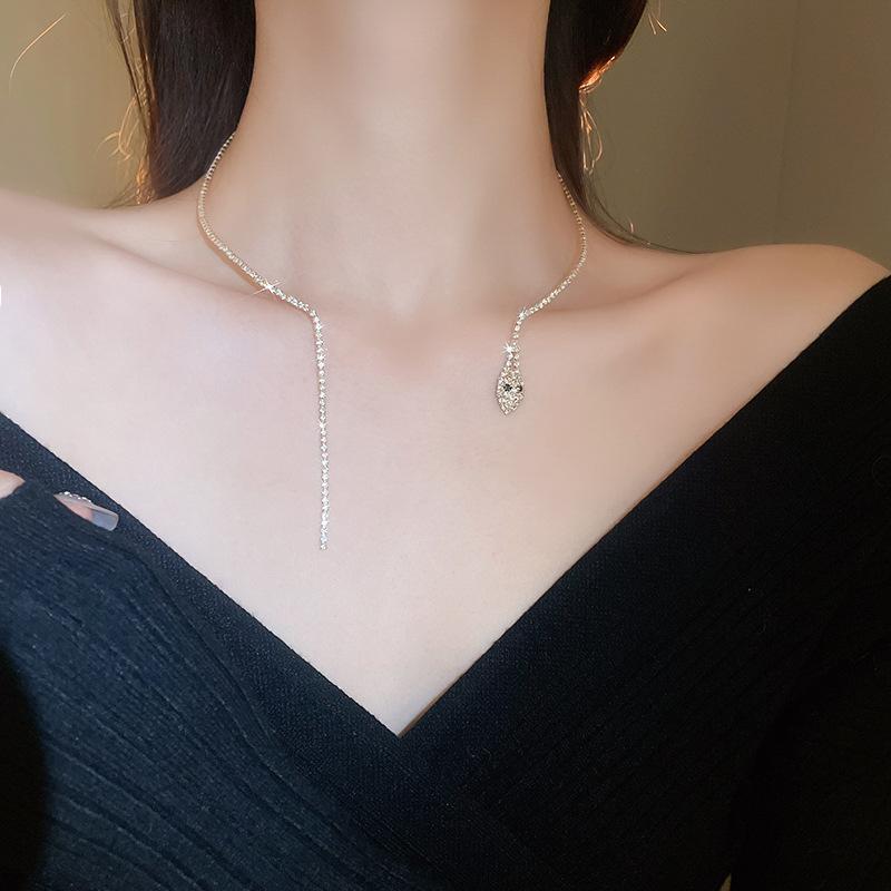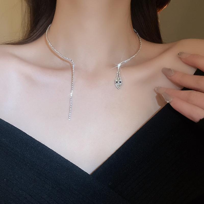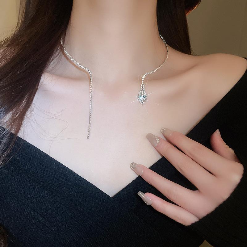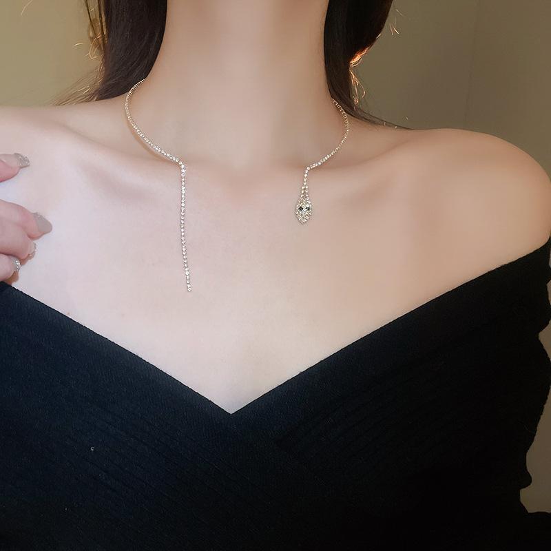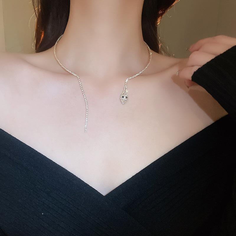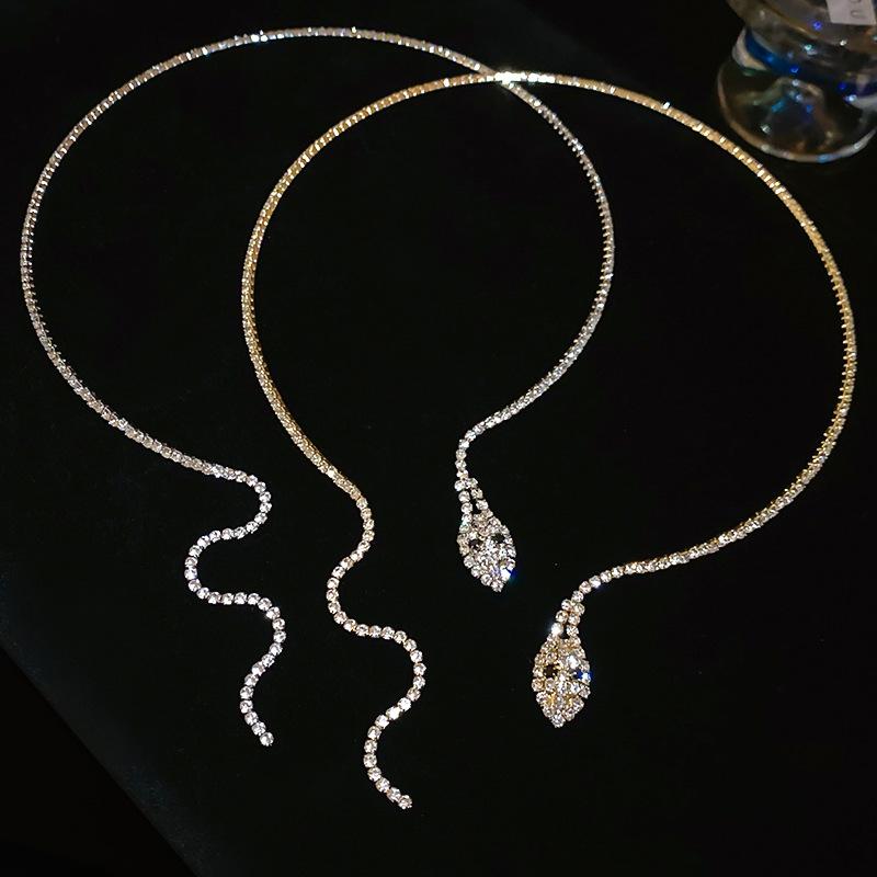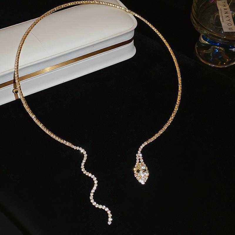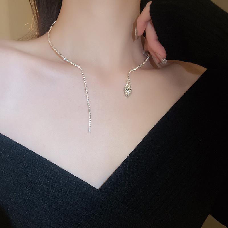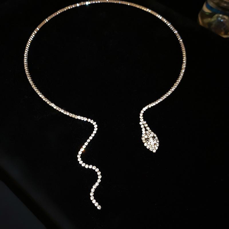 Collar de Serpiente de Diamantes Super Flash Simple Diseño Nicho Gargantilla Cadena para el Cuello Moda Lujo Ligero Accesorios de Joyería de Alta Gama