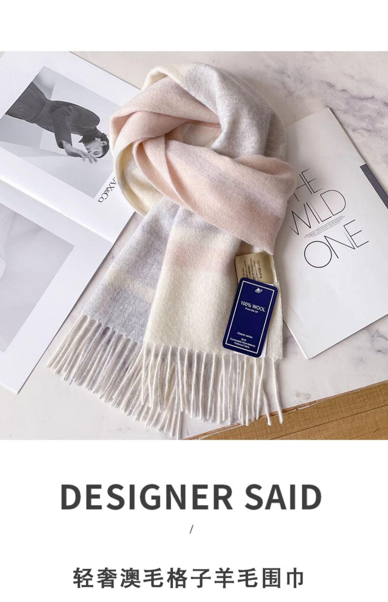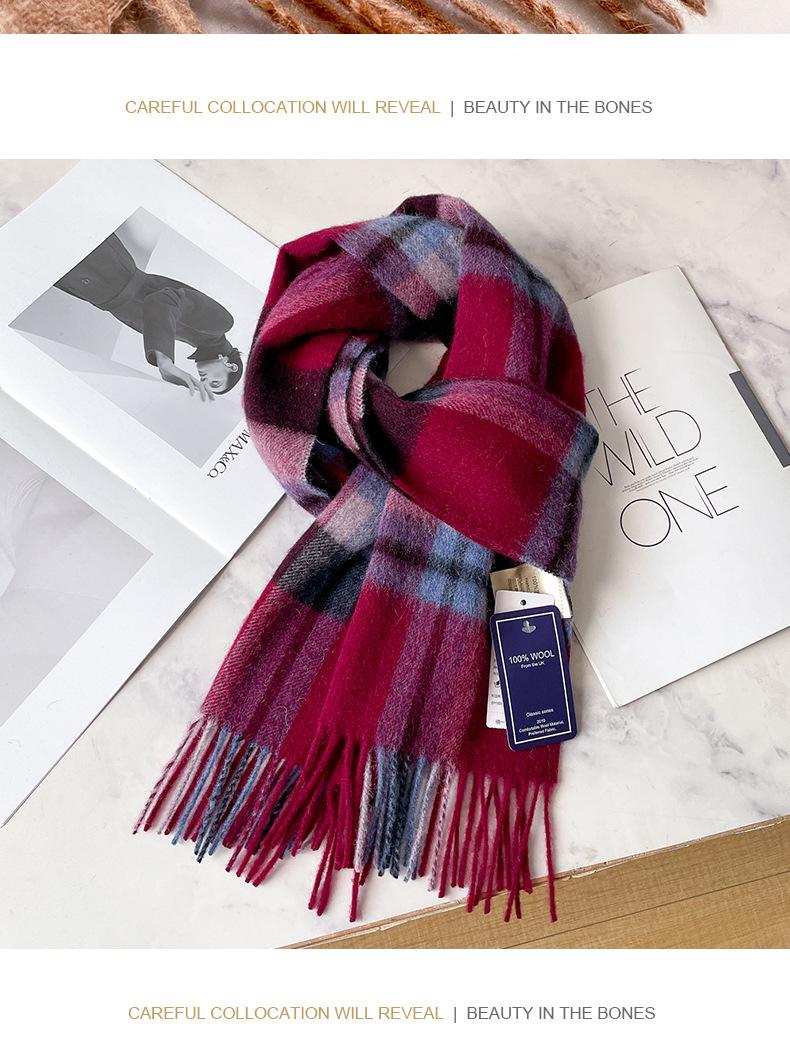 Bufanda Blanca de Lana Pura para Mujer Invierno 2025 Nuevo Estilo Pequeño Fresco Cuadros Cachemira Alta Gama Regalo de Cumpleaños