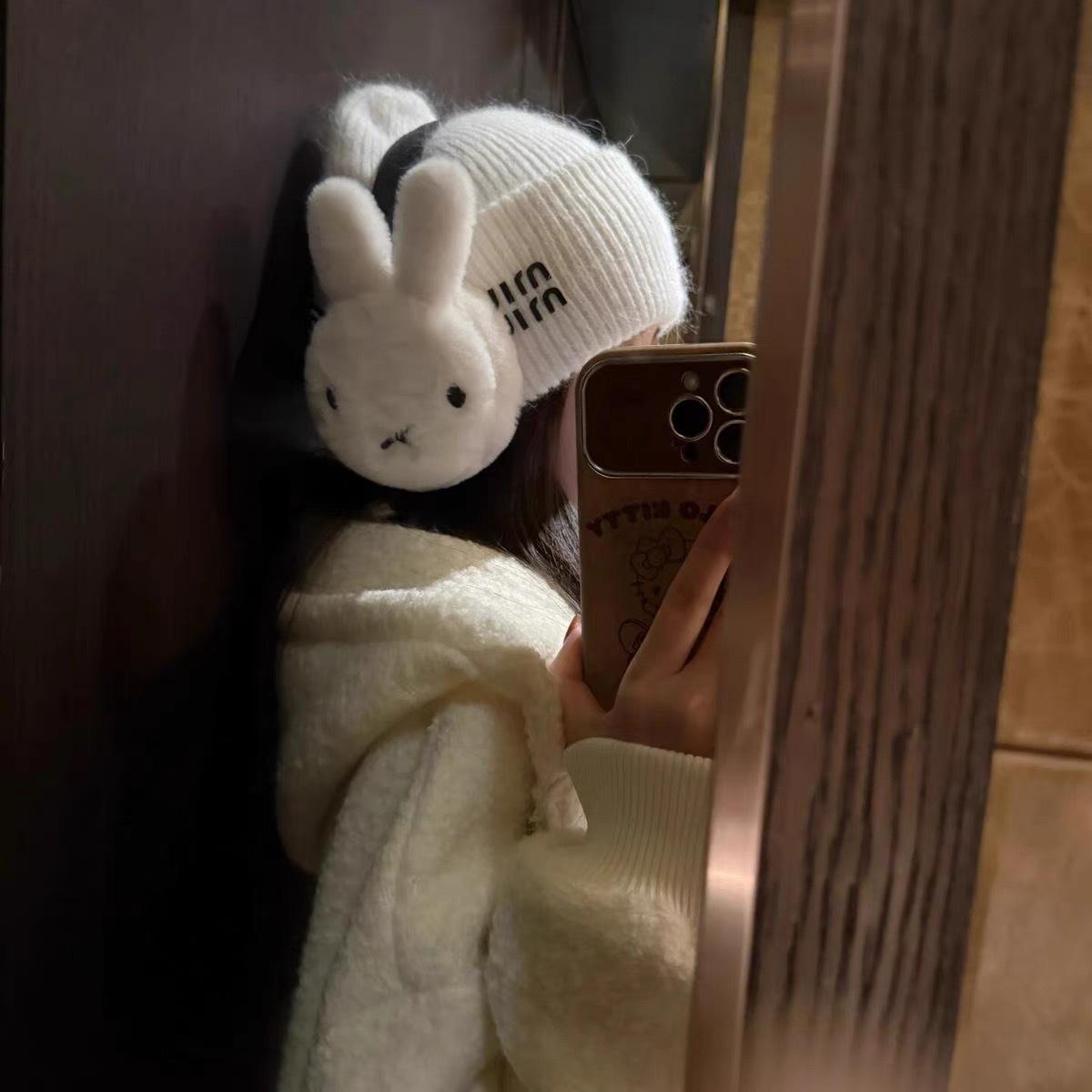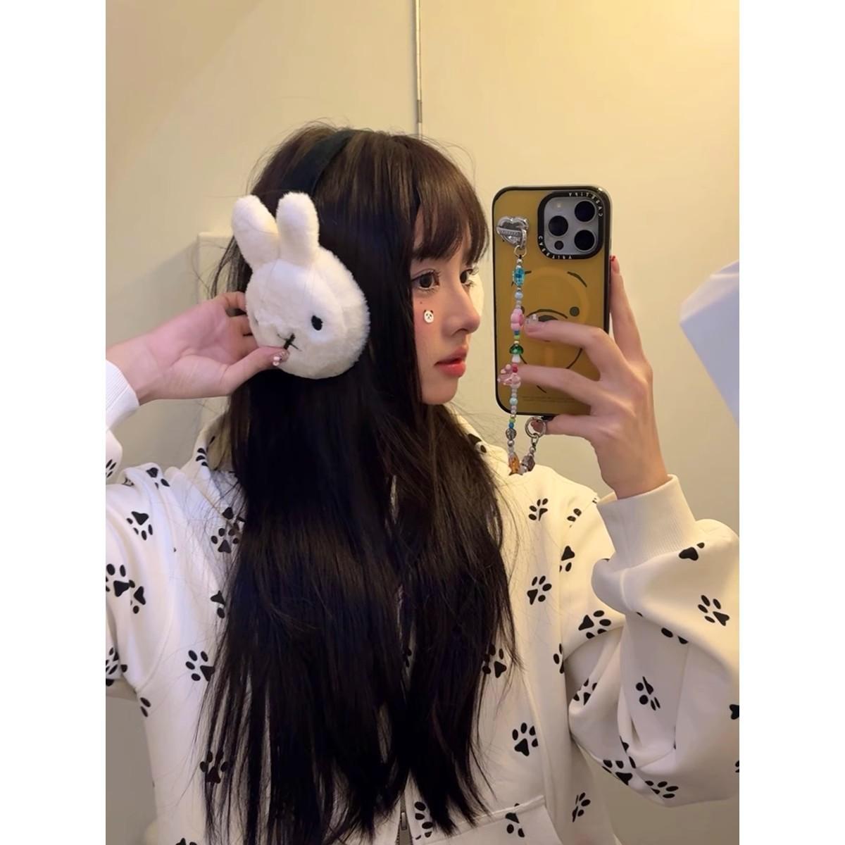 Orejeras cálidas de conejo de dibujos animados de alto valor para el invierno, orejeras anticongelantes versátiles y sencillas, orejeras de felpa para estudiantes