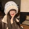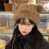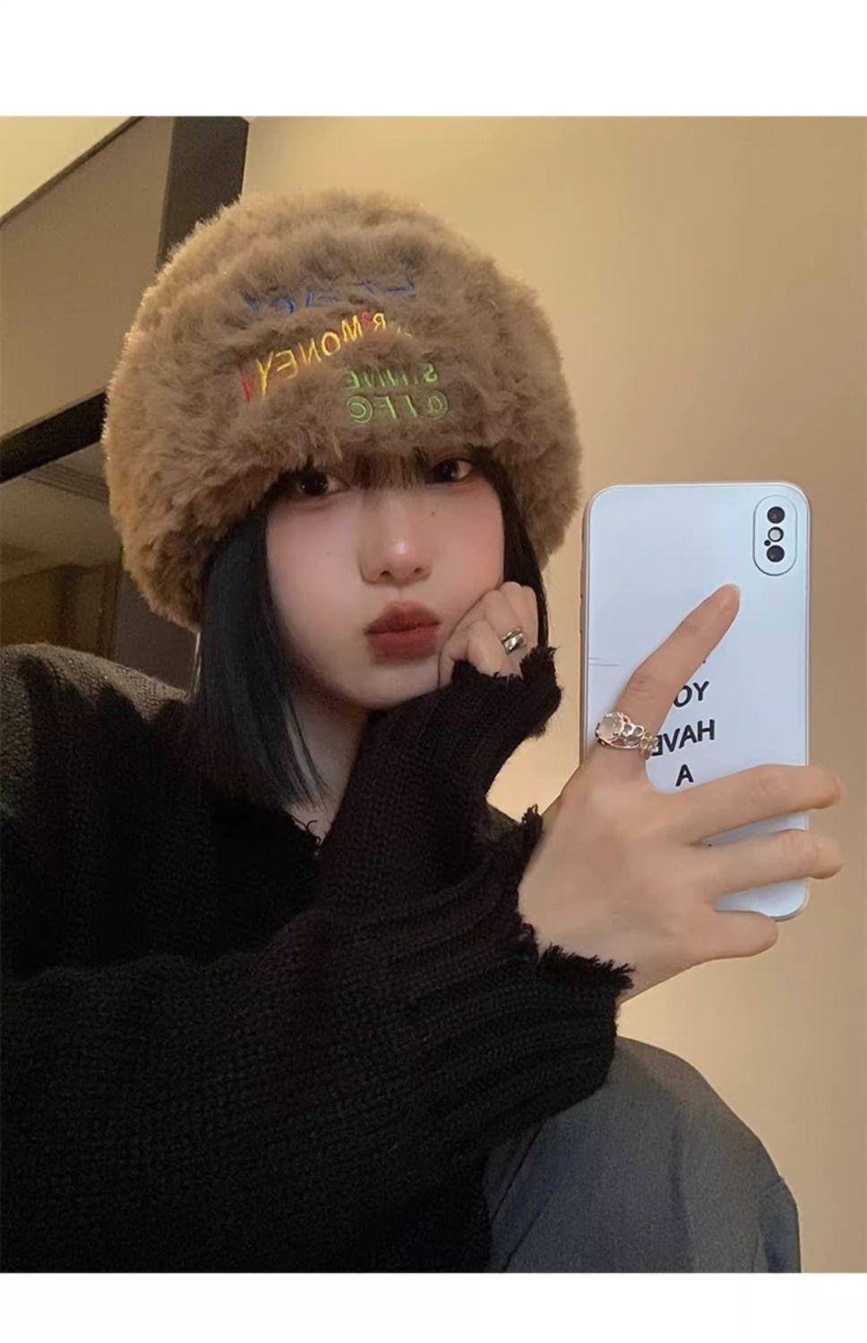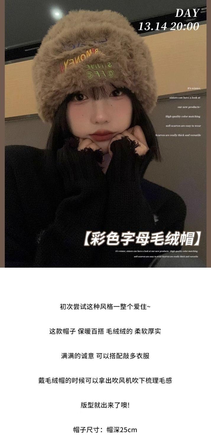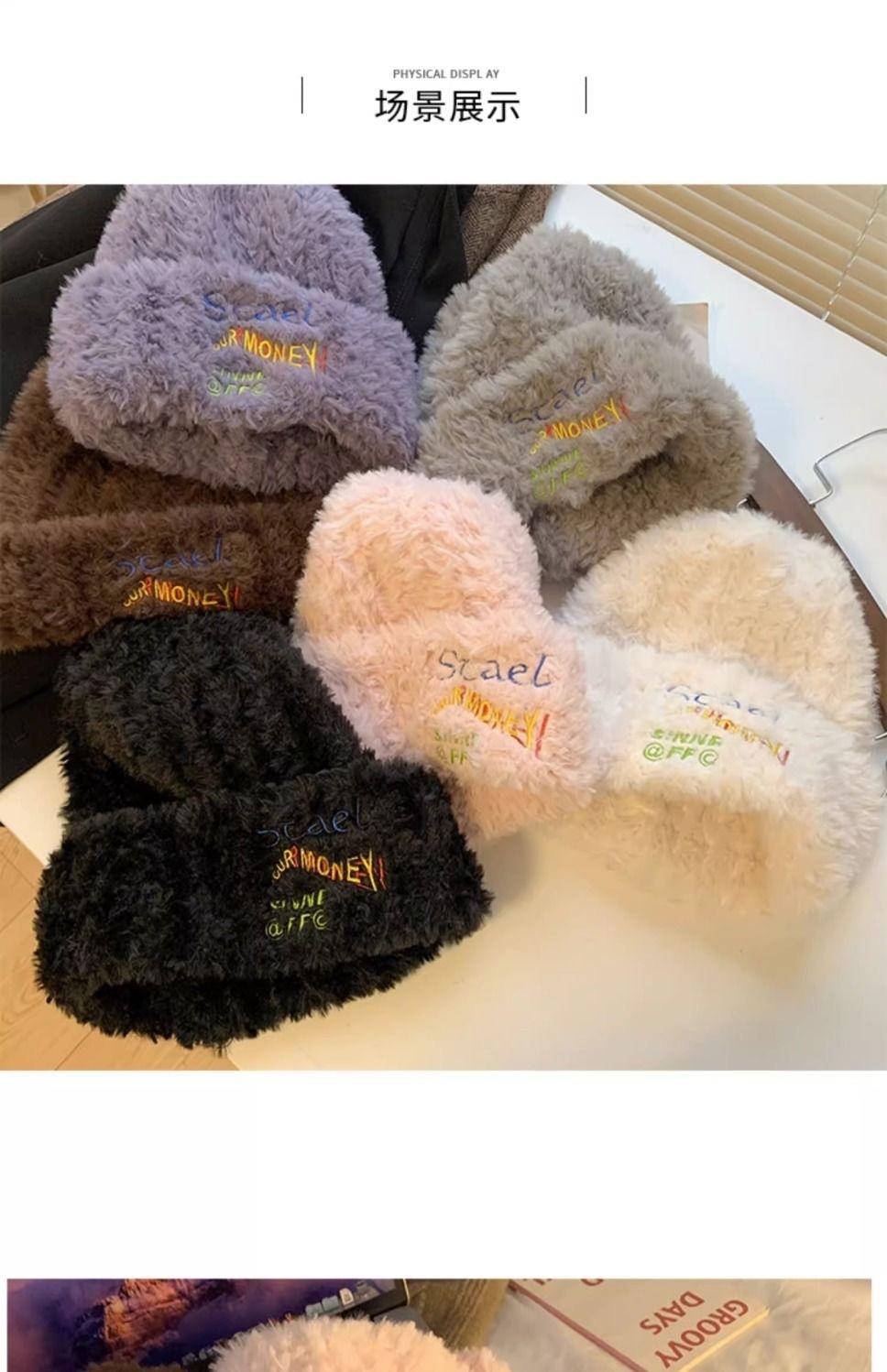 Gorro de punto peludo de otoño e invierno para mujer, estilo japonés, con gran circunferencia de la cabeza, grueso y cálido, de lana, estilo coreano, para exhibir caras, pequeño, a la moda.