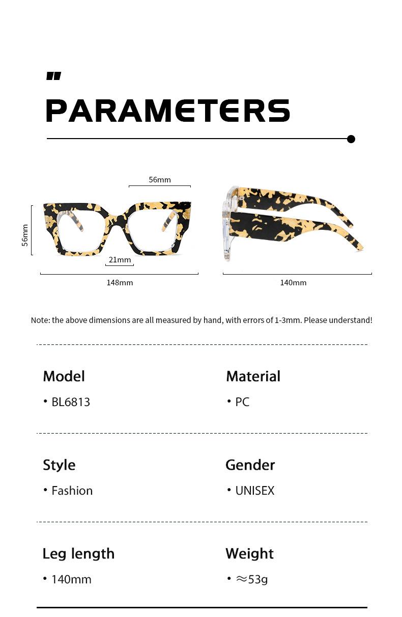 Color de Placa Transfronteriza Montura Grande Pierna Ancha Gama Alta Luz Anti-Azul Espejo Plano Moda Europea y Americana Montura de Gafas Sencillas Bl6813