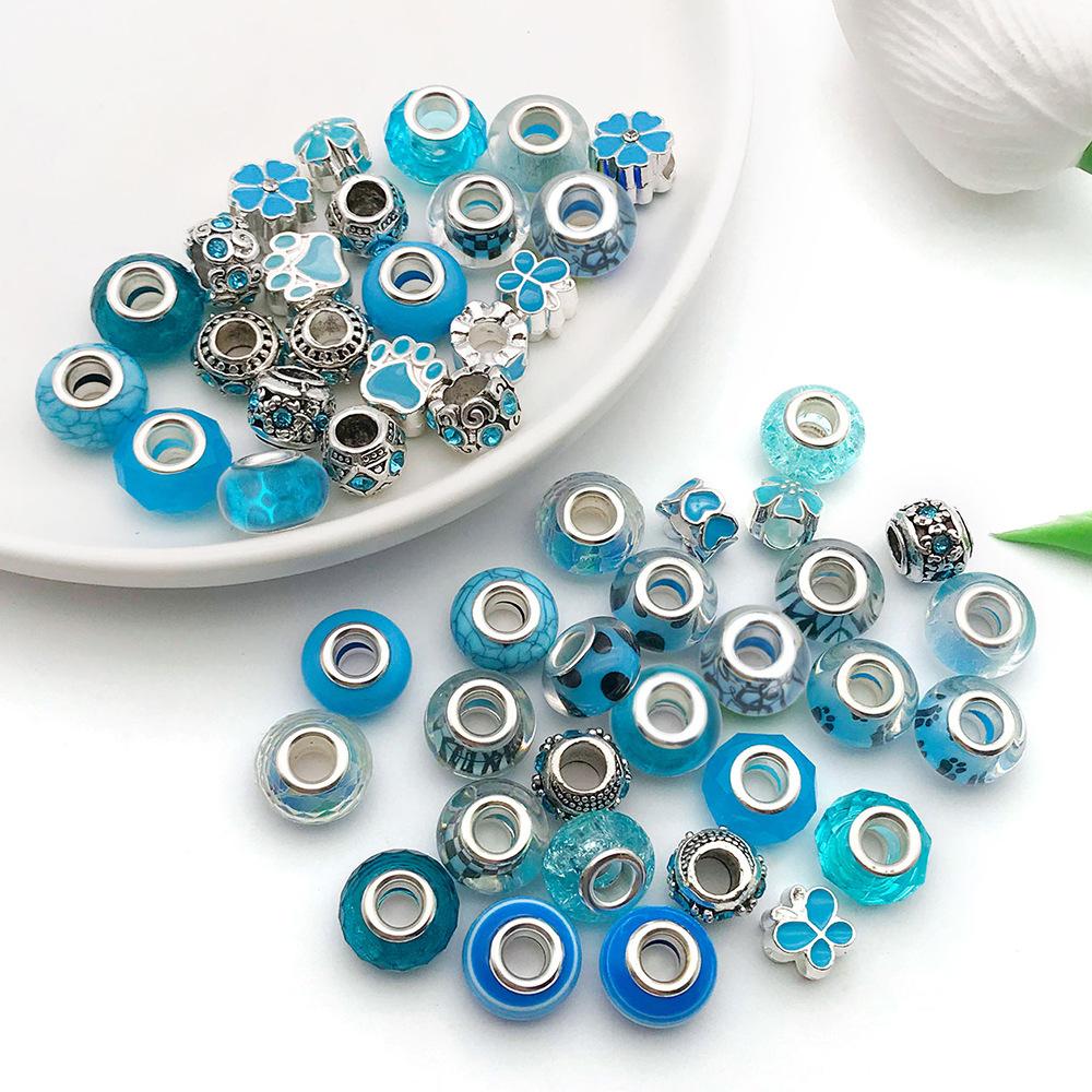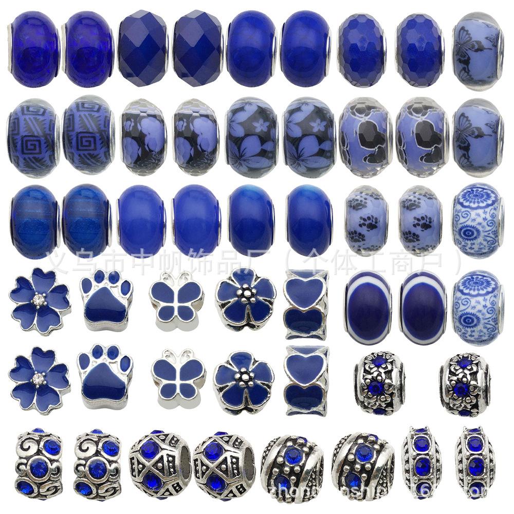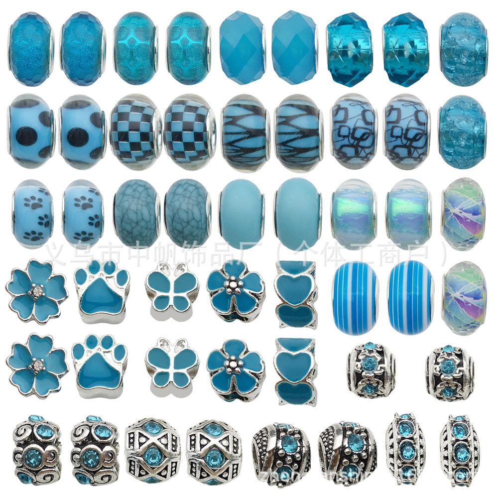 [Nombre]: Cuentas de resina azul lago con aleación y goteo de aceite de agujero grande