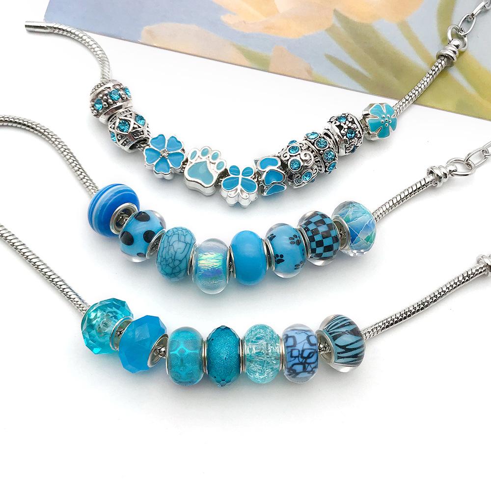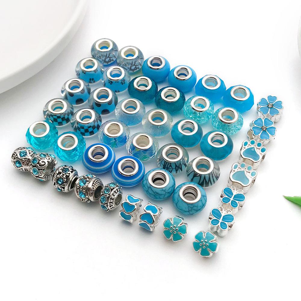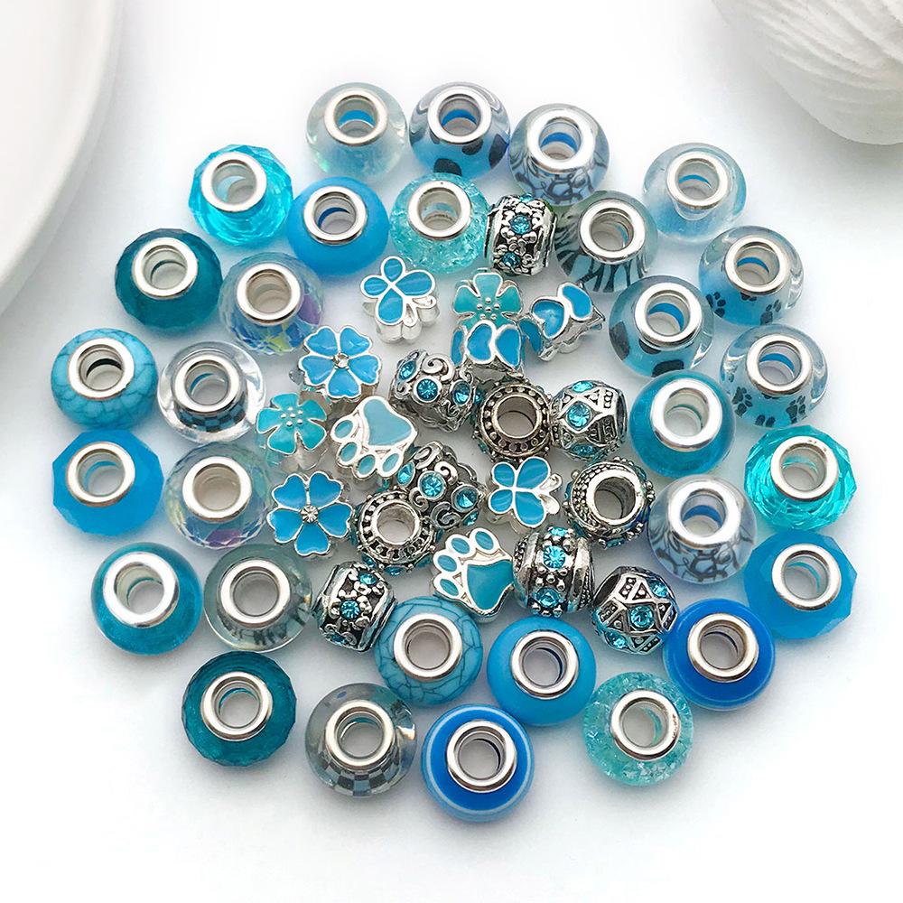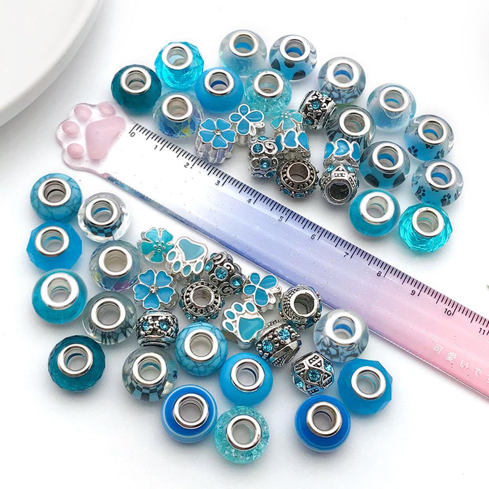 [Nombre]: Cuentas de resina azul lago con aleación y goteo de aceite de agujero grande