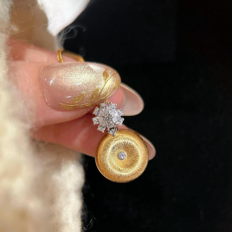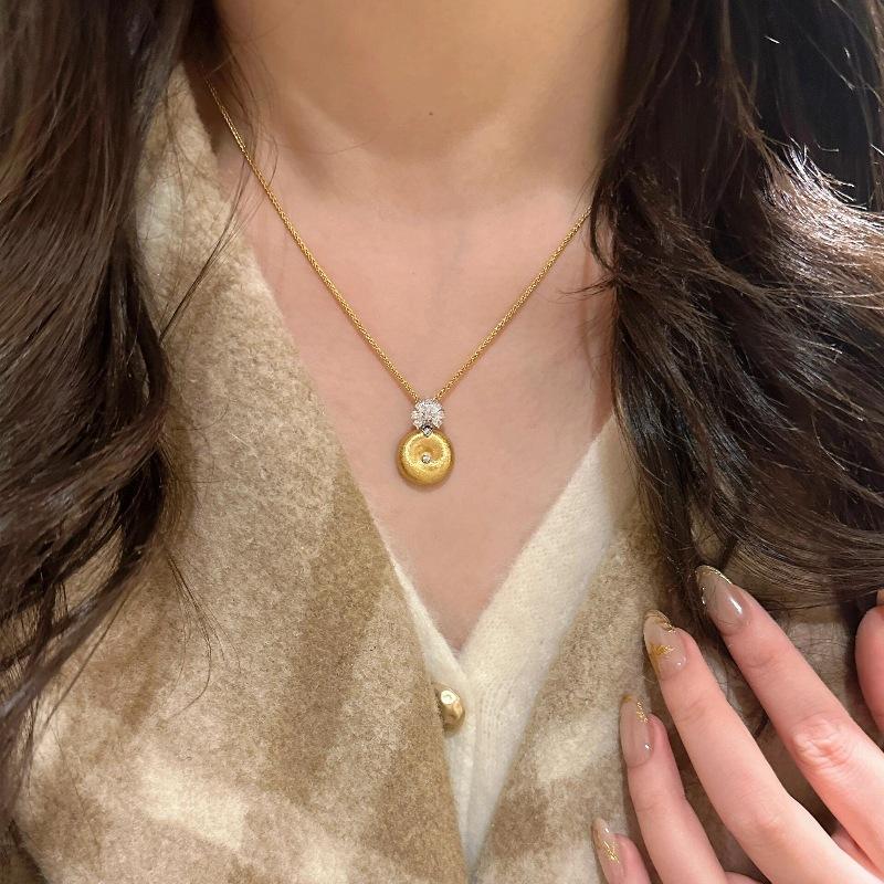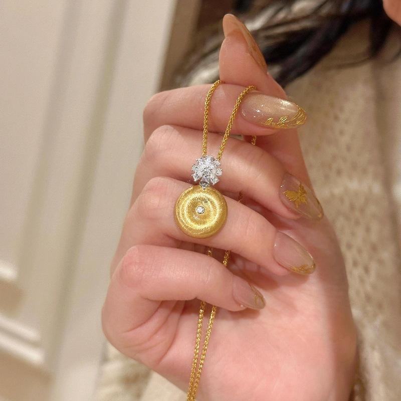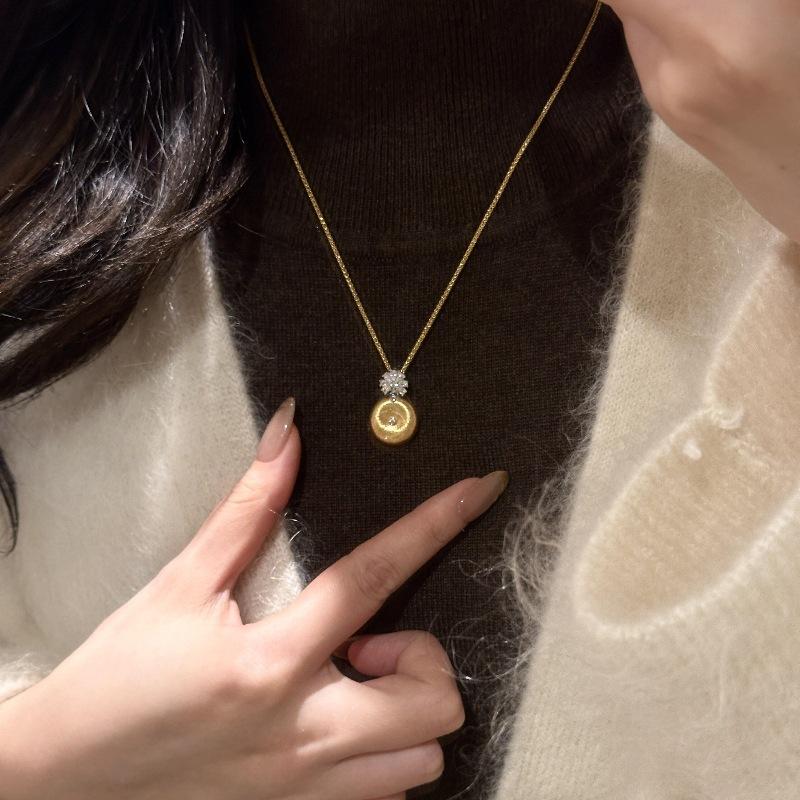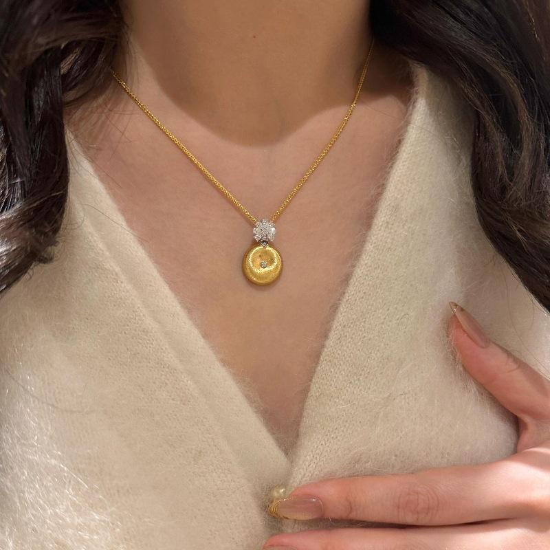 Collar de lujo vintage con diseño de copo de nieve, redondo y cepillado, con incrustaciones de circonitas, colgante de alta calidad, elegante cadena de clavícula.