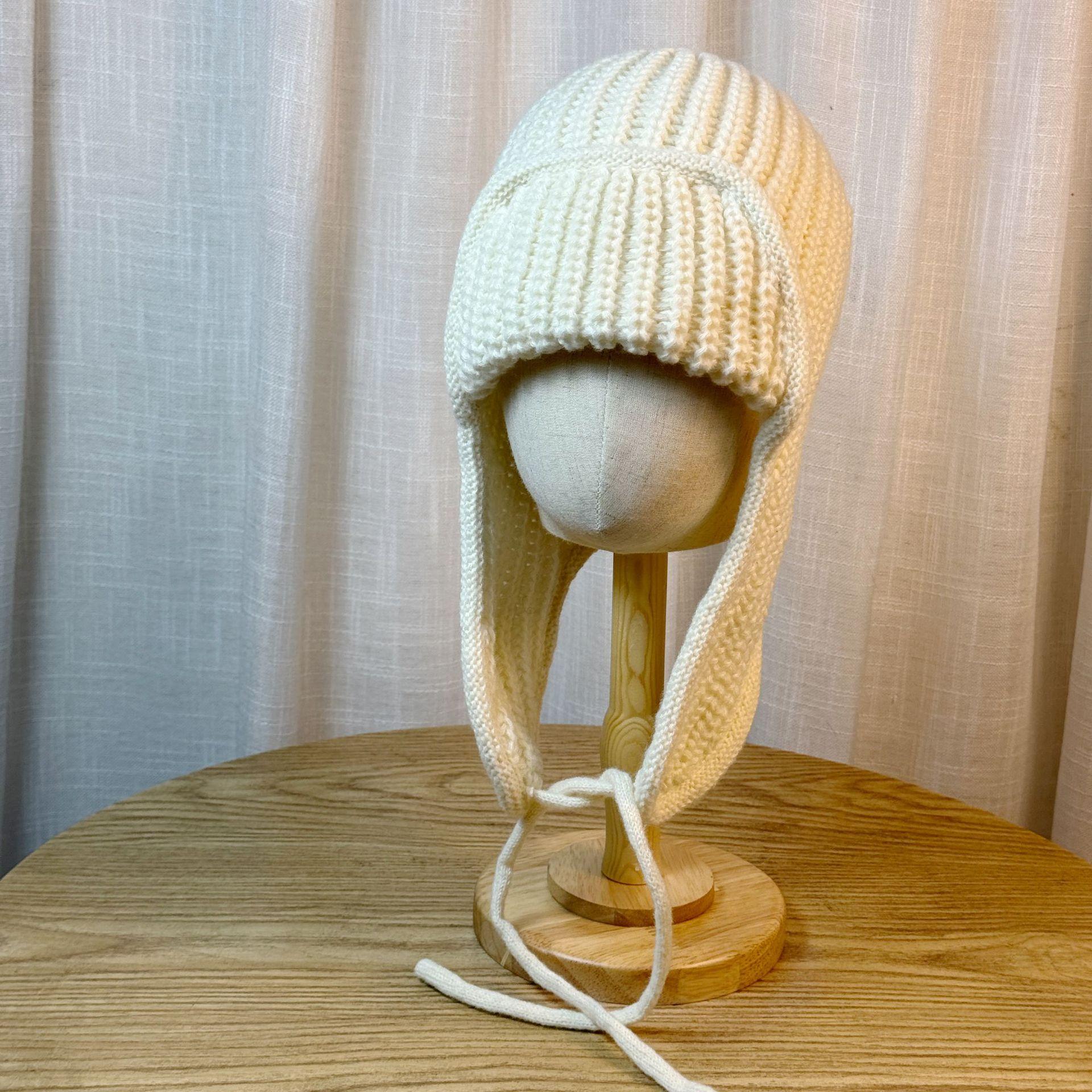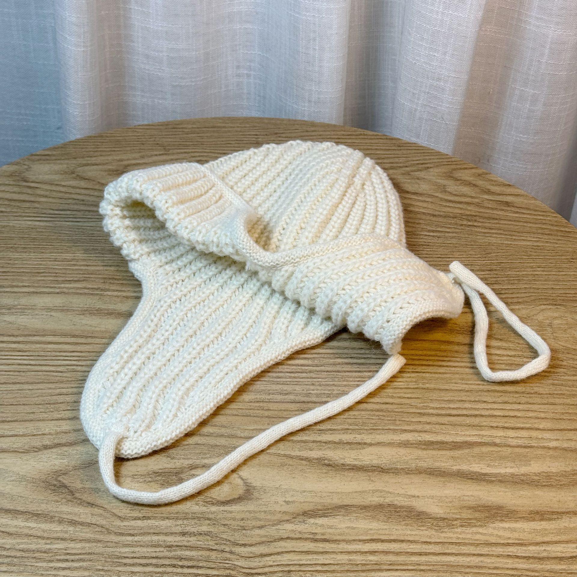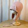 Gorro de lana de punto con protección auditiva de color liso para mujer, otoño e invierno 2024, nuevo gorro Lei Feng con protección auditiva pequeña y cálida para todo tipo de rostro.