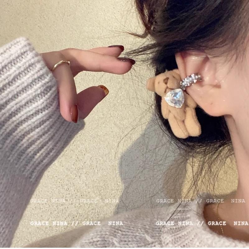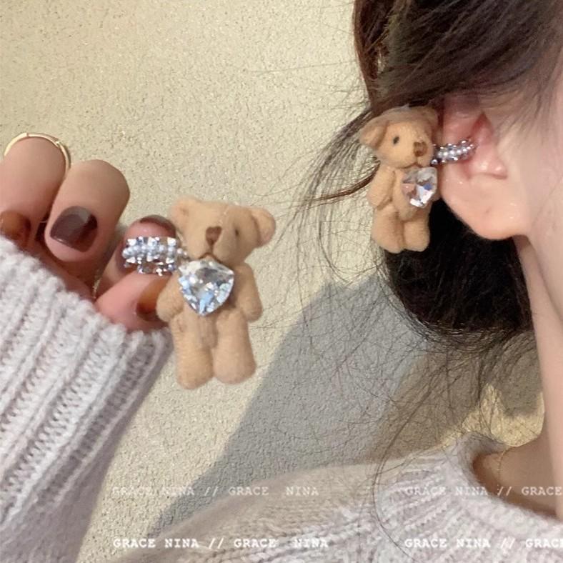Lindo Clip para la Oreja de Oso de Tela Sin Perforación para Mujeres Nuevo Popular Clip para el Cartílago de la Oreja Aretes y Pendientes Divertidos de Alta Gama
