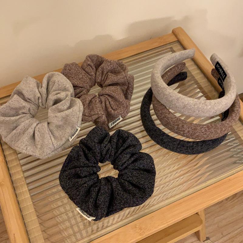 Beige hair tie, Brown hair tie, Black hair tie, Beige headband, Black headband
