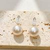 Zircon bow white pearl earrings (thick gold plating)