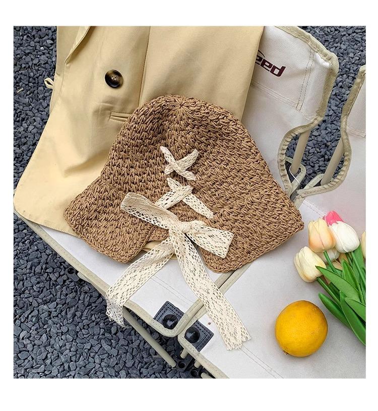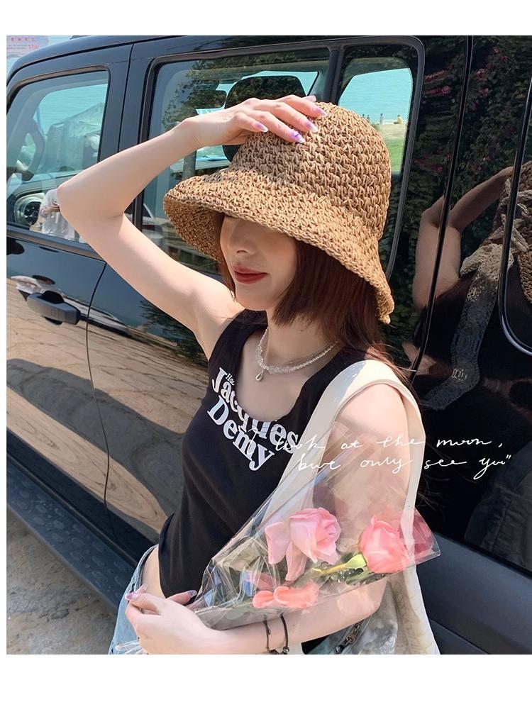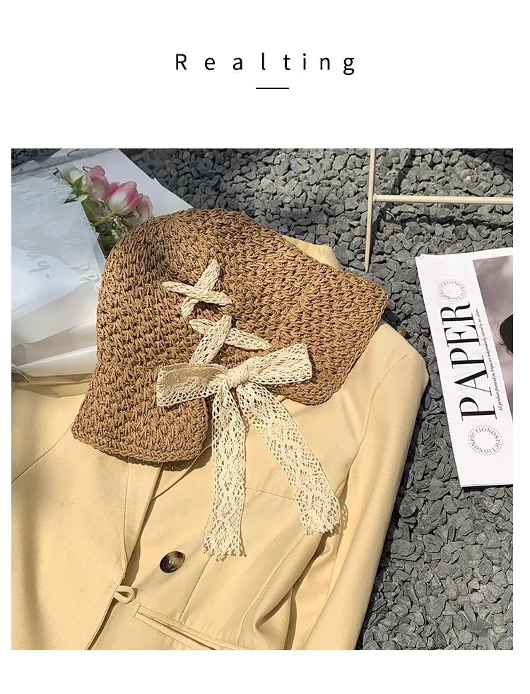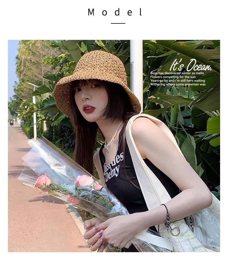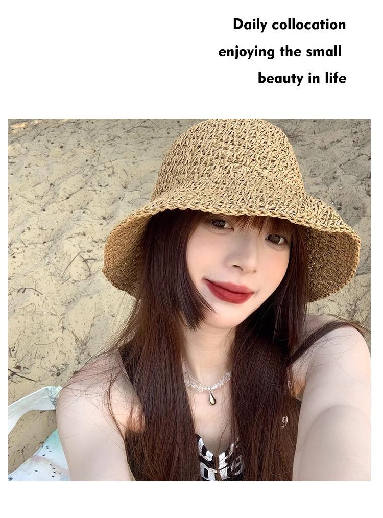 Sombrero de paja para mujer, sombrero de pescador coreano, estilo japonés, bonito sombrero de paja para vacaciones, protector solar, sombrero de playa para la playa.