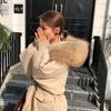 Parka de plumón con cuello de piel de mapache para mujer, abrigo universal de piel auténtica de zorro de gran tamaño, bufanda de lana, venta única