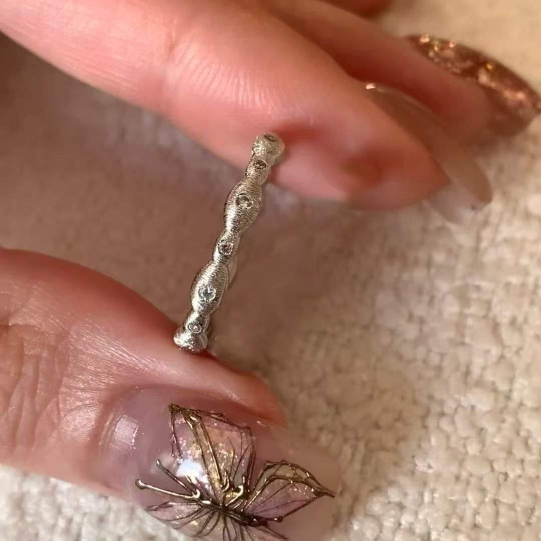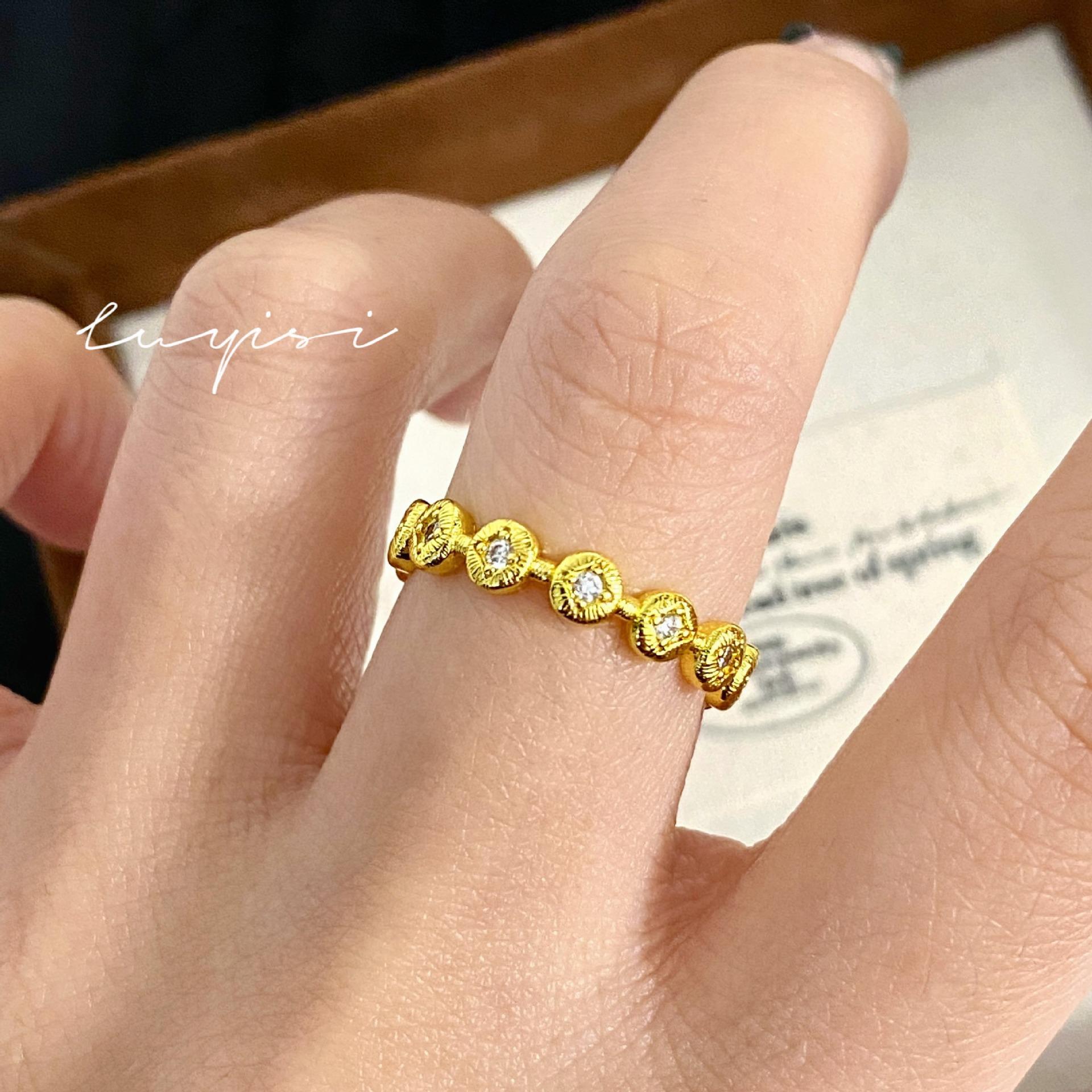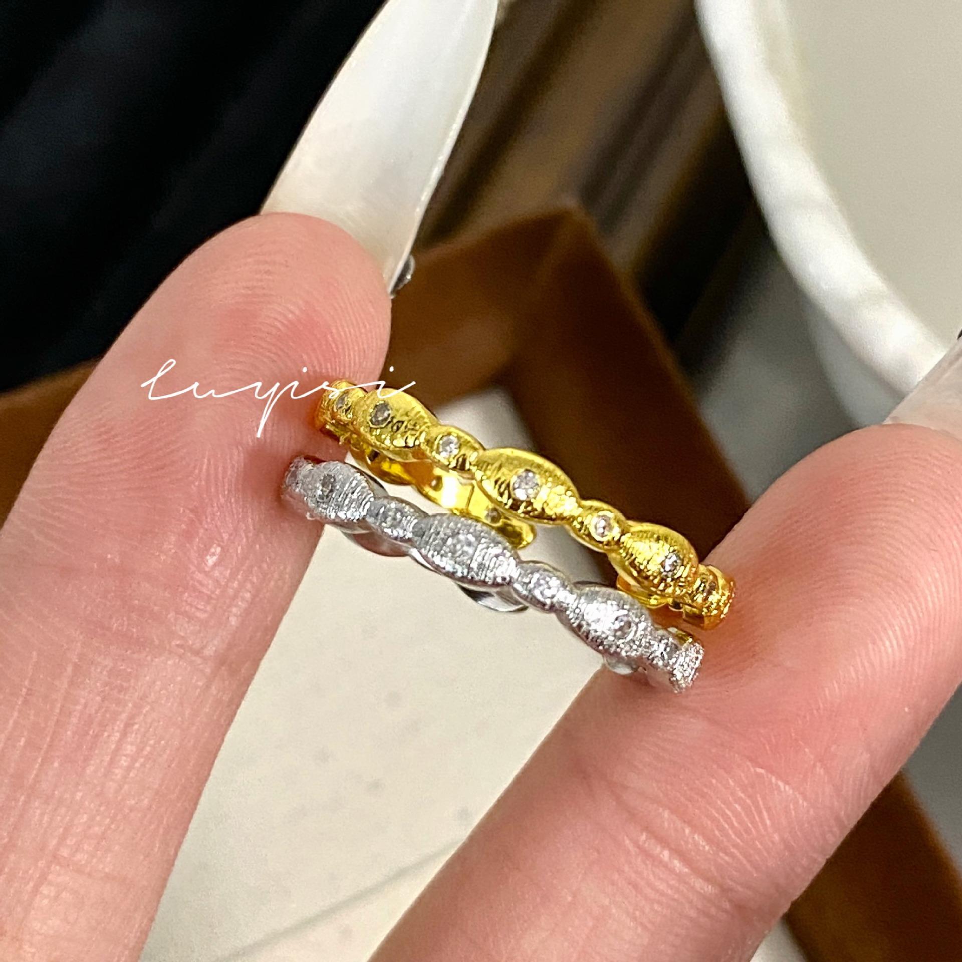Anillo Vintage Estilo Maillard Dibujo de Alambre Micro-incrustado Zircón Anillo Apilable para Mujer Nicho Lujo Ligero Sentido de Alta Gama Anillo de Cola Anillos