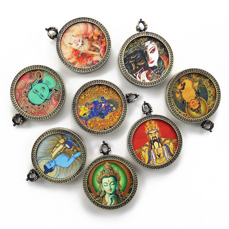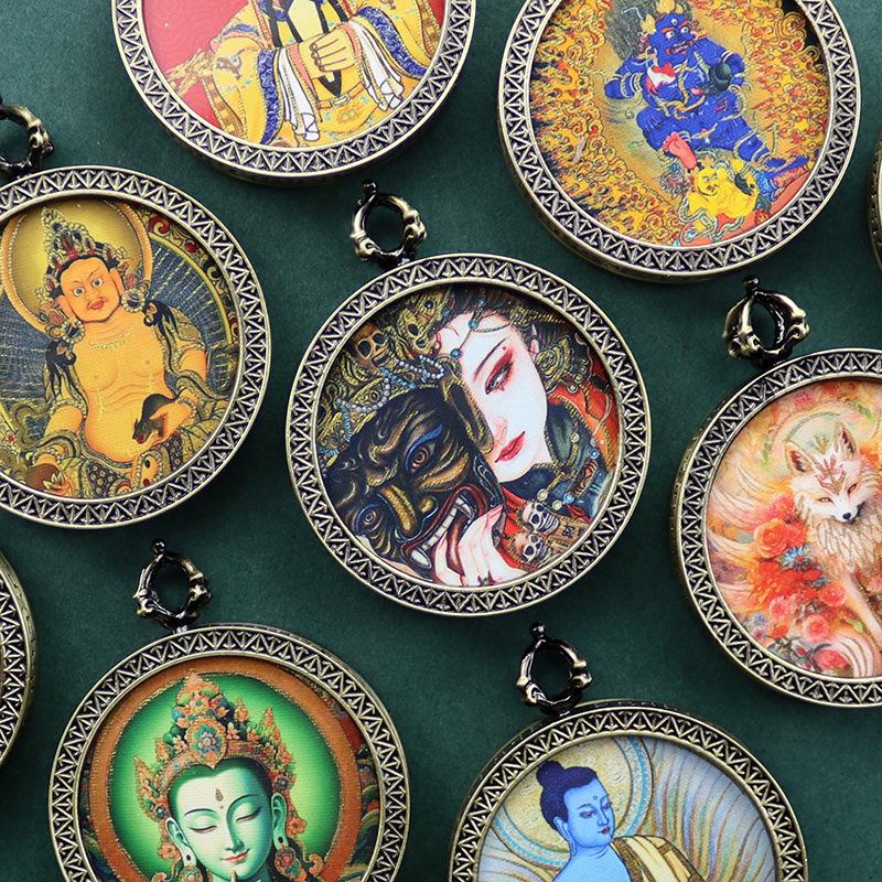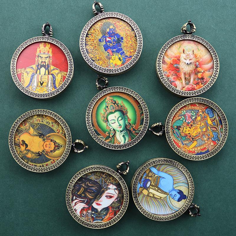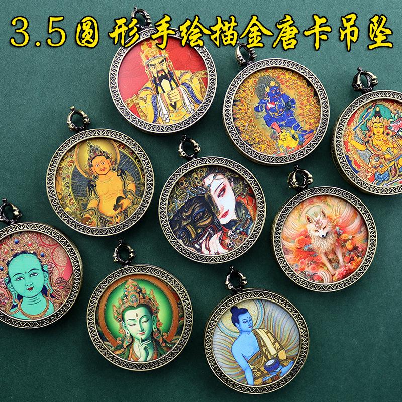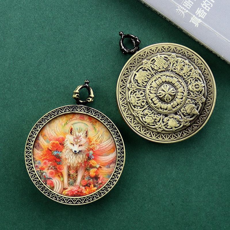Pintado a mano Oro Nuevo Xizang Redondo Wuye Zorro de Nueve Colas Bronce Cachorro Caja Colgante Portátil Pequeño Colgante Thangka