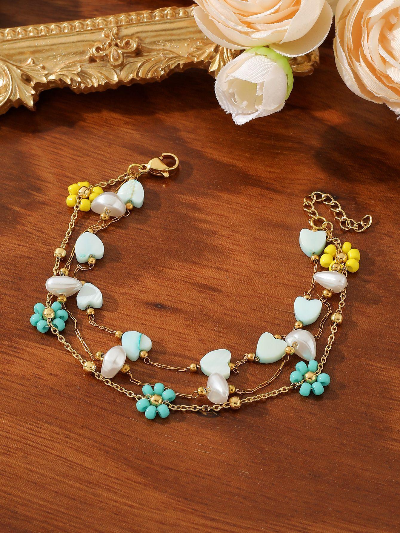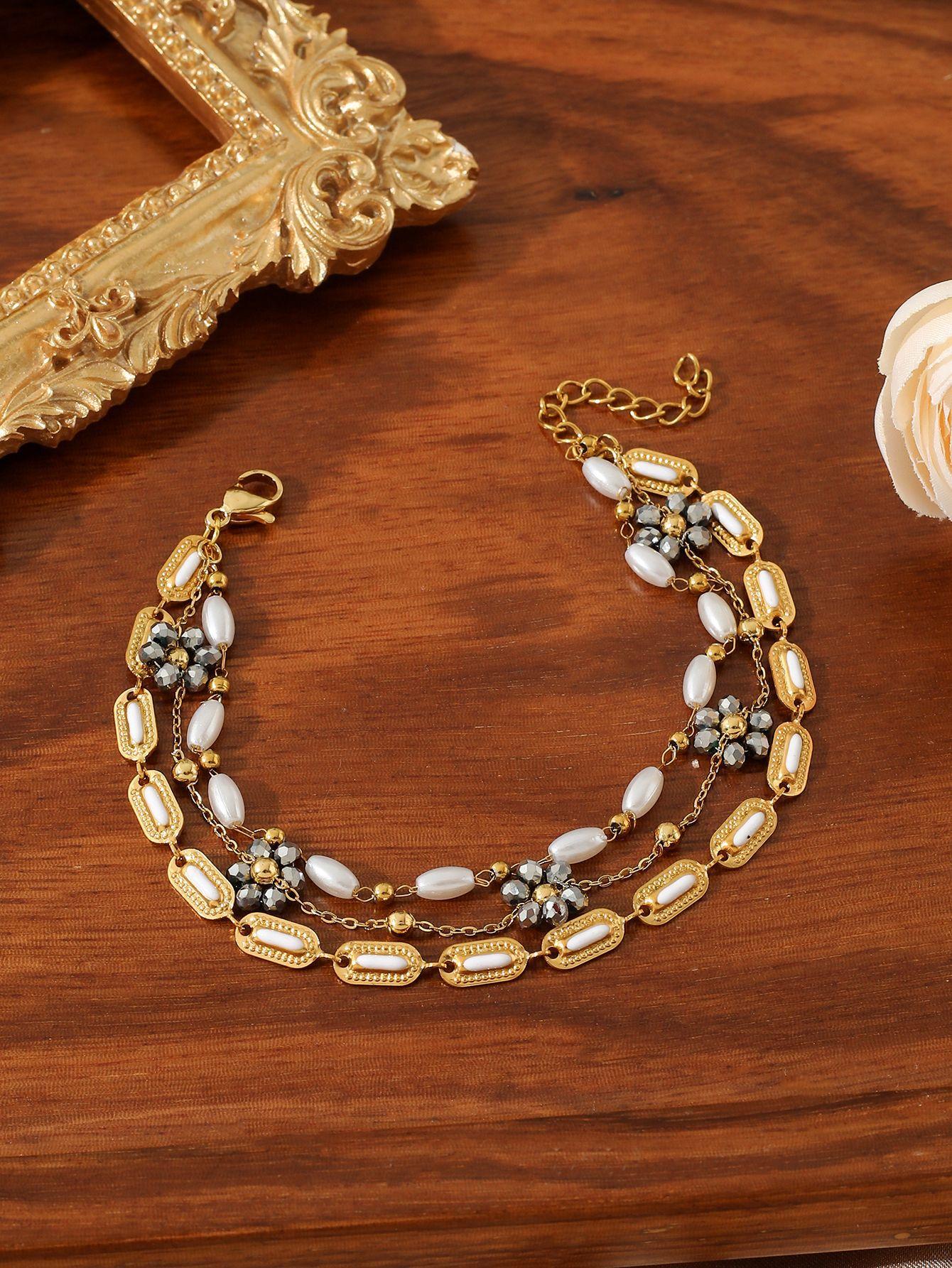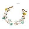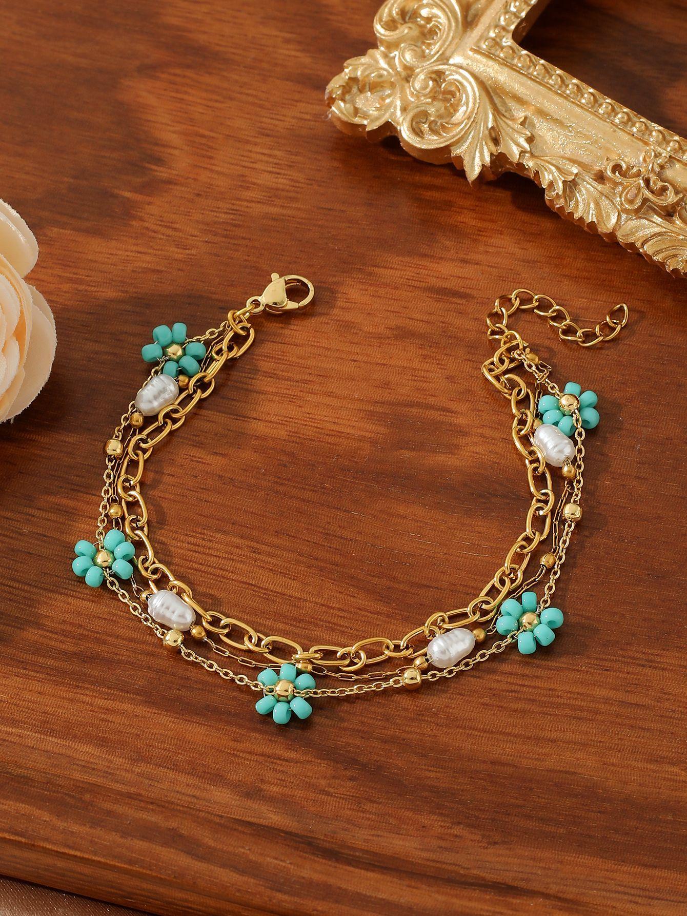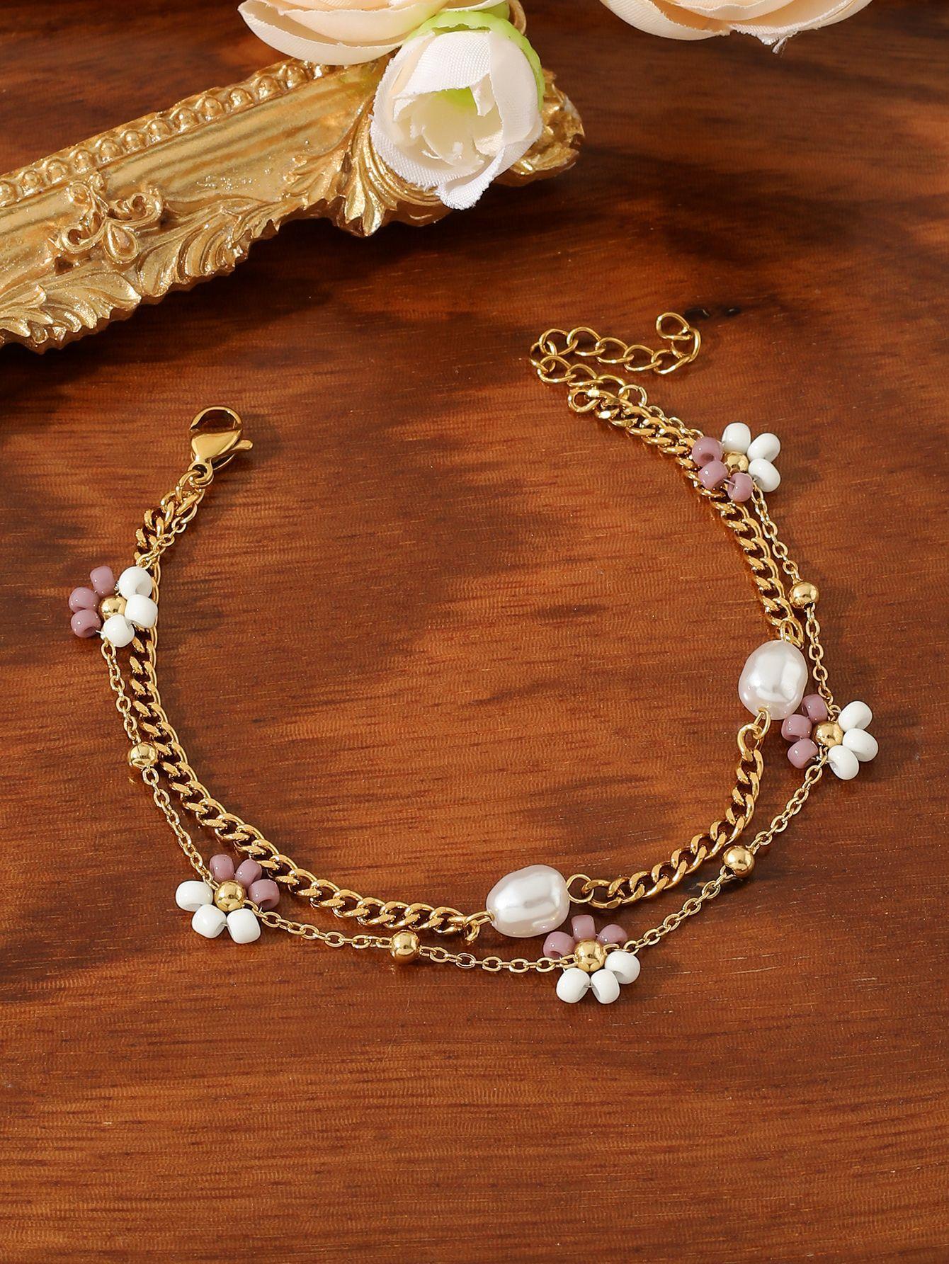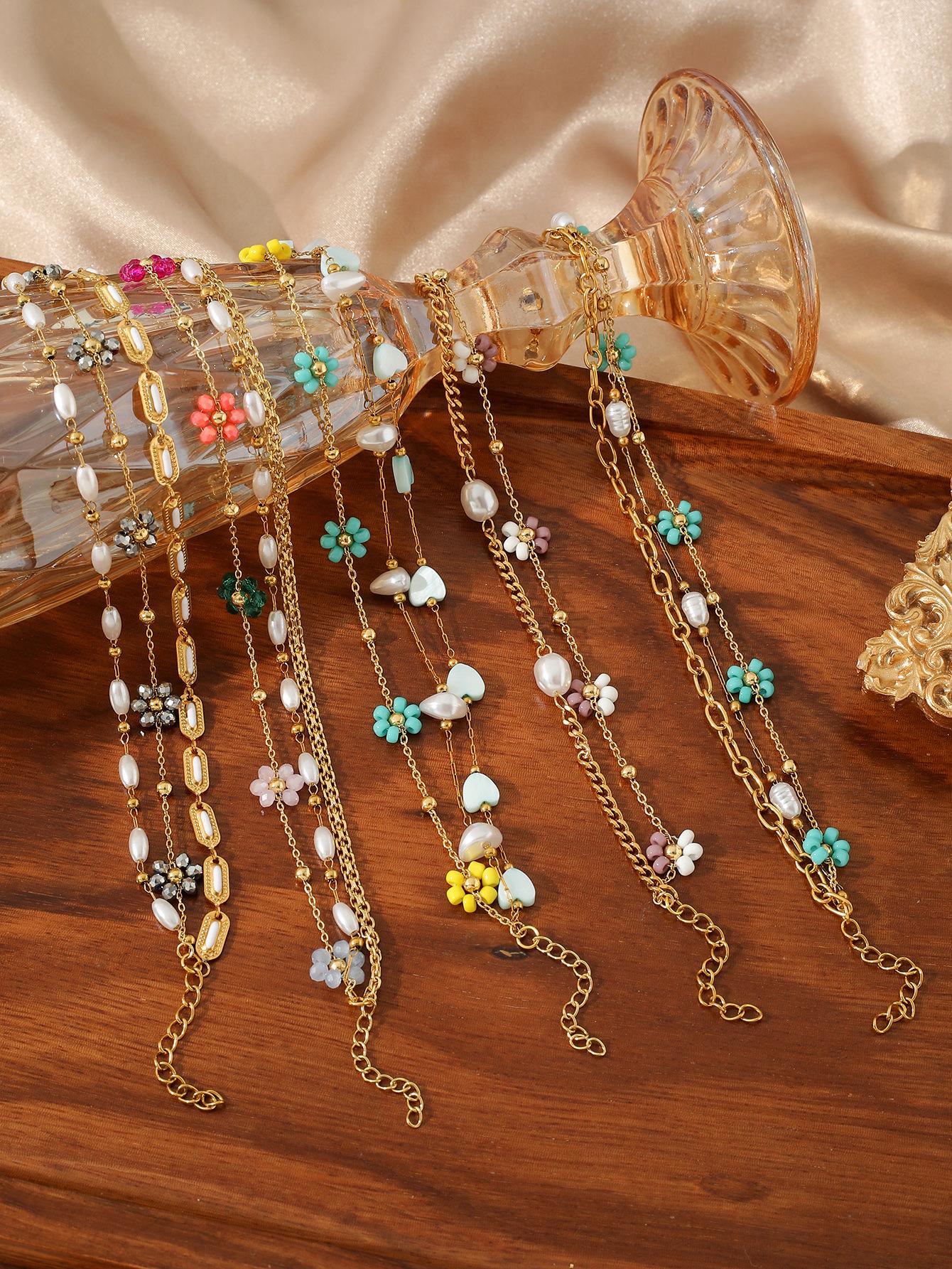 Moda Transfronteriza Versátil Estilo Dulce Collar de Mujer Pétalo de Cristal Acero de Titanio Chapado en Oro de 18K Pulsera con Perlas