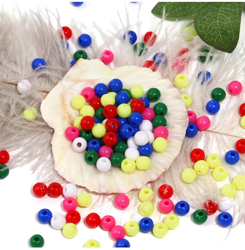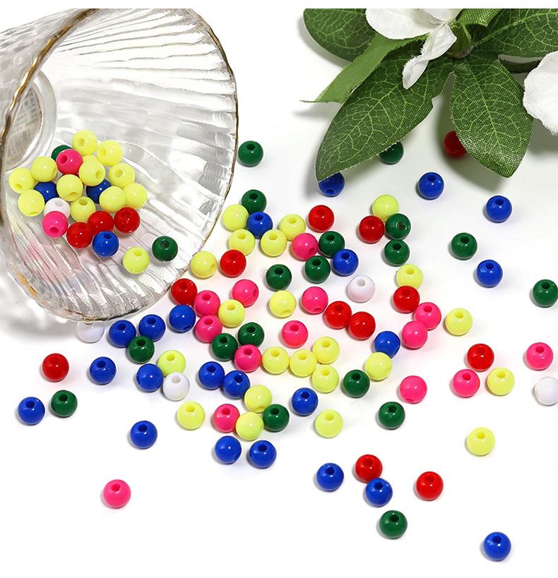Cuentas redondas pequeñas de 6 mm de color sólido, cuentas acrílicas de agujero recto, para pulseras, llaveros, accesorios de joyería, cuentas sueltas.