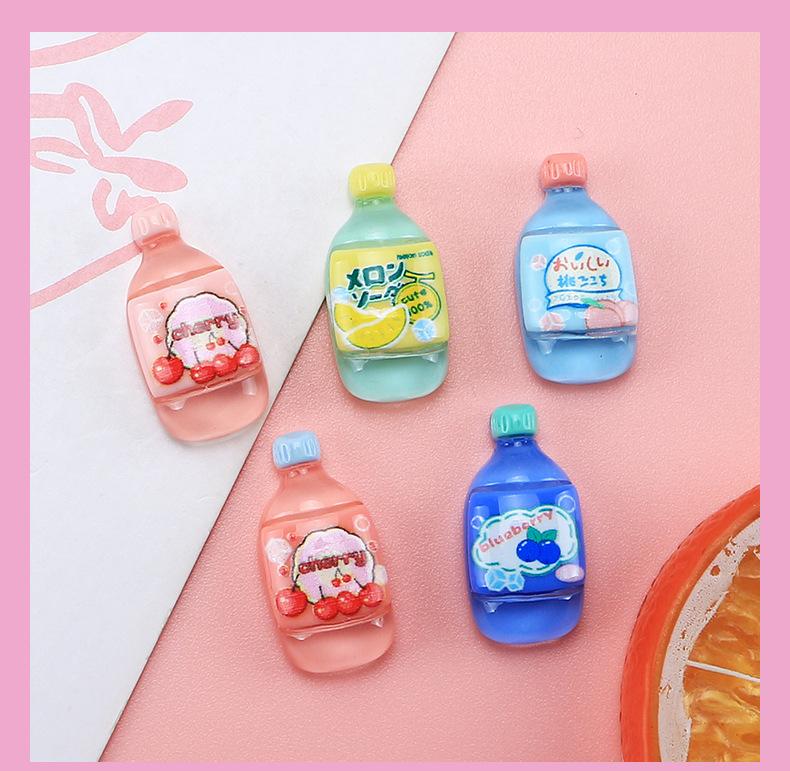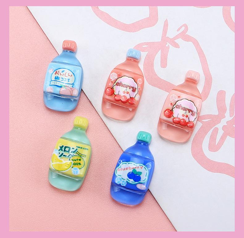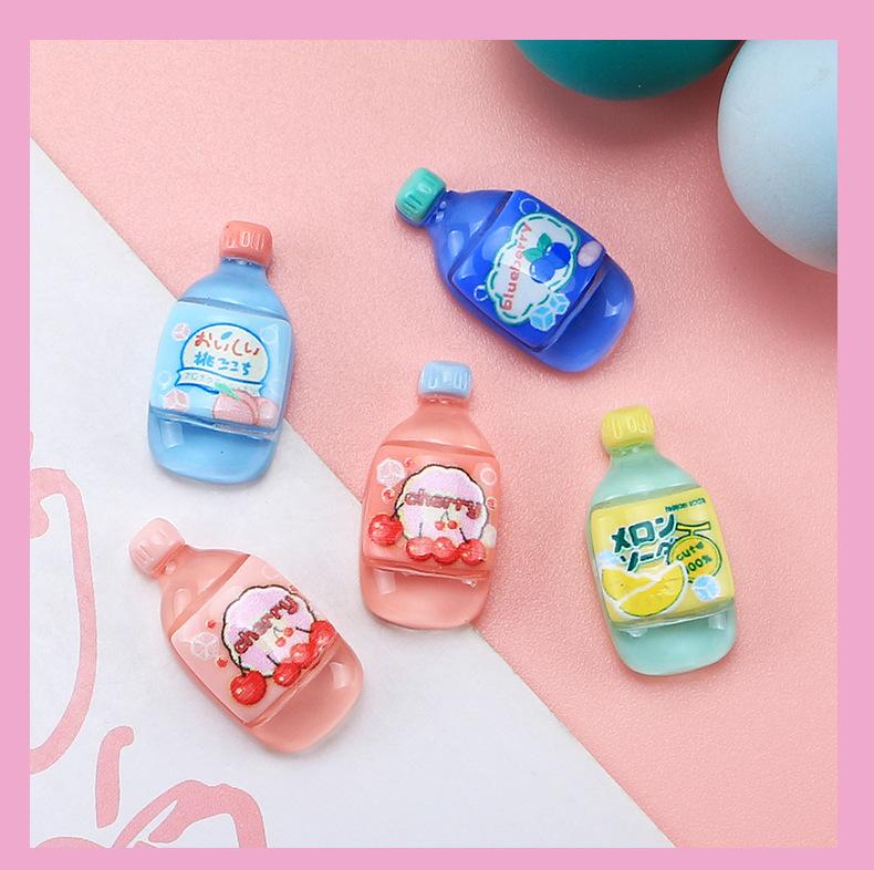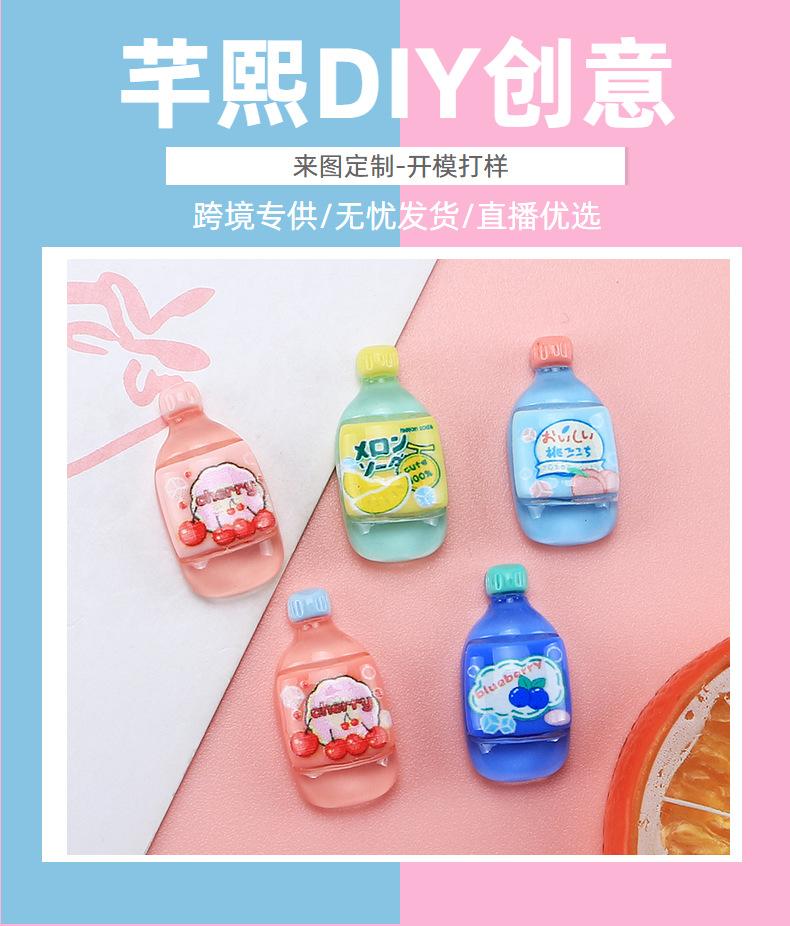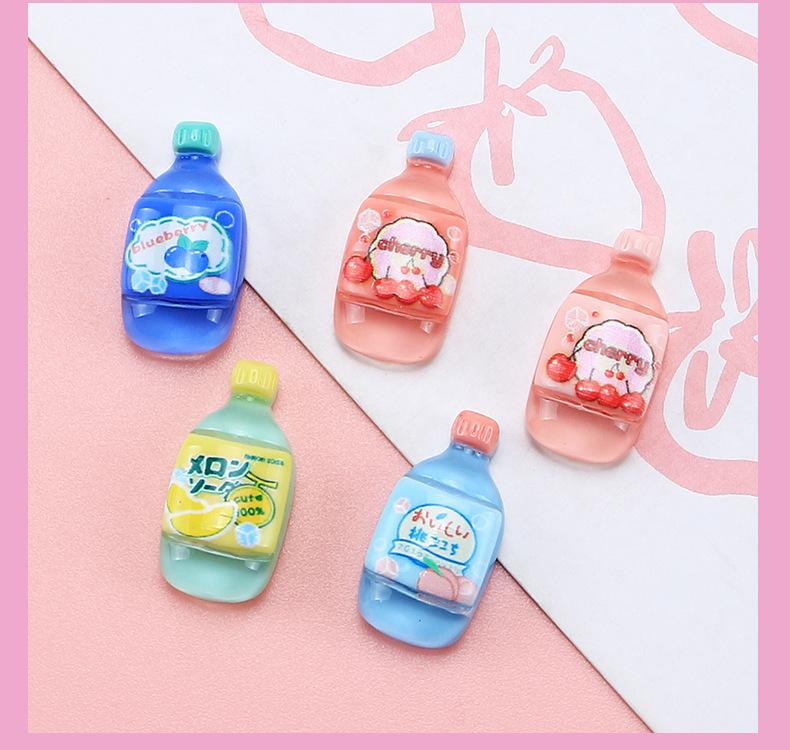 Botella de jugo de color transparente con dibujos animados, crema de pegamento para bricolaje, material de carcasa de teléfono móvil, horquilla para el pelo, joyería, accesorios de resina, material de bolsa