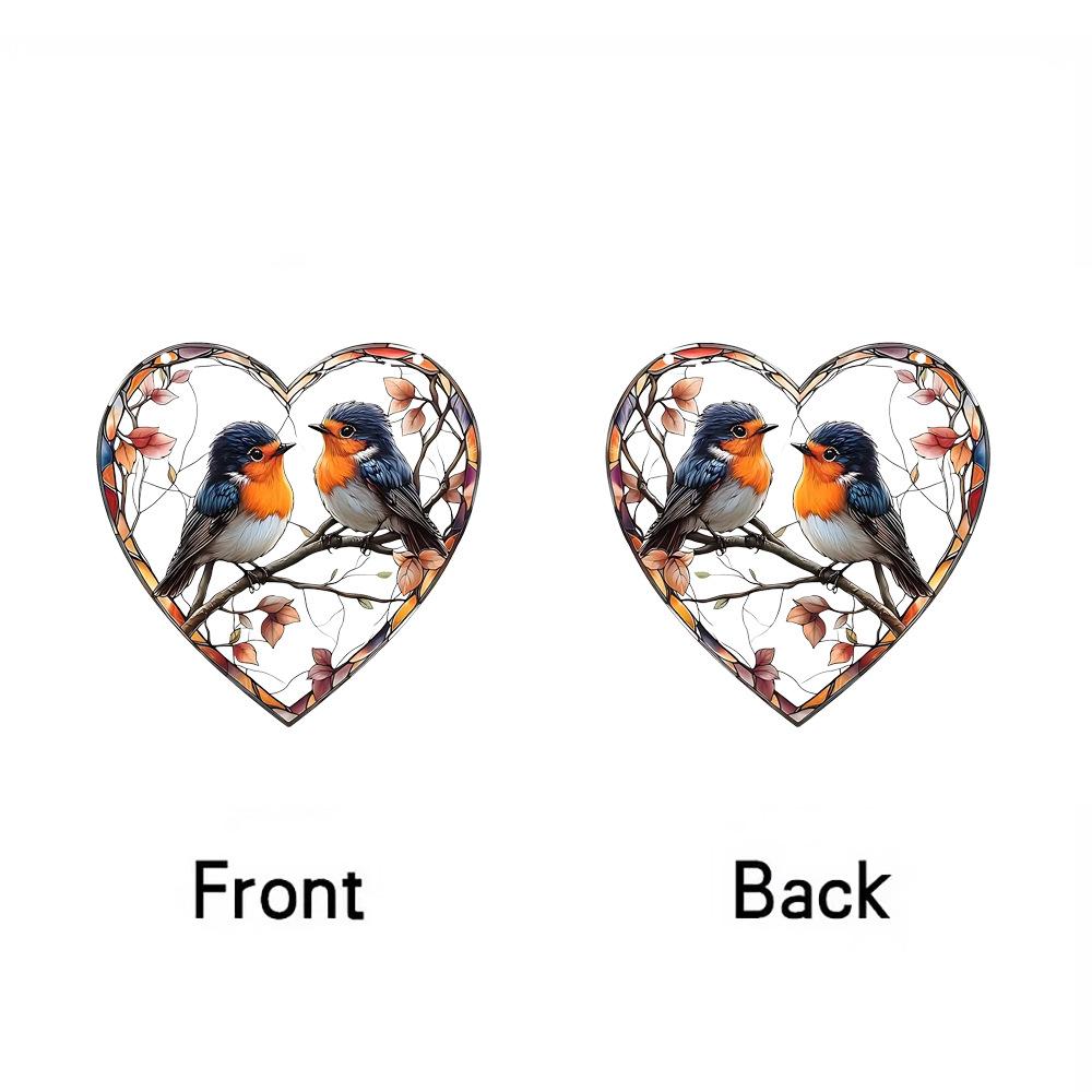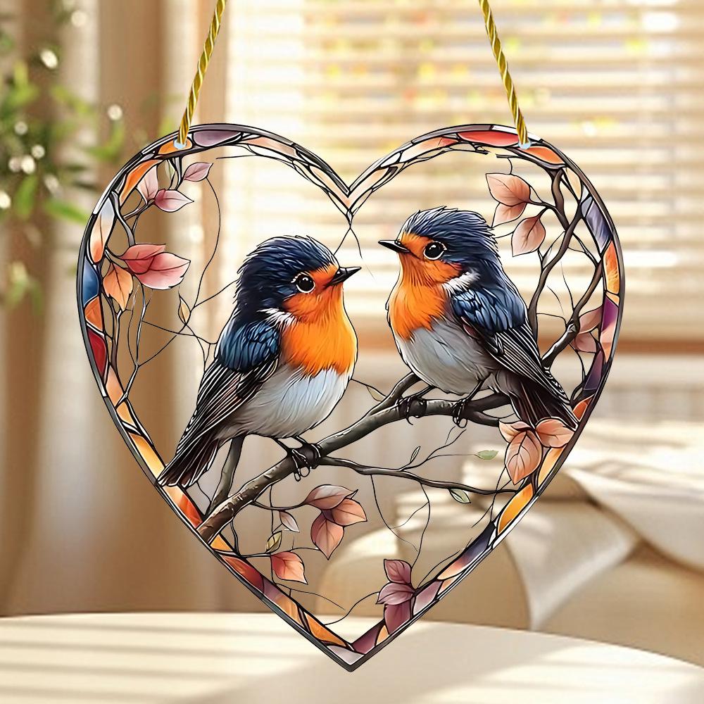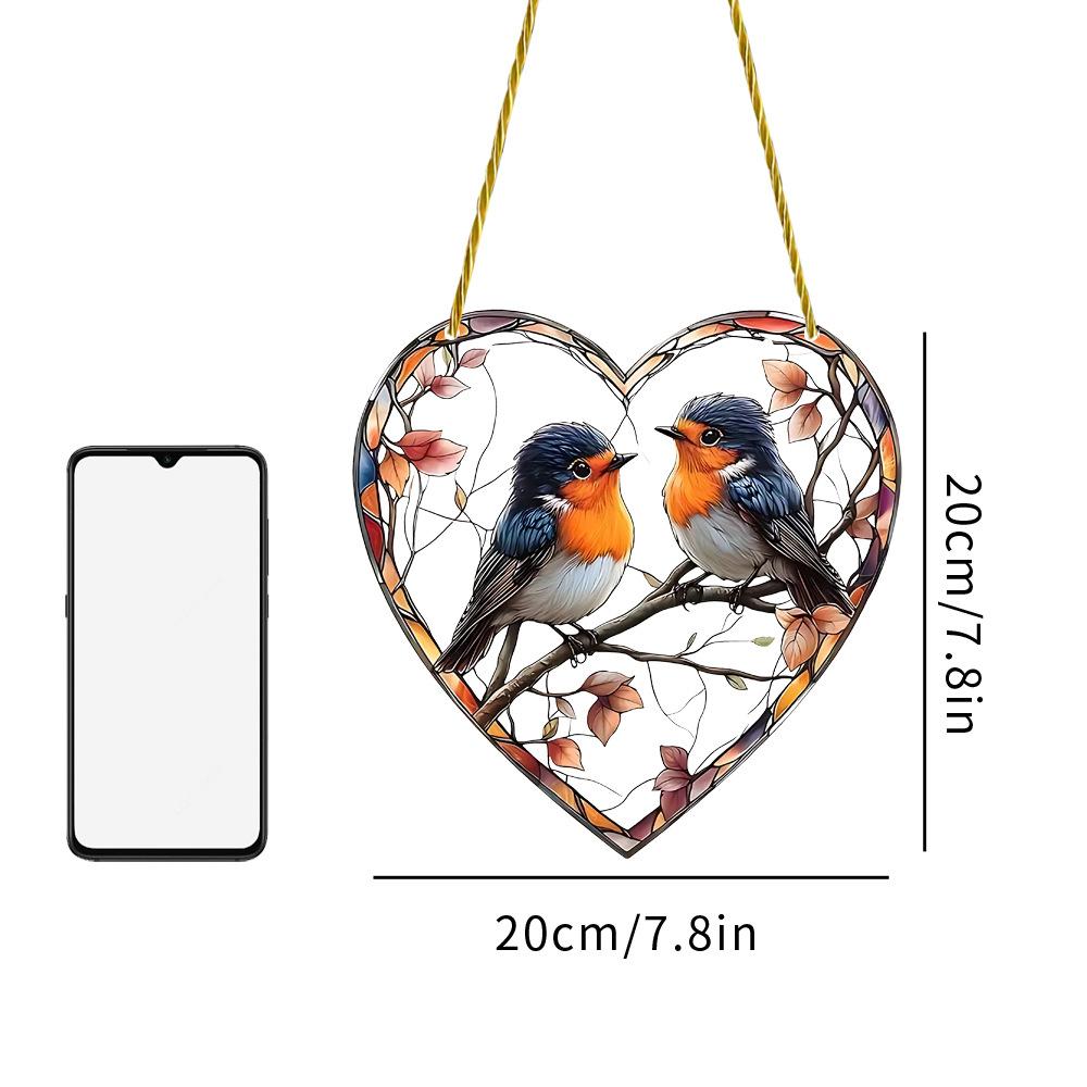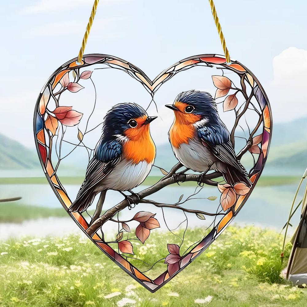 Colgante acrílico plano 2D con dos pájaros y ramas para San Valentín, ideal para decoración de fiestas de jardín y ambientes.