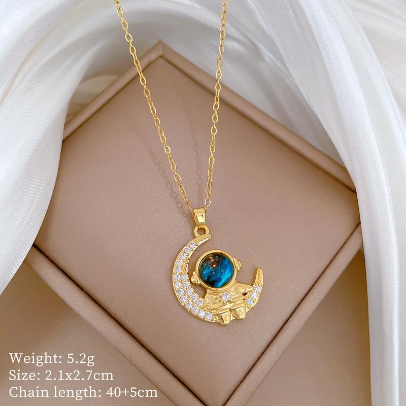 [Acero de titanio] Collar elegante y brillante con microincrustaciones de diamantes y diseño de planetas y cielo estrellado para mujer, colgante sencillo con diseño de celebridades de Internet.