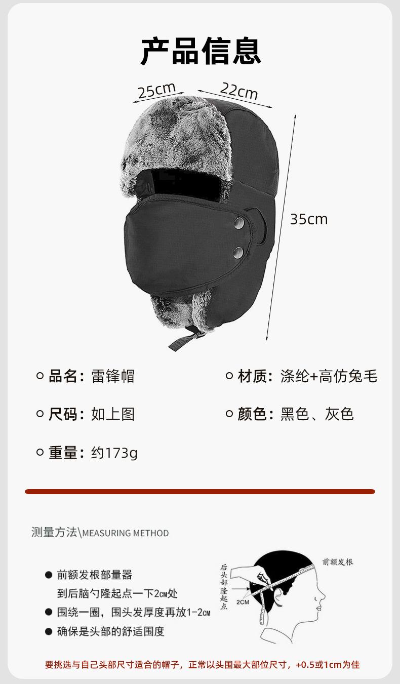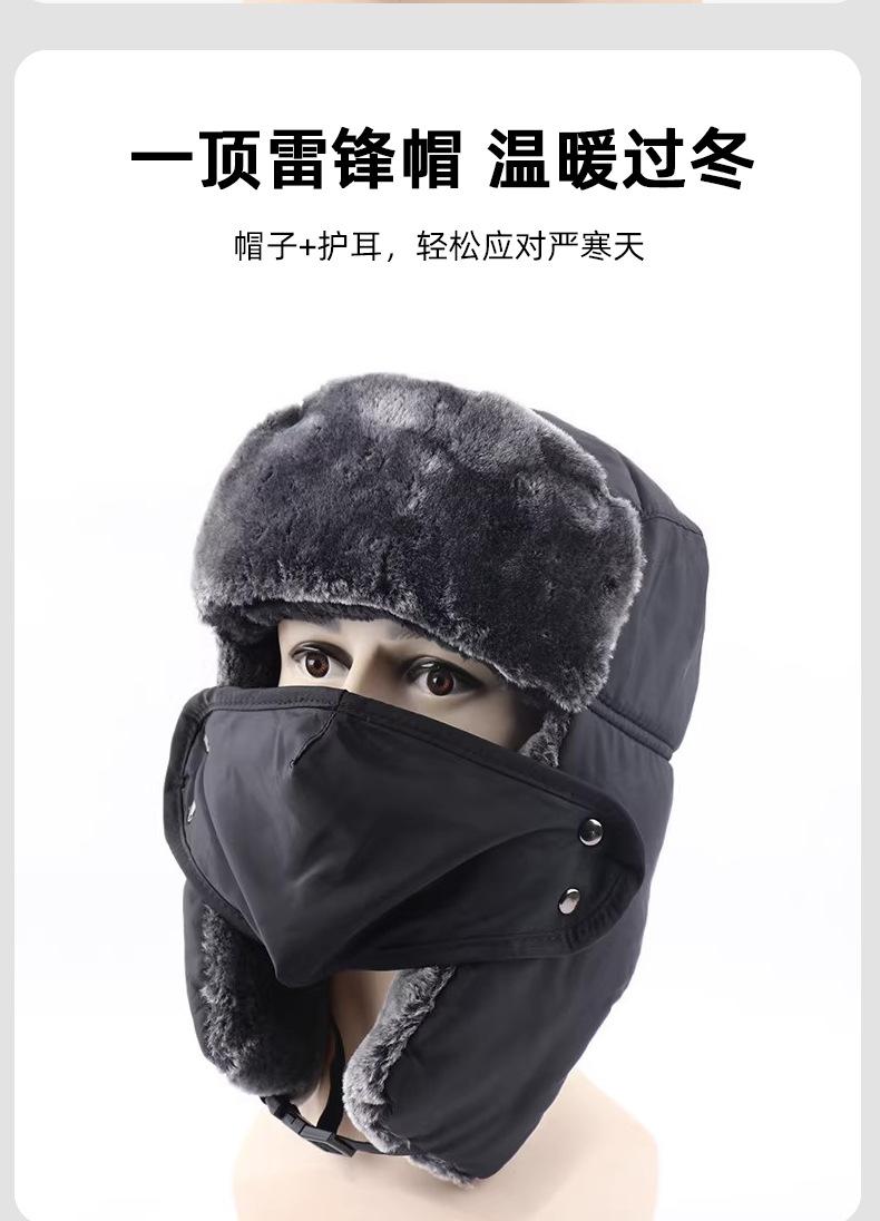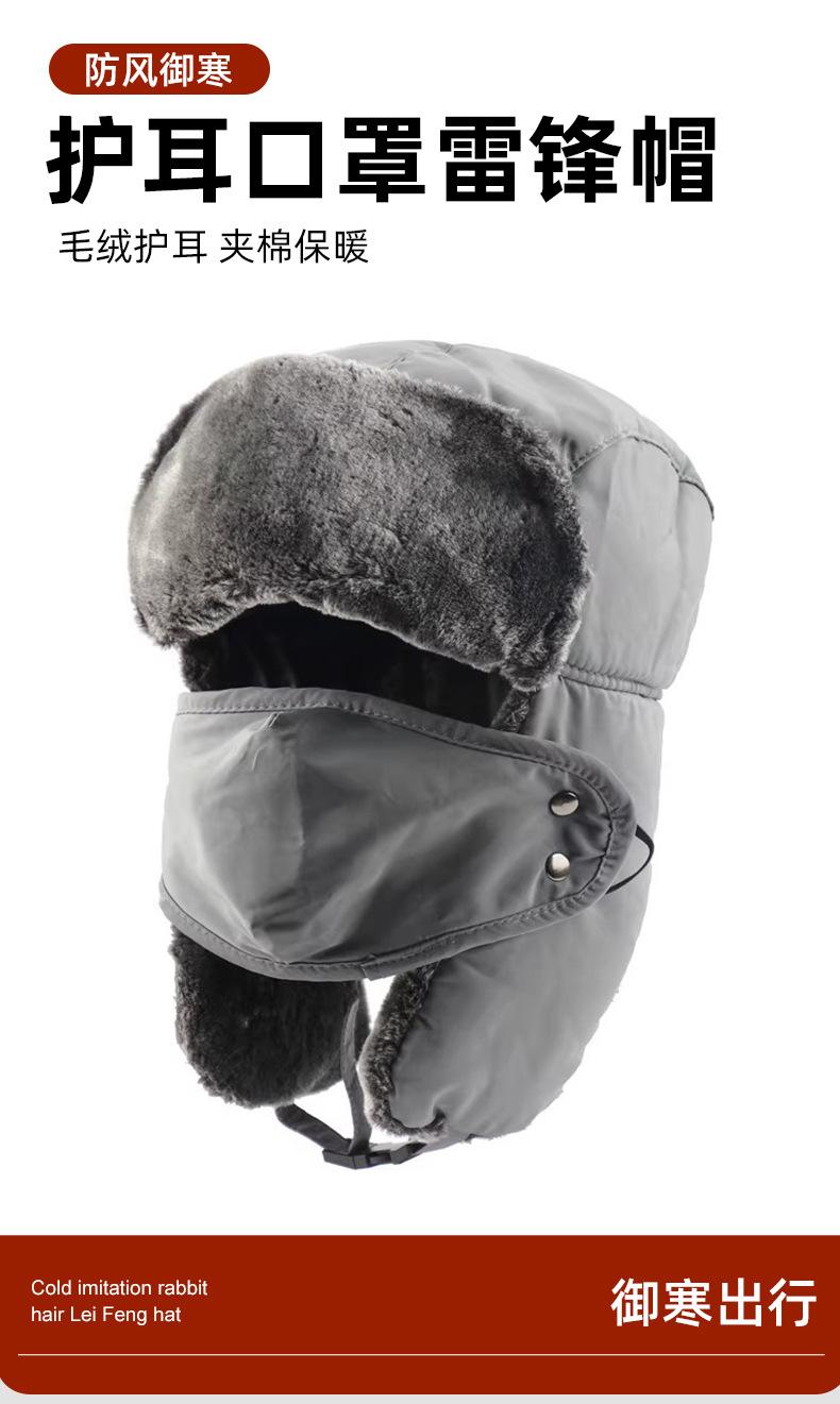 Gorro de invierno Lei Feng grueso con forro polar para montar al aire libre, resistente al frío y al viento, con máscara para el cuello, gorro de esquí al por mayor