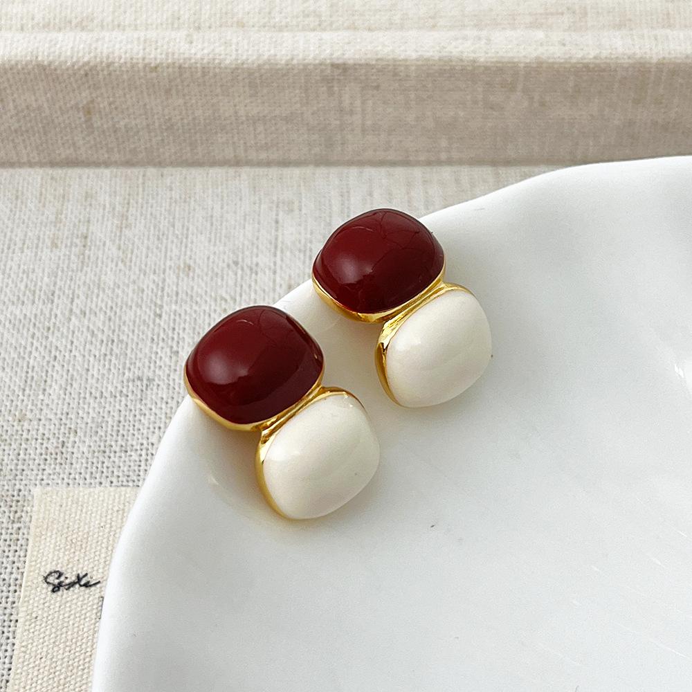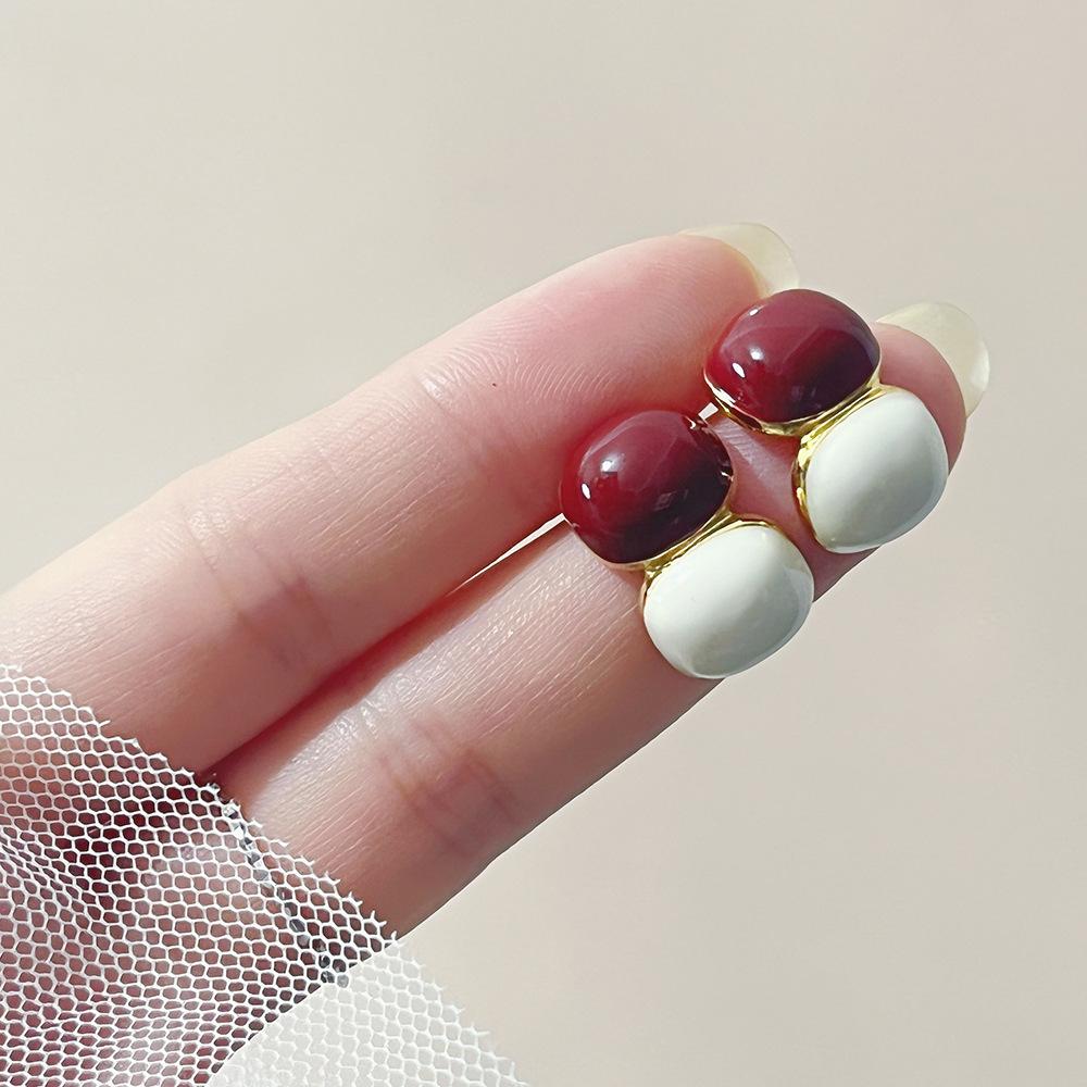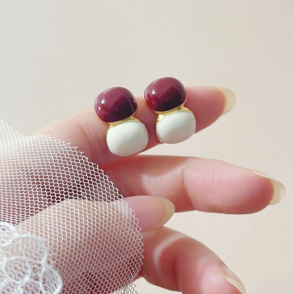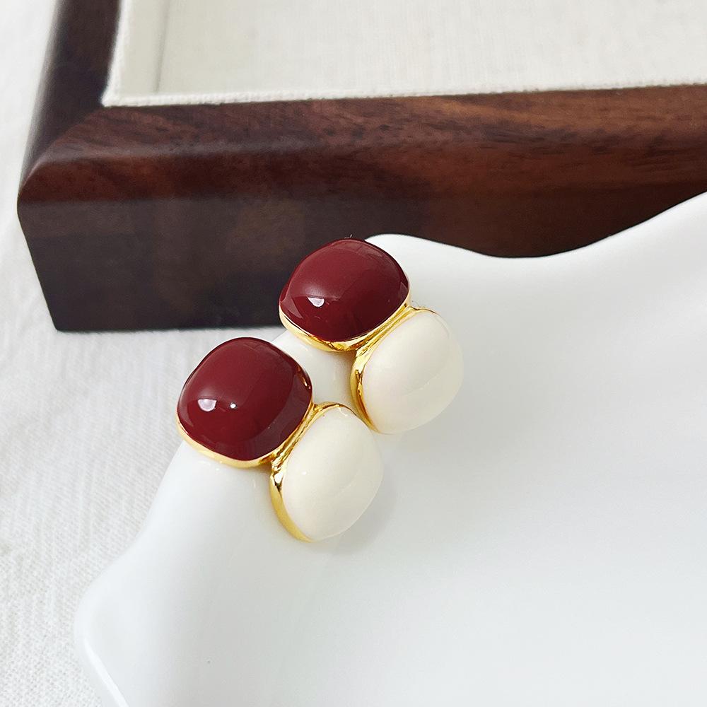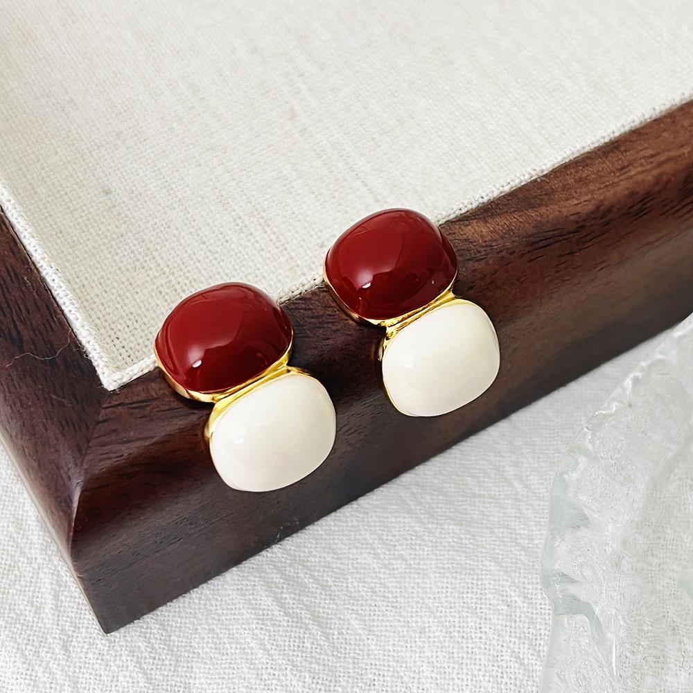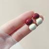 [Chapado en Oro Real] Aretes Retro de Bola con Costuras Rojas Ankora, Temperamento Simple, Aretes de Tuerca de Alta Gama