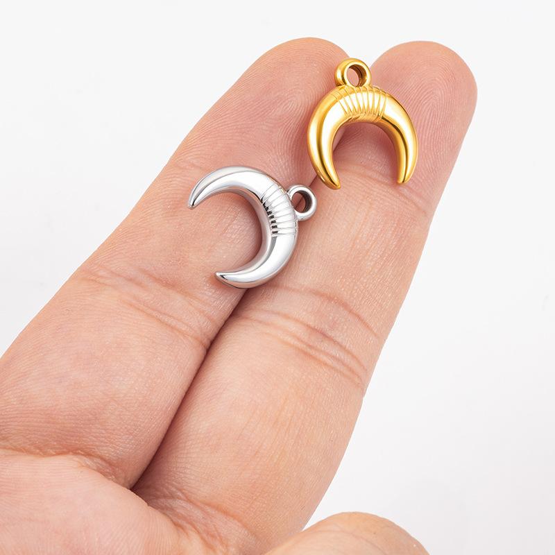 Colgante de cuerno de luna de acero inoxidable, accesorio para collar y pulsera, colgante vintage, cadena de clavícula.