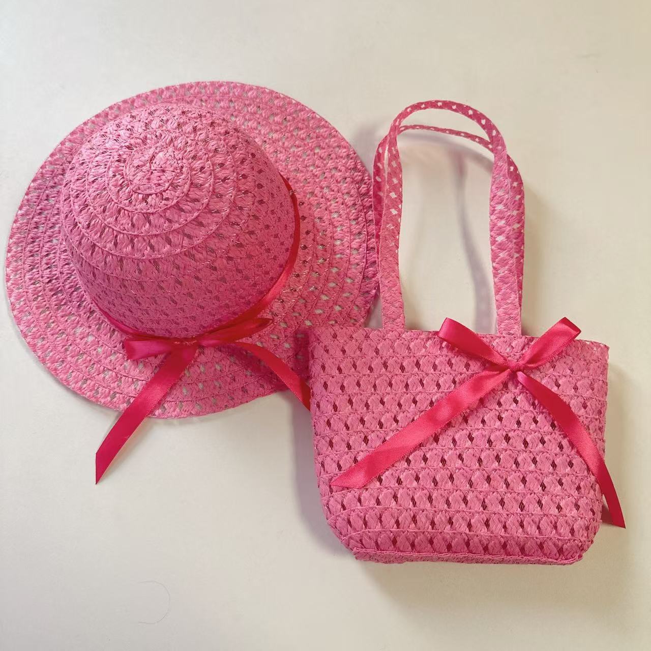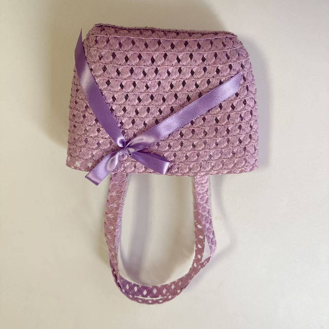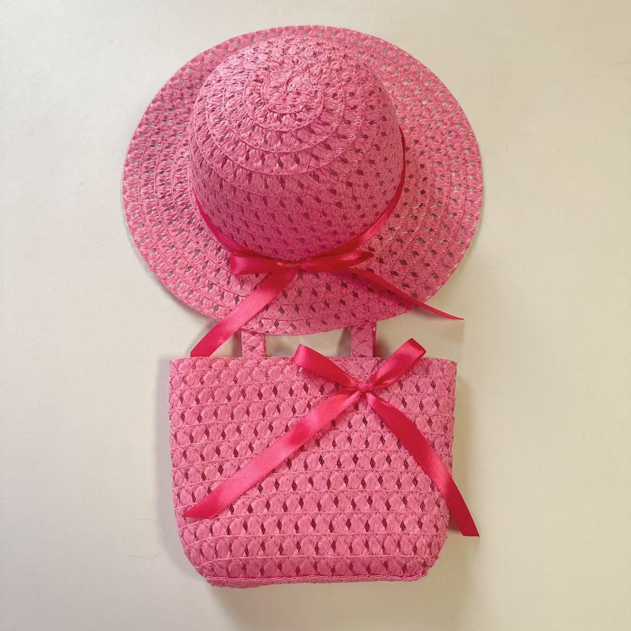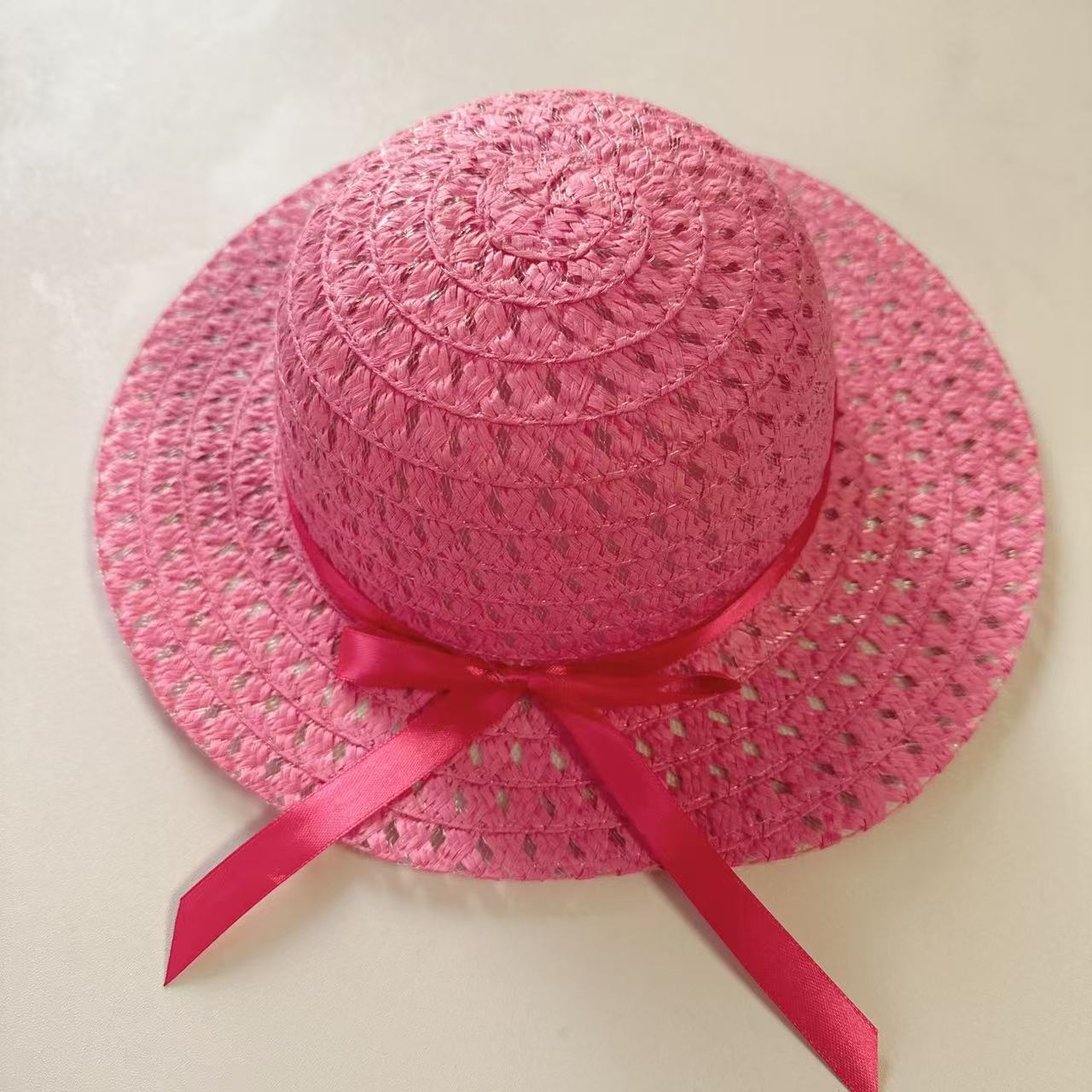Sombrero de paja para niños con lazo nuevo, traje de bolso, sombrero de sol de paja para niñas, sombrero de playa al por mayor