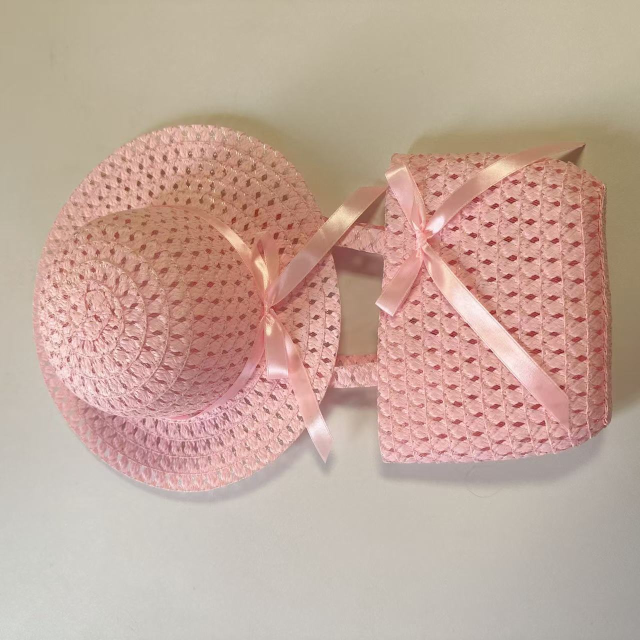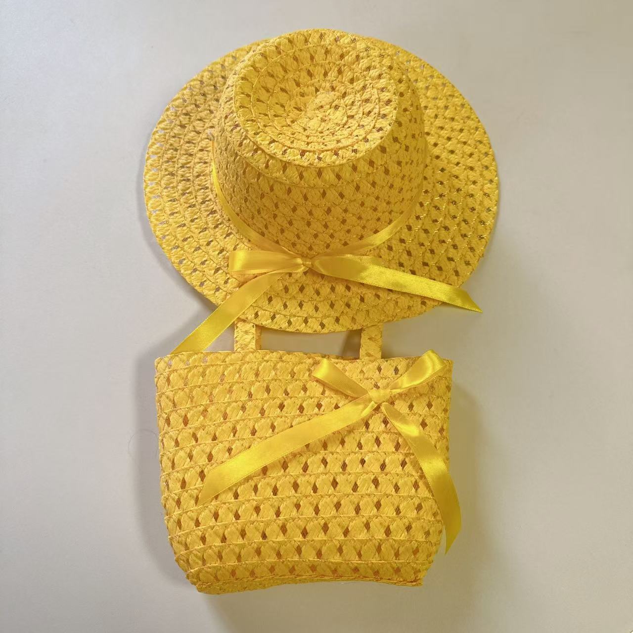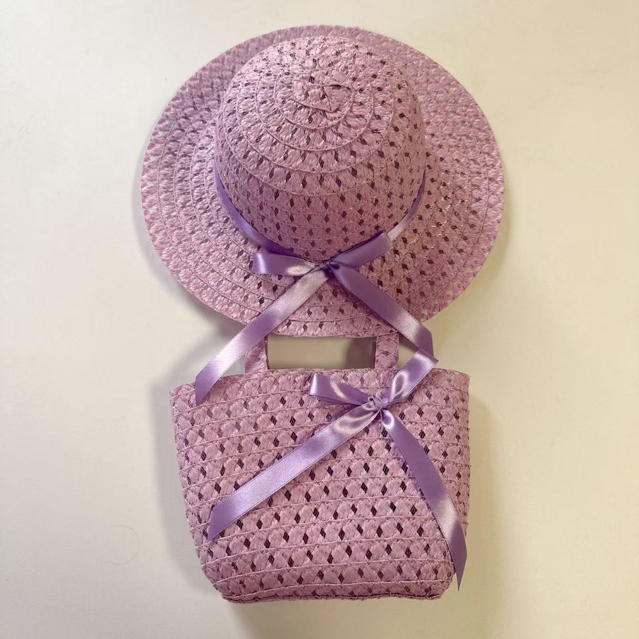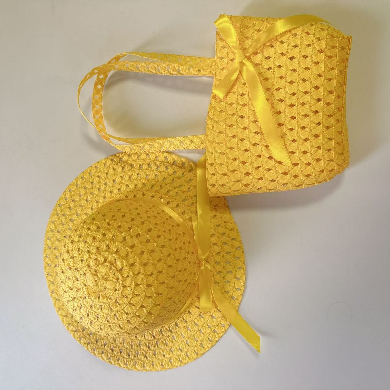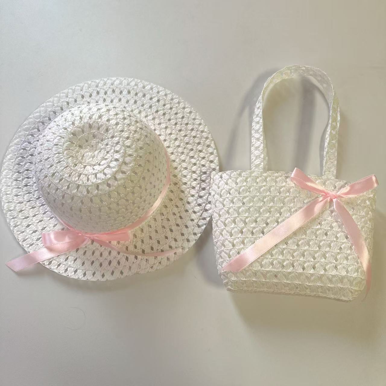 Sombrero de paja para niños con lazo nuevo, traje de bolso, sombrero de sol de paja para niñas, sombrero de playa al por mayor