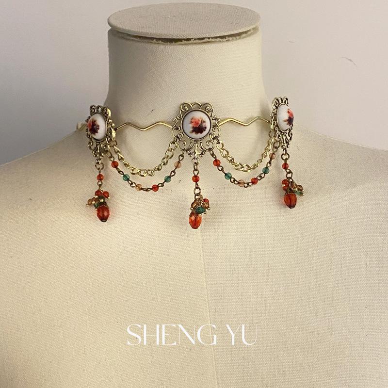 "Rosa Roja Misteriosa" collar retro rojo con borla de gota de agua, nicho de personalidad, exagerado, moda, metal, cadena para clavícula, femenino