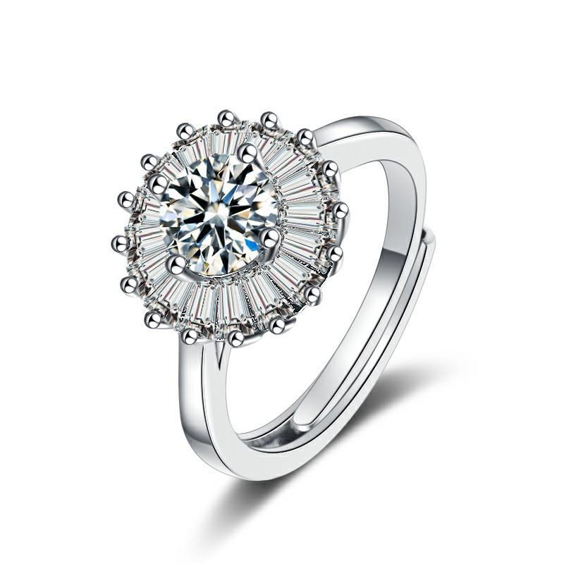 Anillo rojo vivo en línea, superventas, anillo de diamantes de cuatro garras, simulación de diamante de alto carbono, anillo de boda personalizado de diamante de 1 quilate, anillo de propuesta individual.