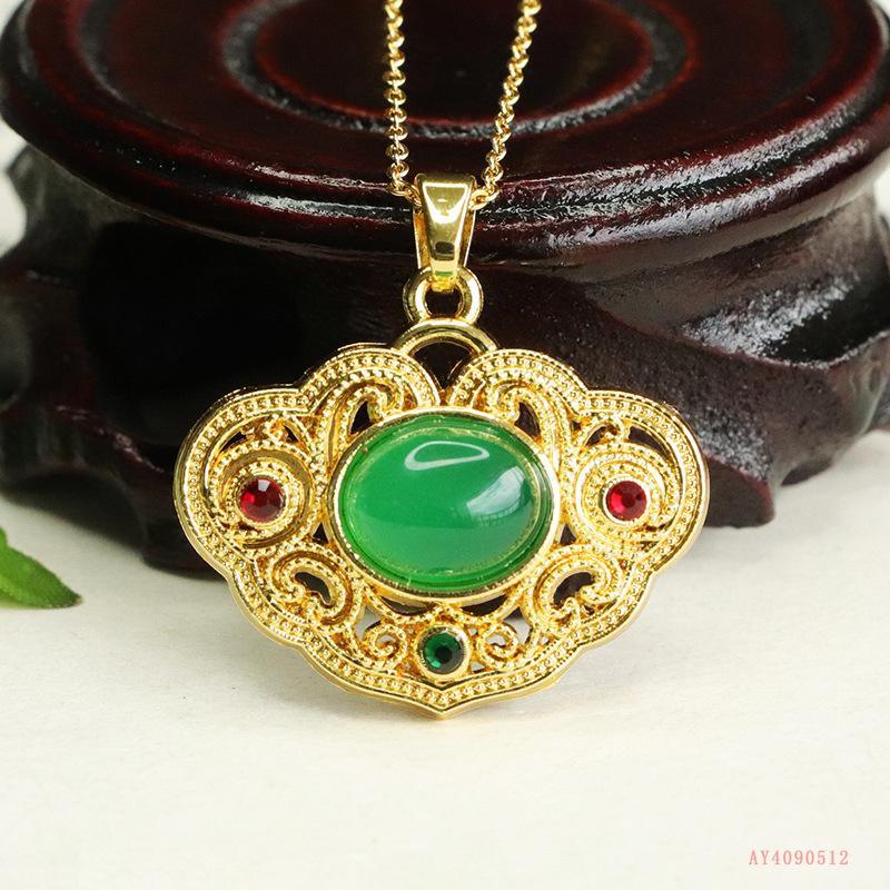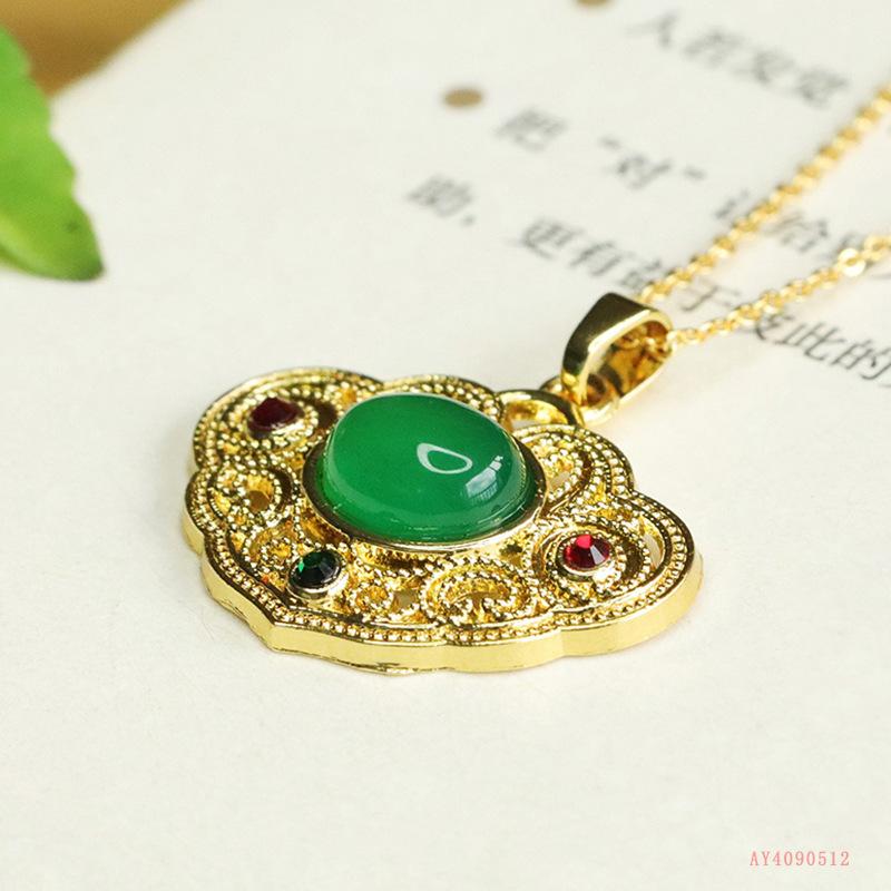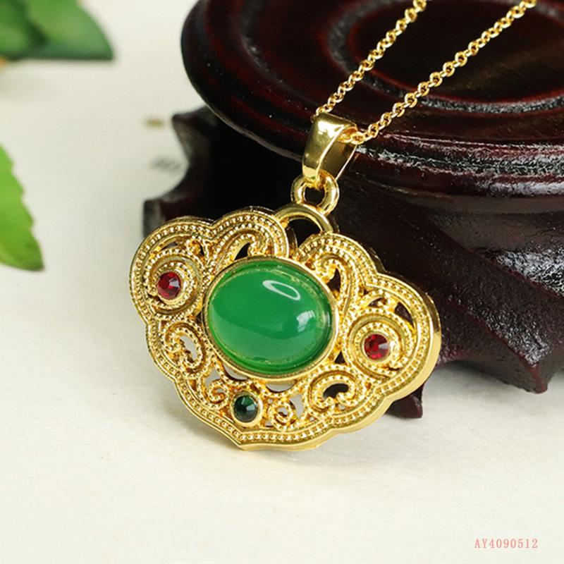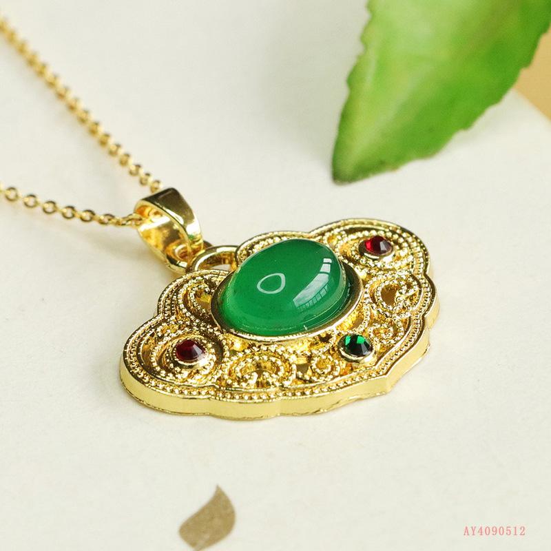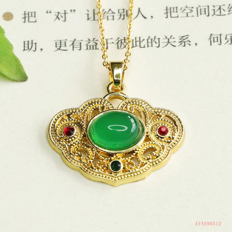 Colgante de calcedonia verde natural Aiyu, collar de ágata ruyi, joyería retro, venta al por mayor, generación AY4090512