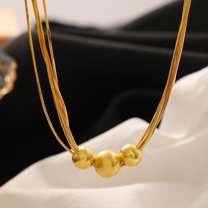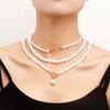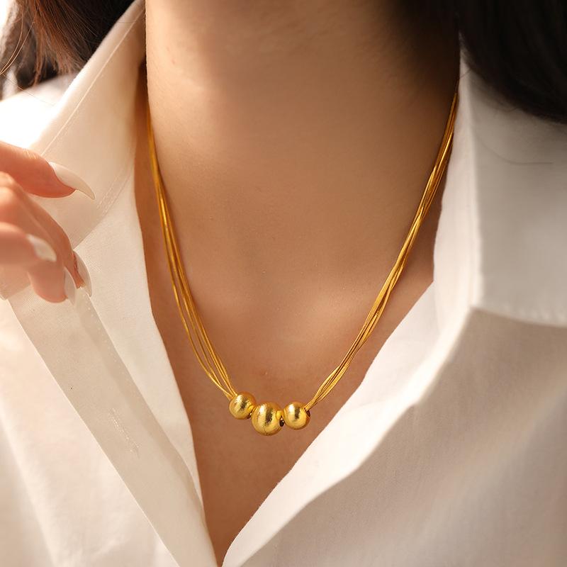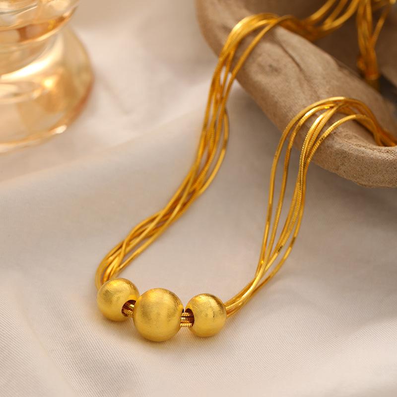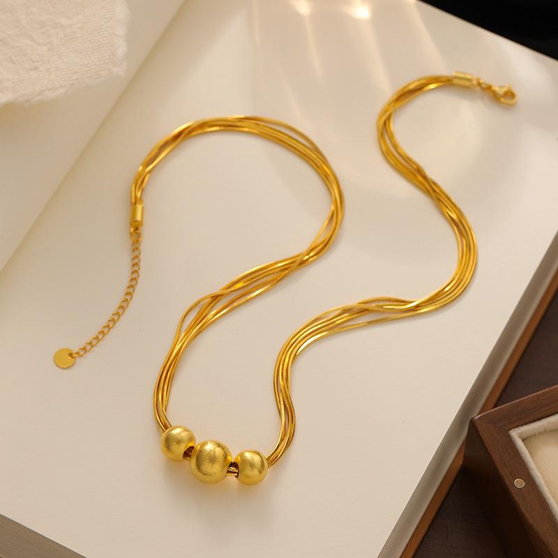 Collar Europeo y Americano de Moda Nueva Retro Multicapa con Cuentas Redondas Cepilladas Lujo Ligero Combinable Nicho Elegante Cadena Clavicular de Alta Gama