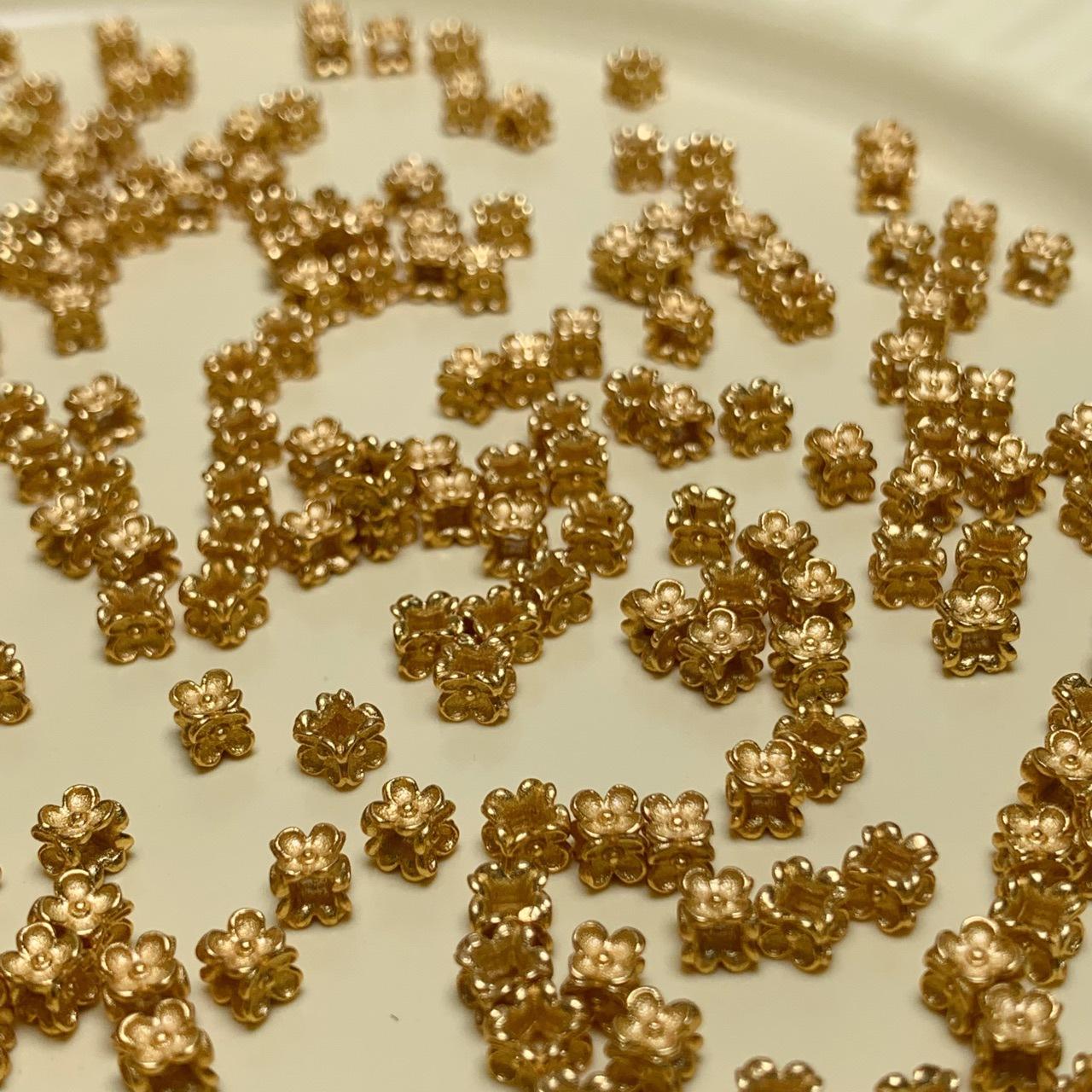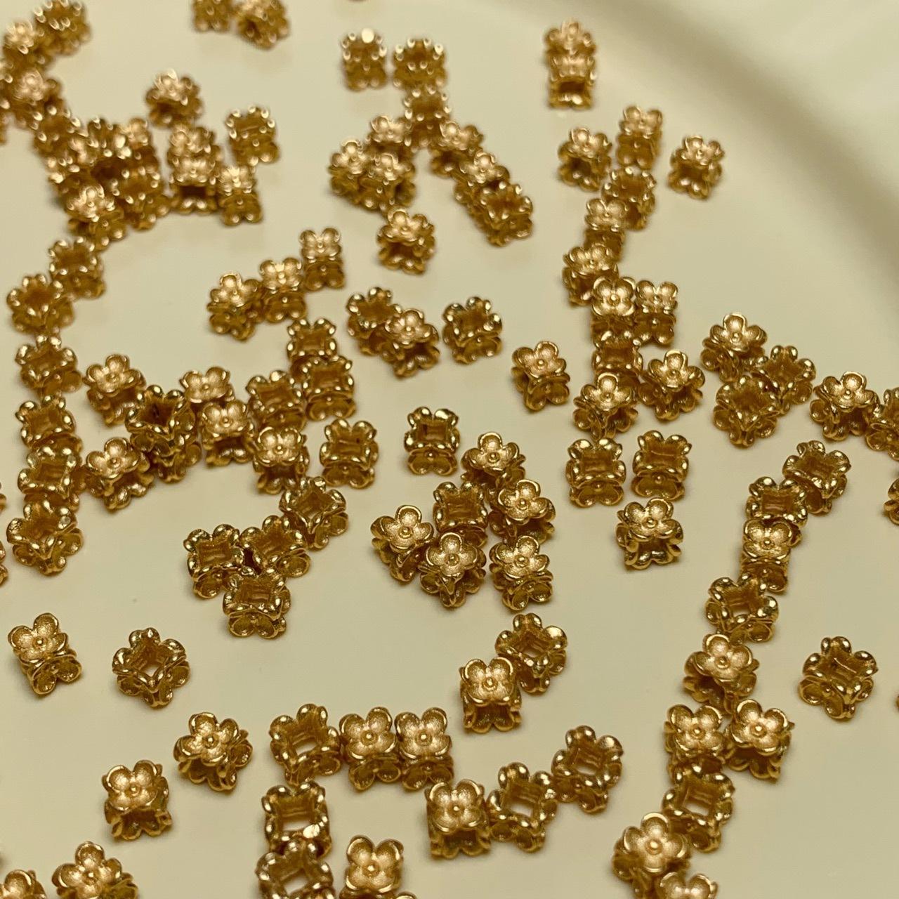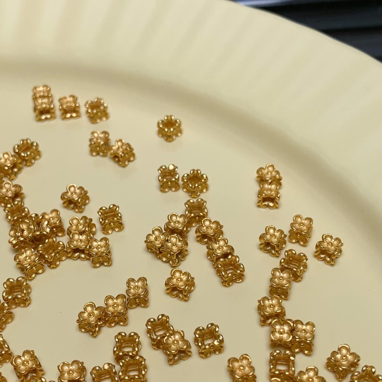 Nuevos accesorios de cuentas pequeñas de flores de plata S925, joyería artesanal, pulsera, collar, accesorios de oro antiguo