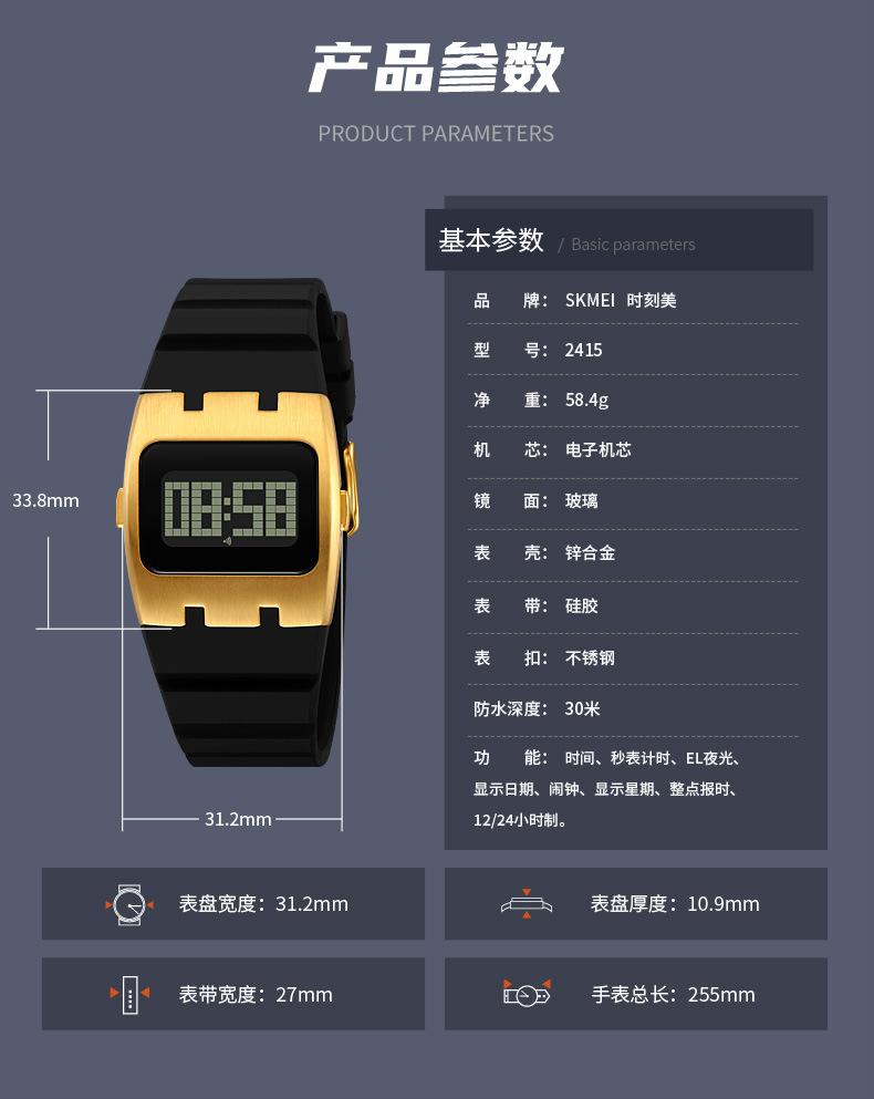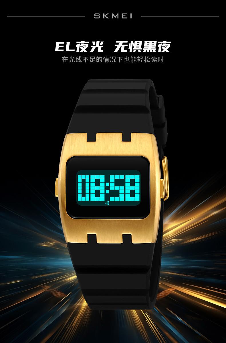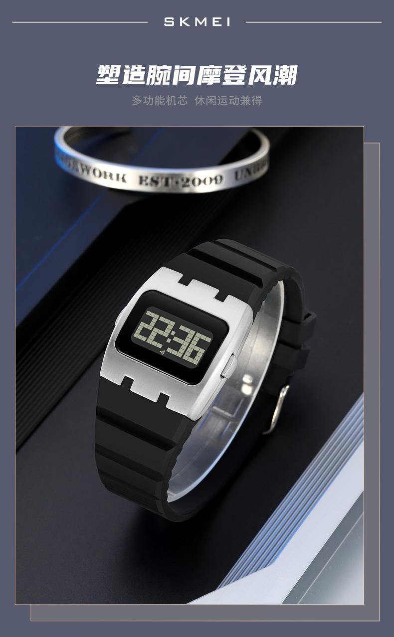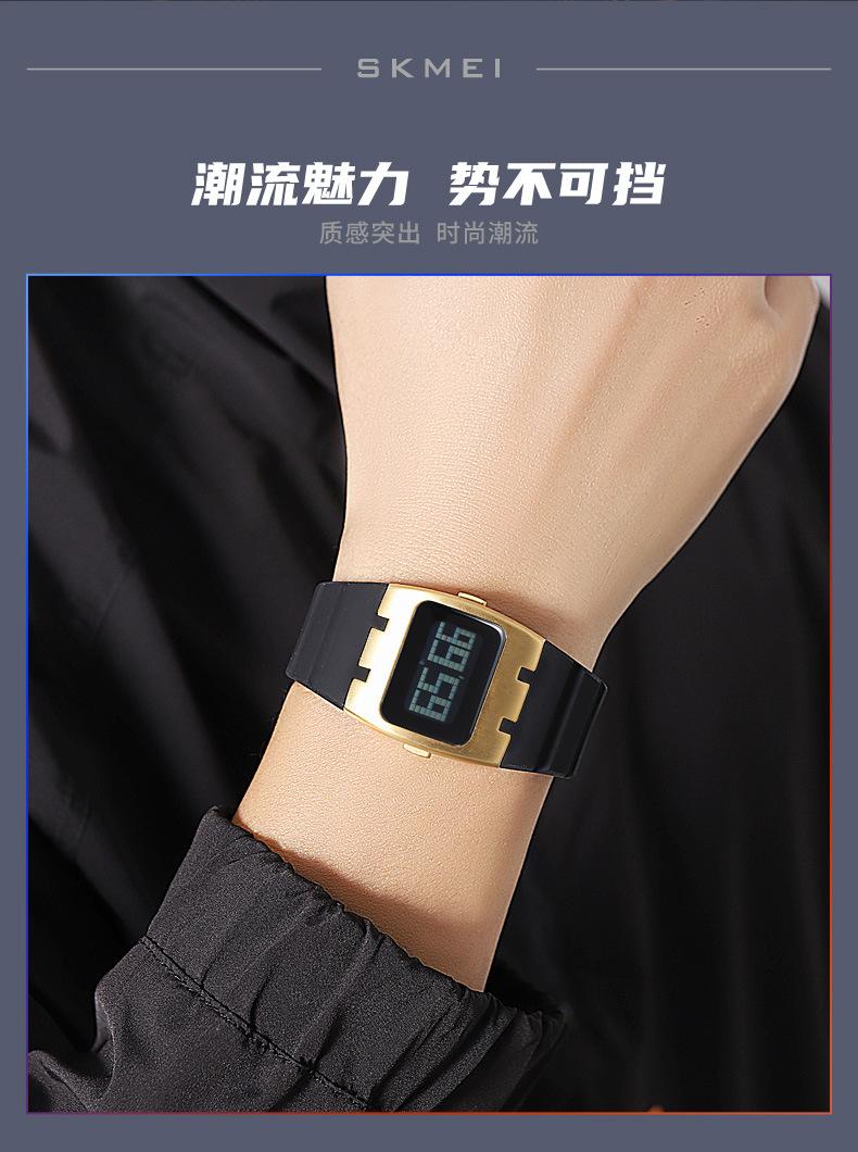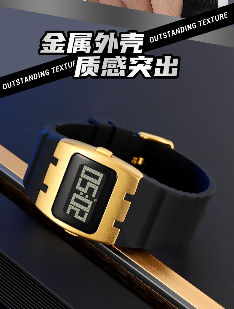 Hermoso reloj de pulsera de silicona cuadrada para estudiantes, de moda, informal, sencillo, resistente al agua, electrónico, multifuncional.